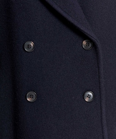 ダブルボタンのクラシカルなディテールに、肩を覆う広がりが旬の抜け感を演出。