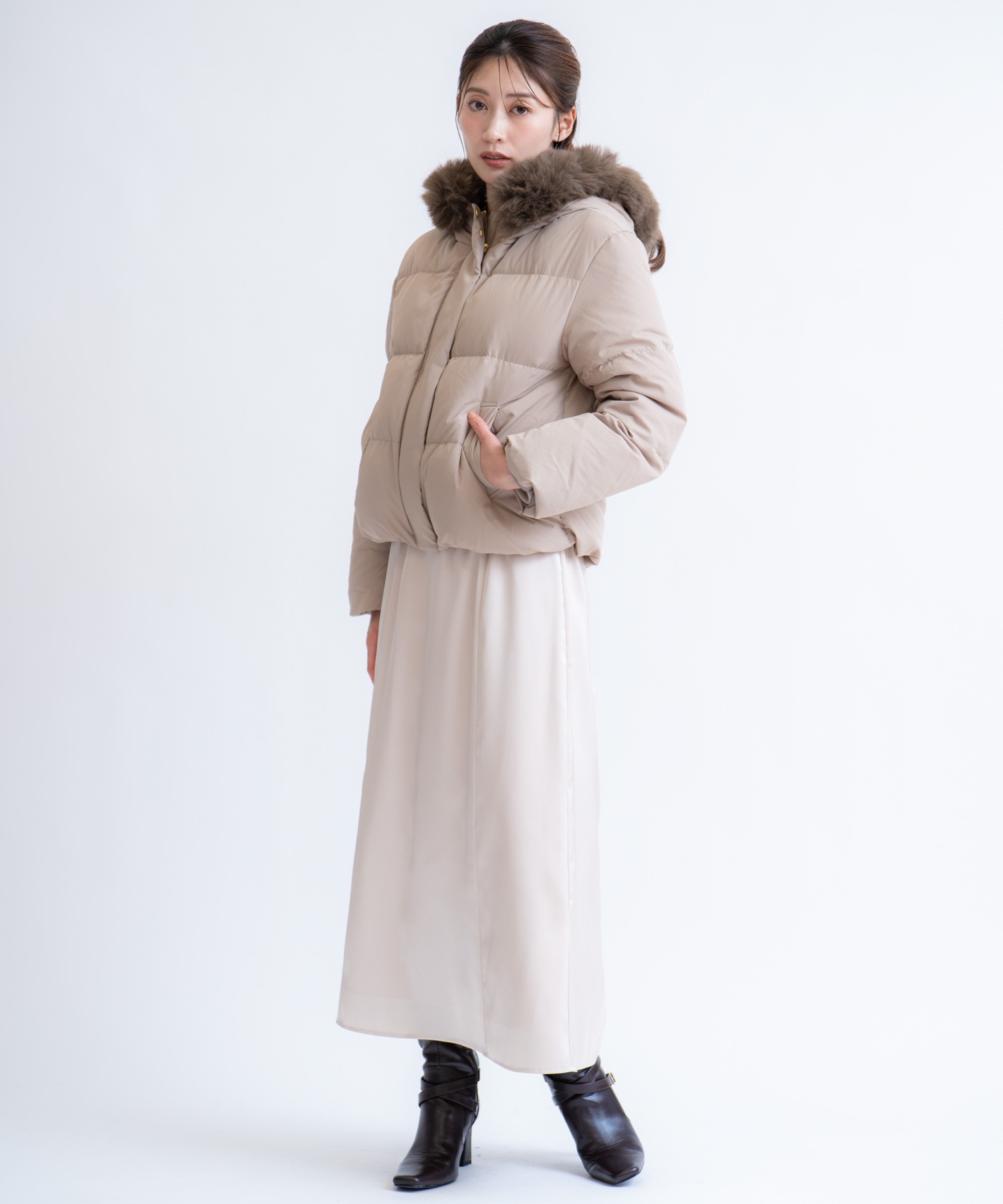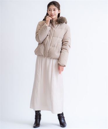 • ファー付きショートダウンコート(82ベージュ-S)