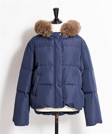 • ファー付きショートダウンコート(70ネイビー-S)