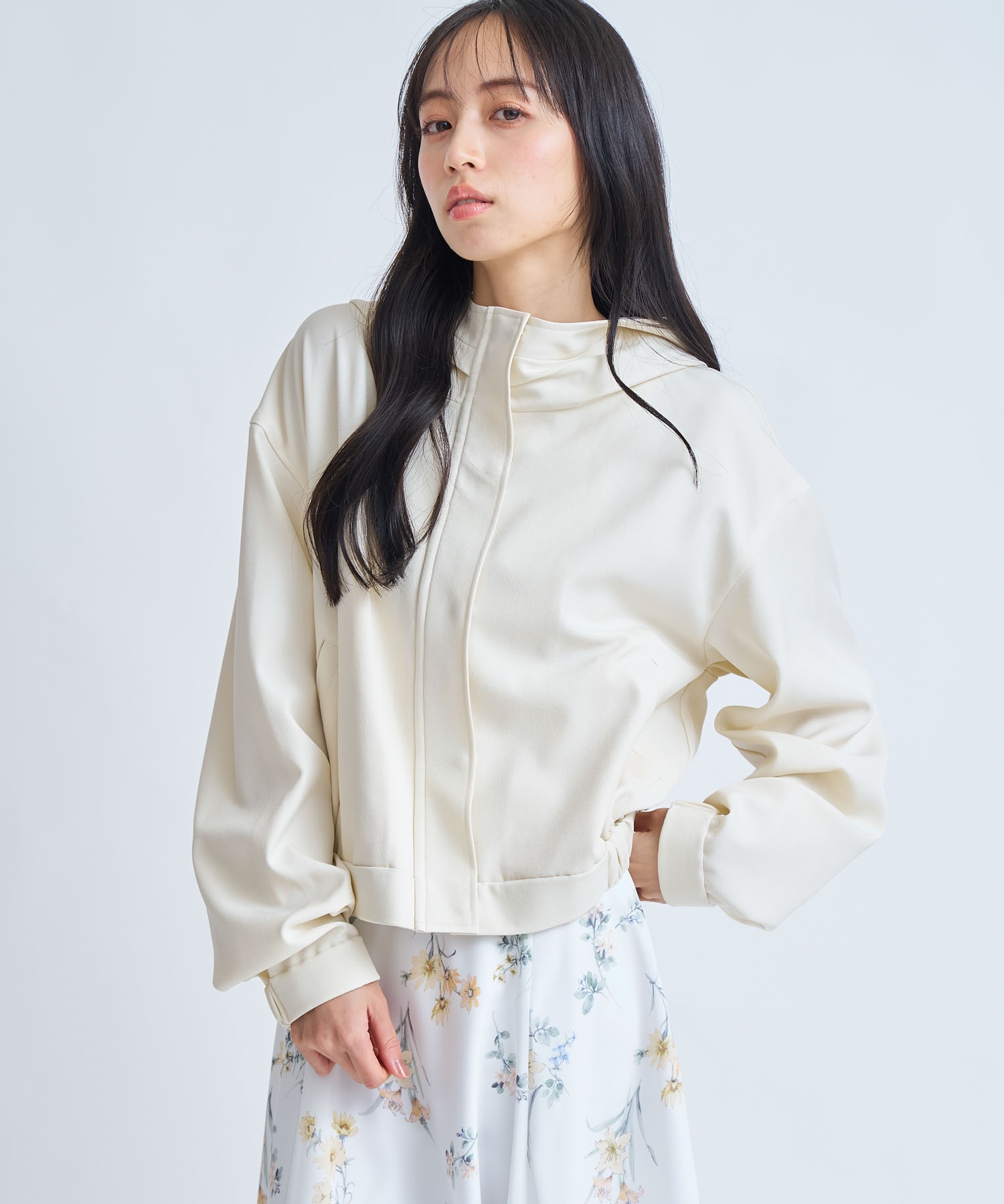 コンパクトな丈感と、程よい抜け感を演出する身頃のボリュームが魅力のフーディージャケット。