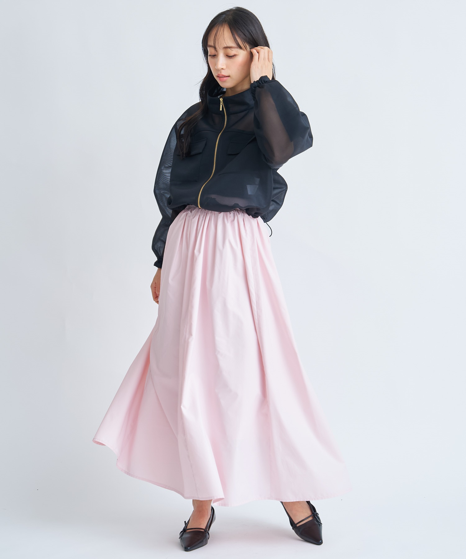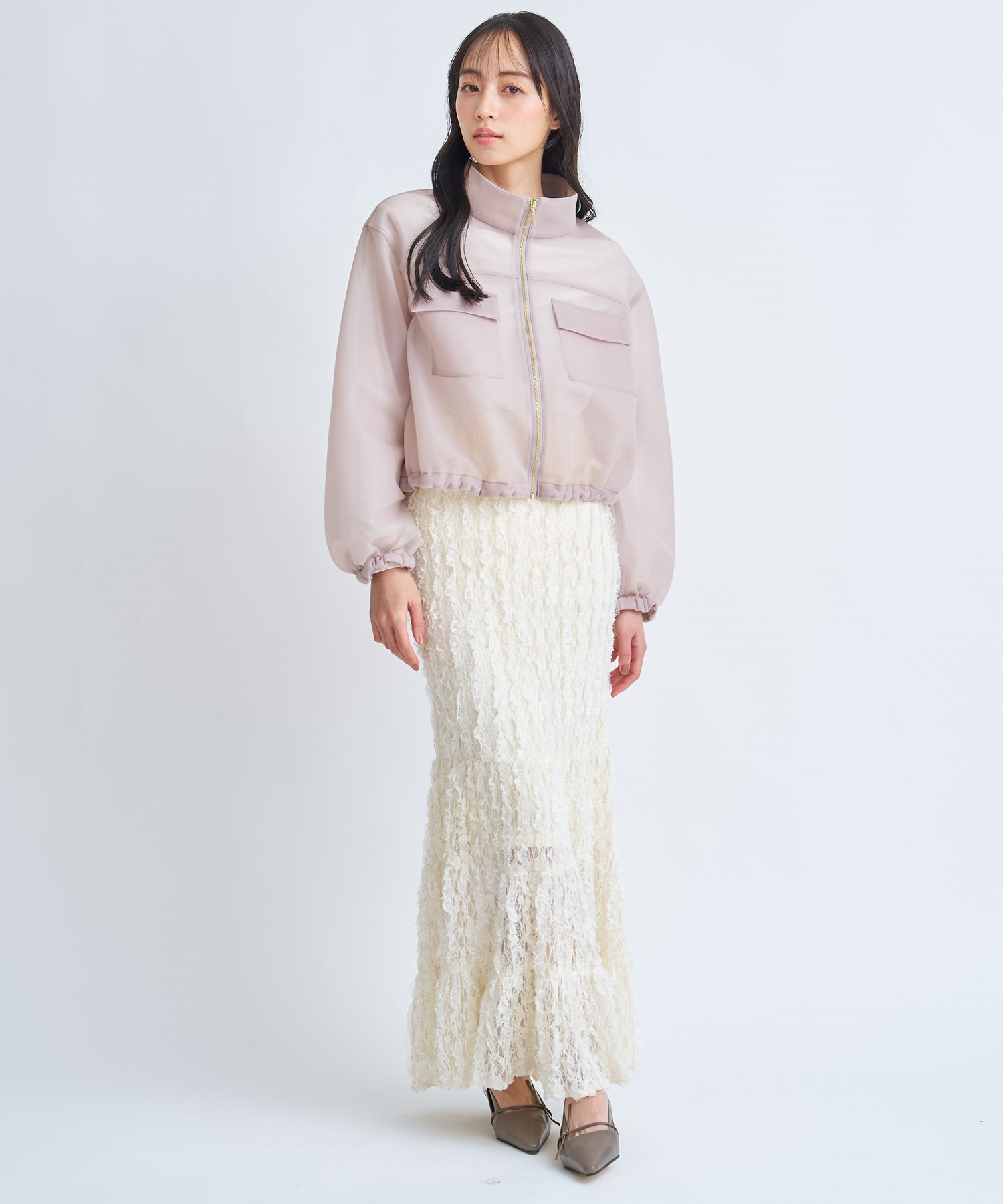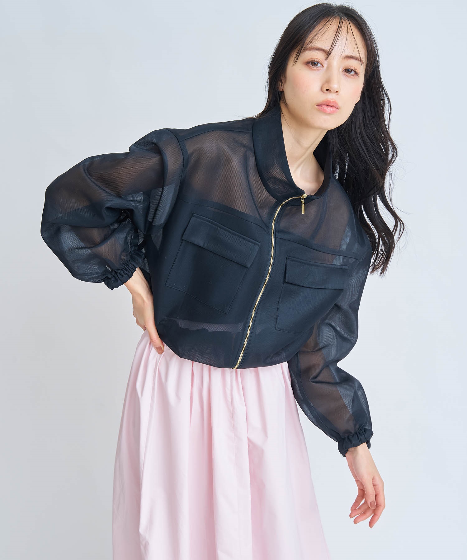軽やかなショート丈が印象的なシアーブルゾン。