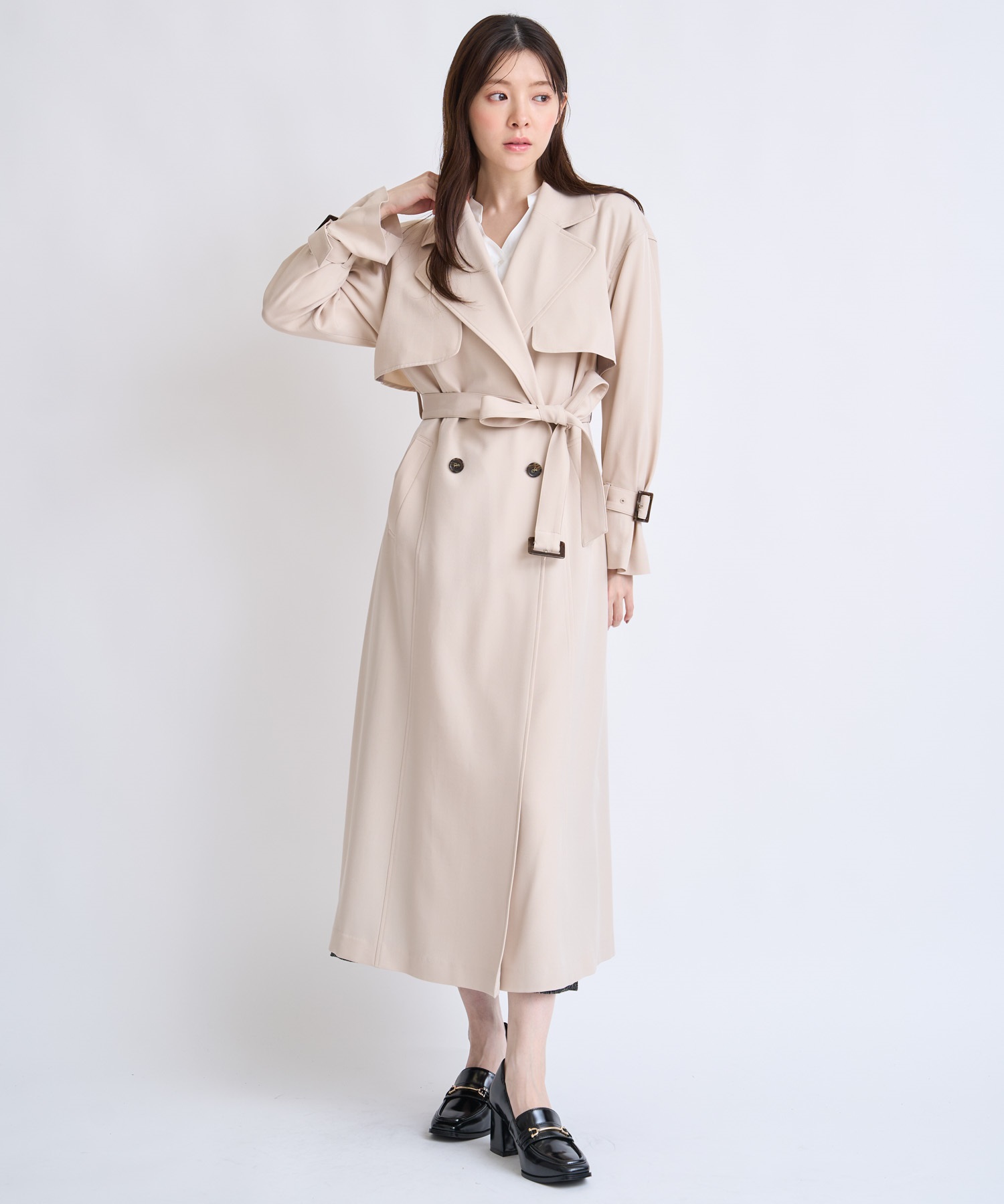 オーバーサイズシルエットが今季らしいトレンチコート。