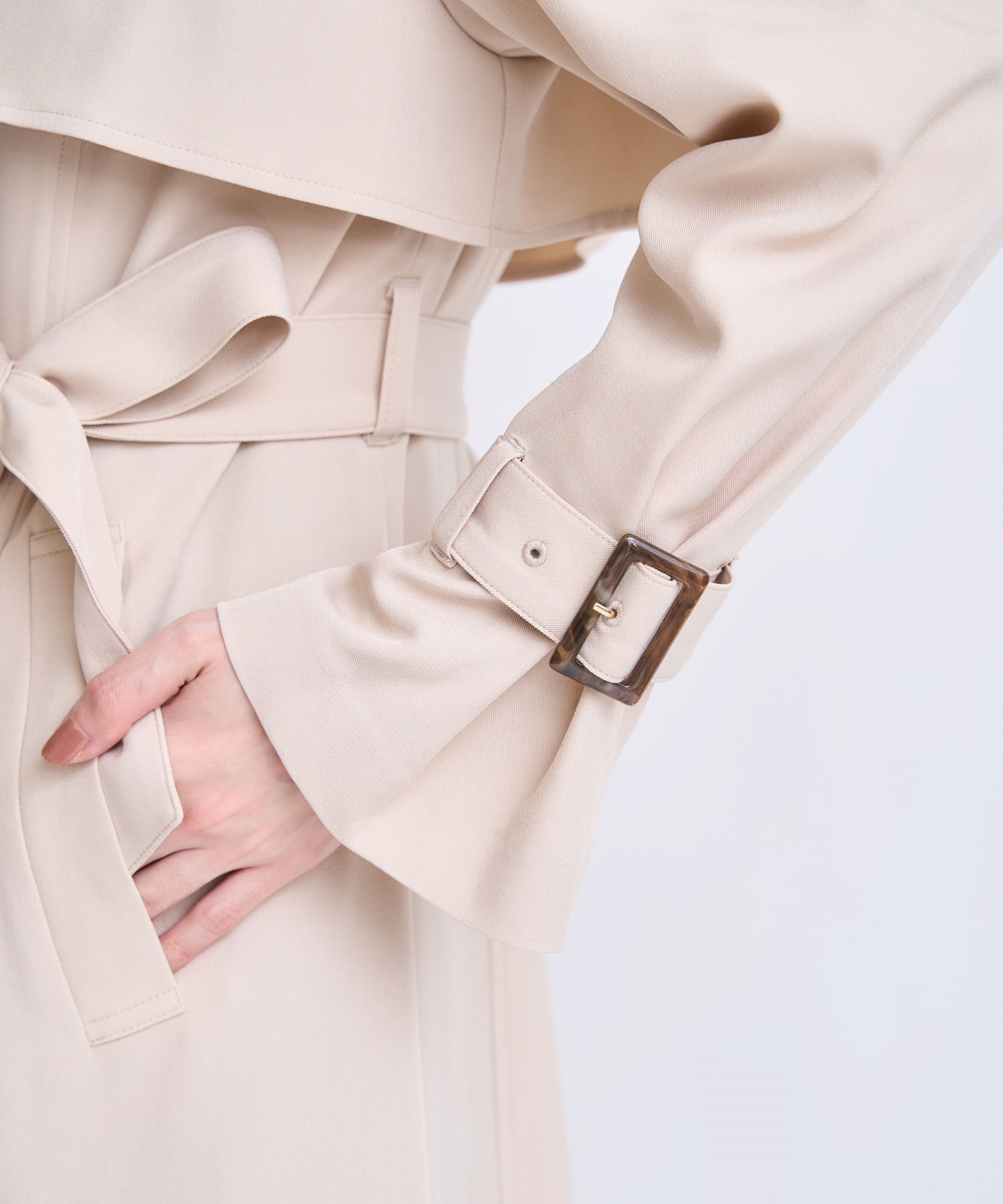ウエストベルトを結ぶことで、華奢見えを叶える女性らしいシルエットに。
