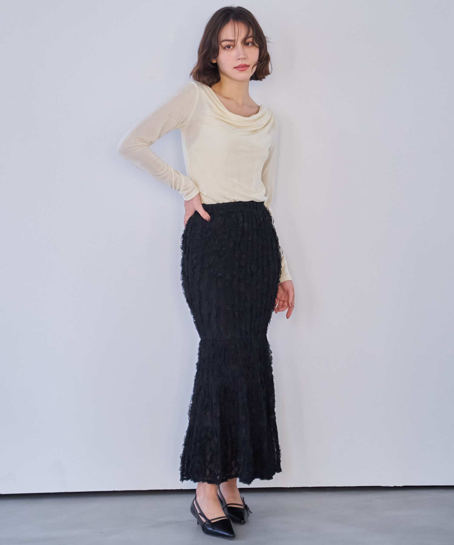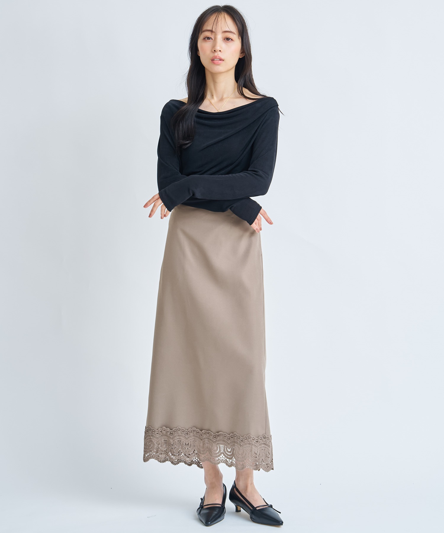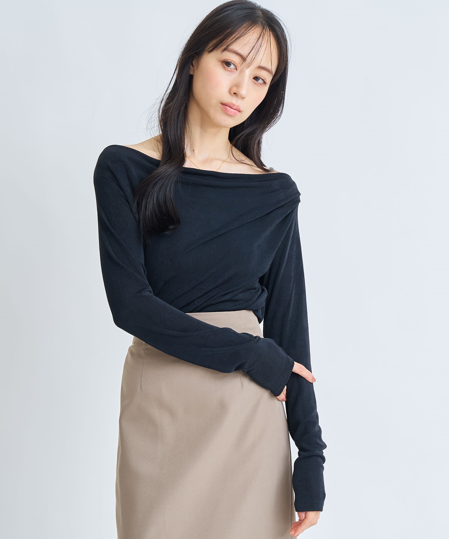 2WAY仕様でオフショルダーとしても着用でき、さりげない肌見せと抜け感を楽しめます。