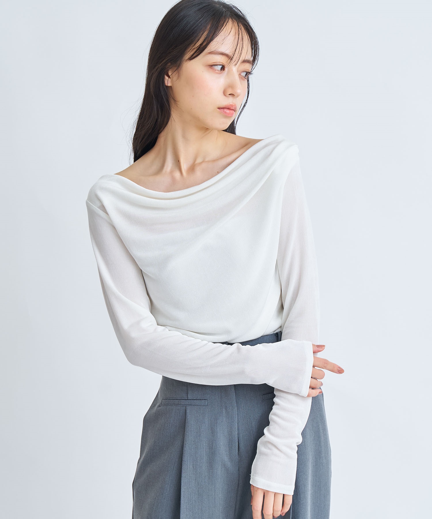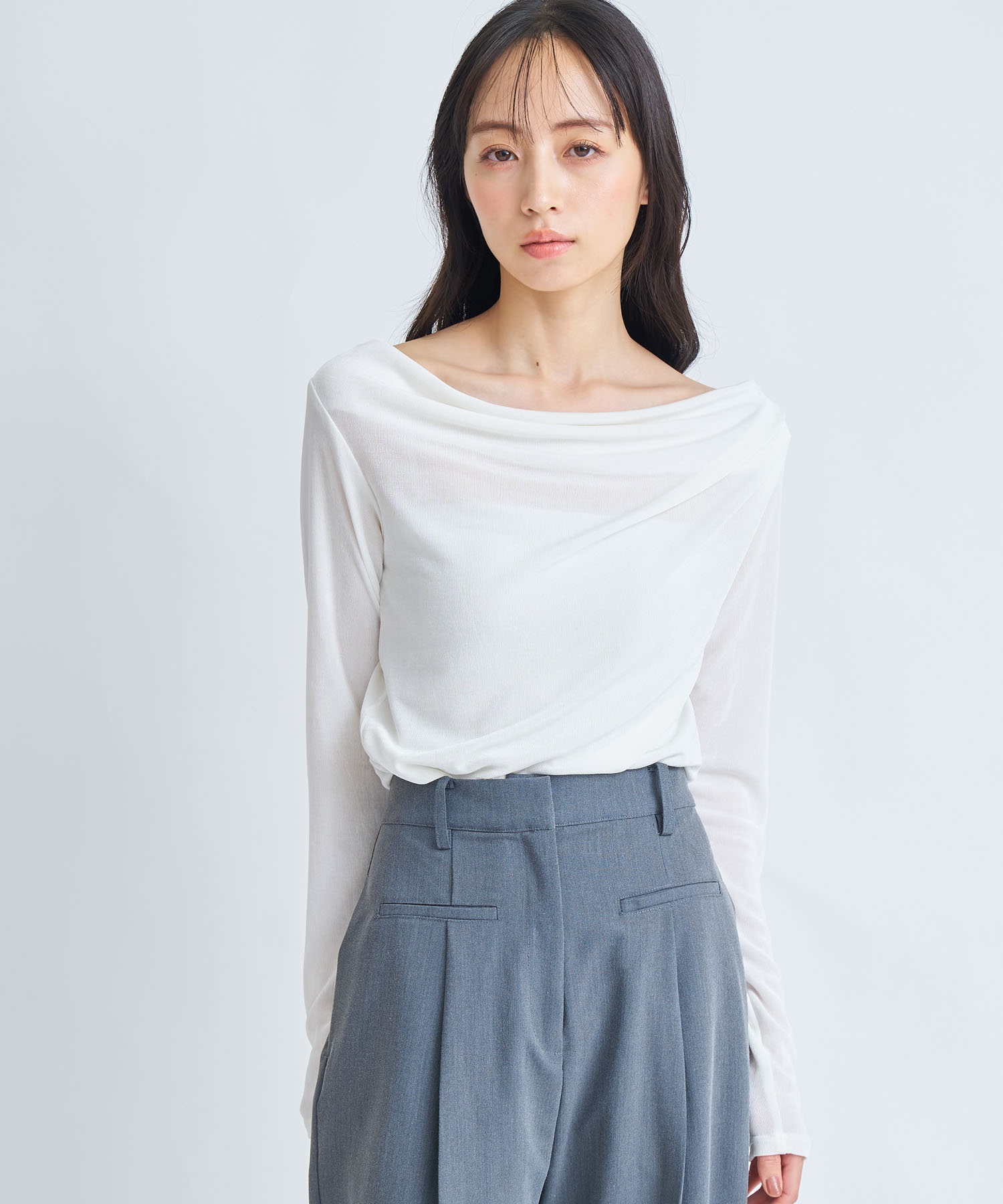 • 【予約】シアードレープカットソー(01オフホワイト-フリー-3月下旬ごろのお届け)