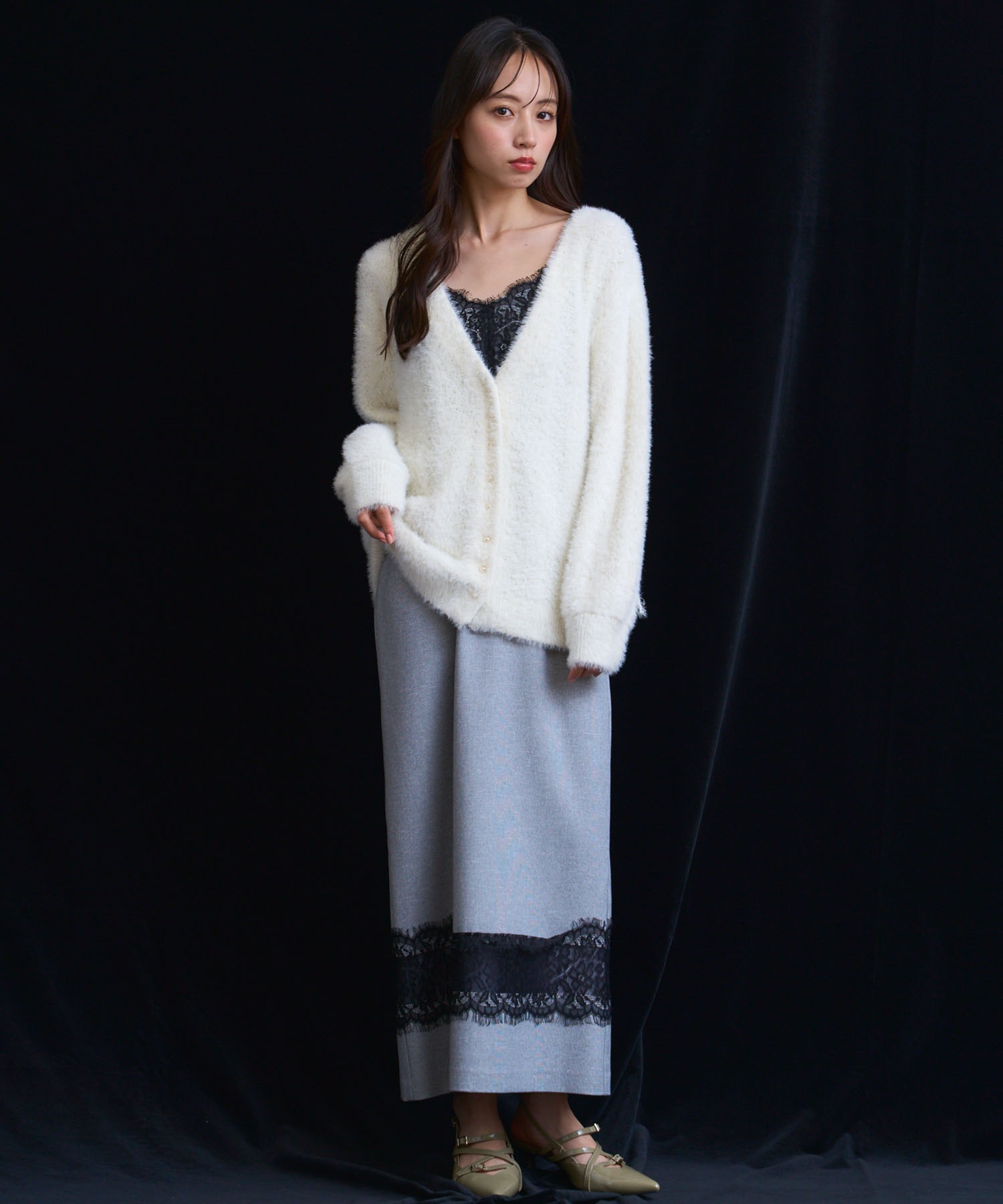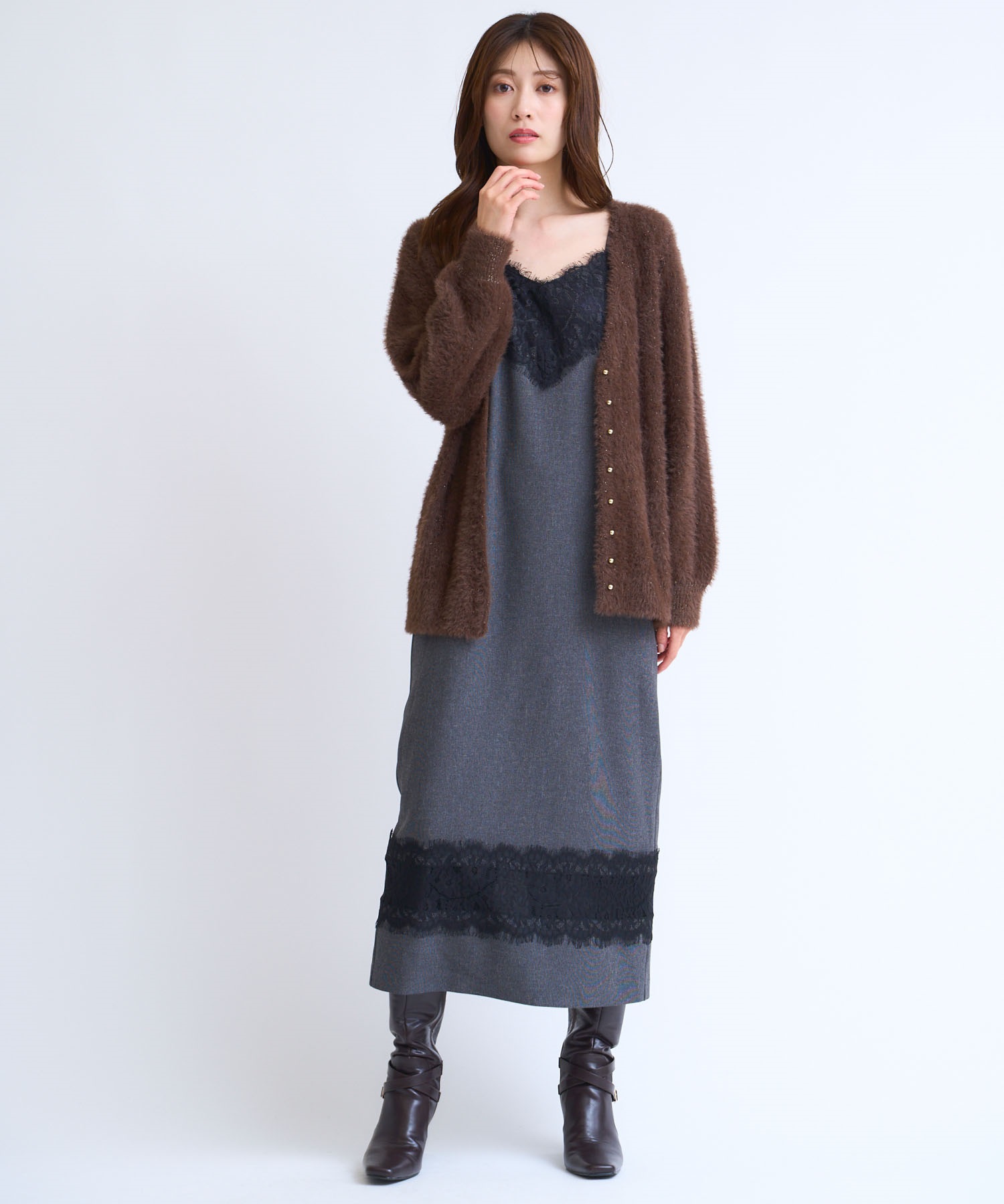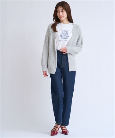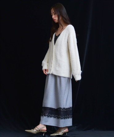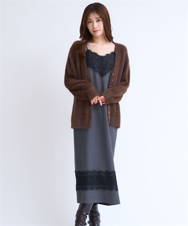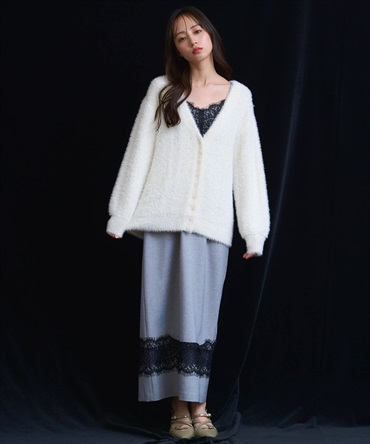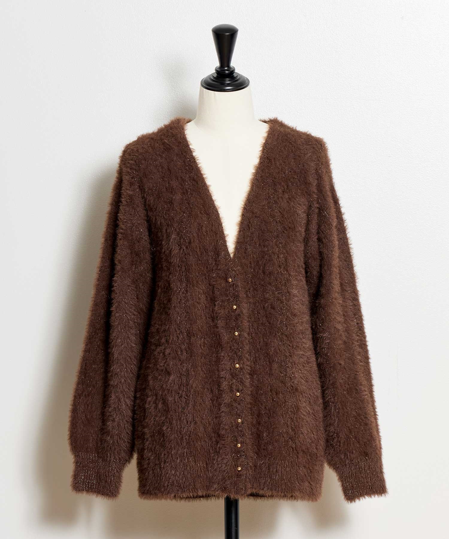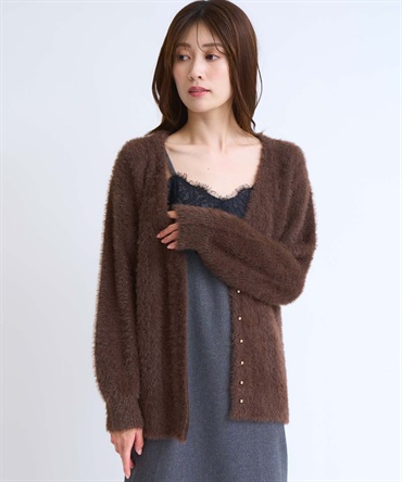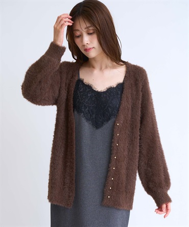 • フェザーラメ柄編みカーディガン