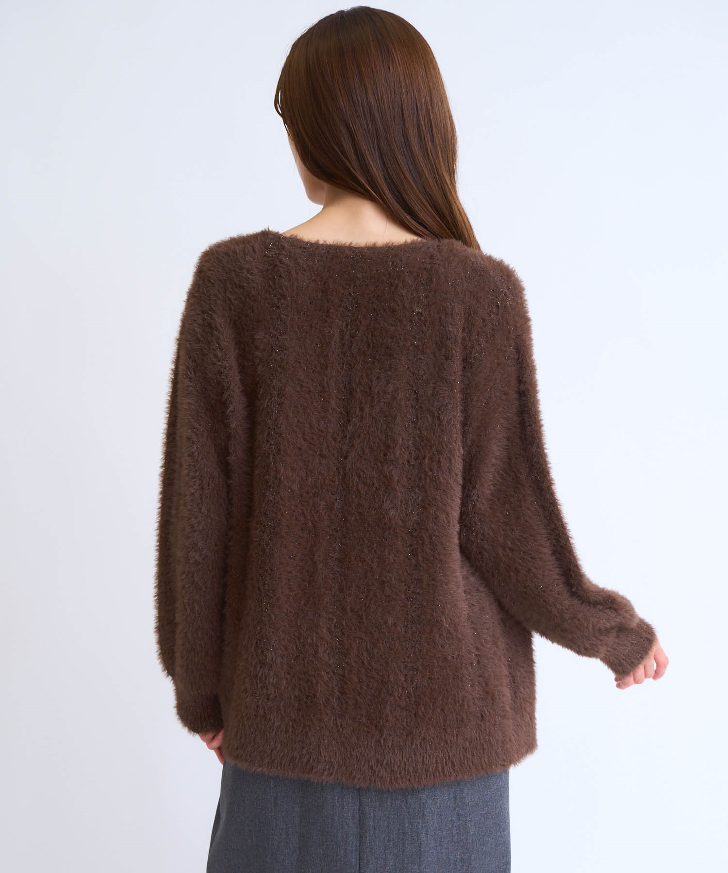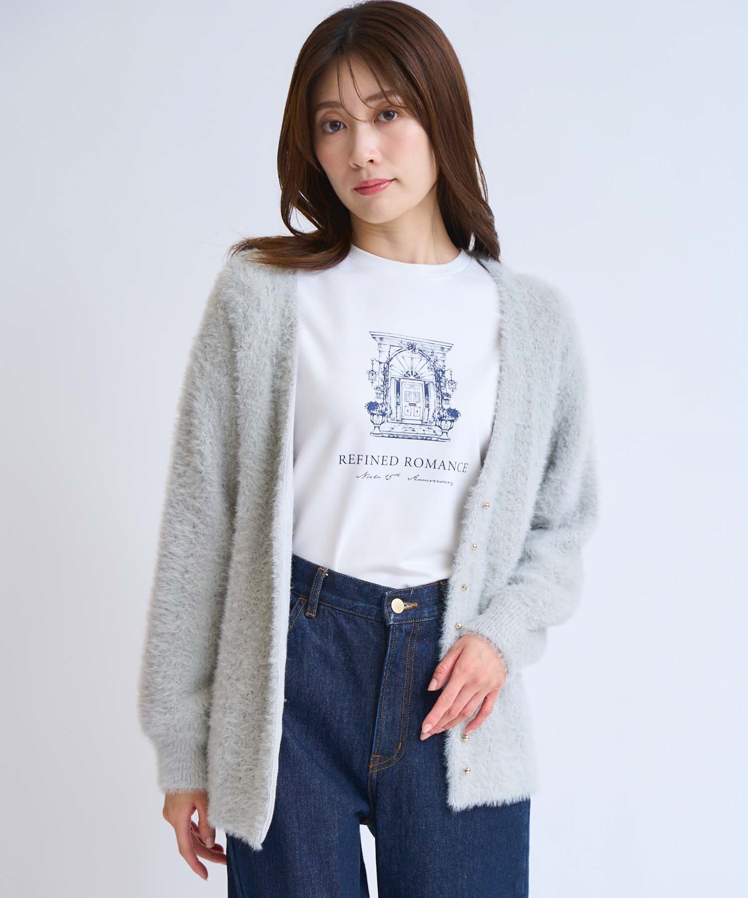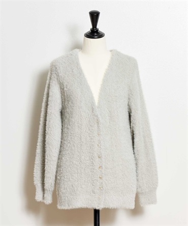 • フェザーラメ柄編みカーディガン(11グレー-フリー)