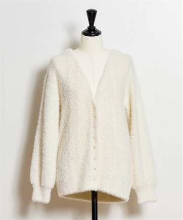 • フェザーラメ柄編みカーディガン(01オフホワイト-フリー)