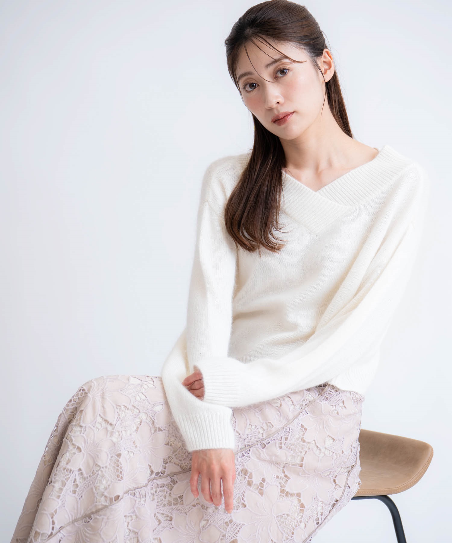 • 【予約】2WAYアンゴララクーン混ニット(01オフホワイト-フリー-11月下旬ごろのお届け)
