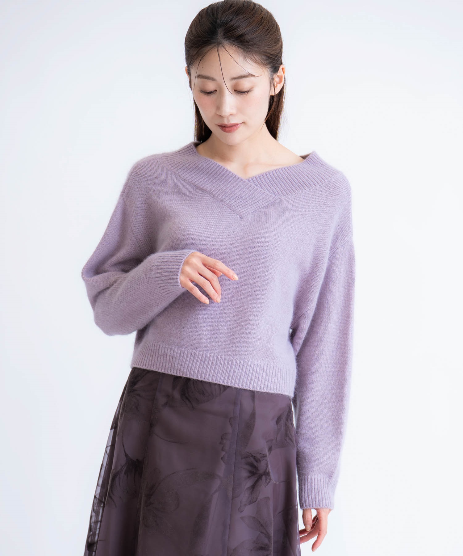 • 【予約】2WAYアンゴララクーン混ニット(22ラベンダー-フリー-11月下旬ごろのお届け)