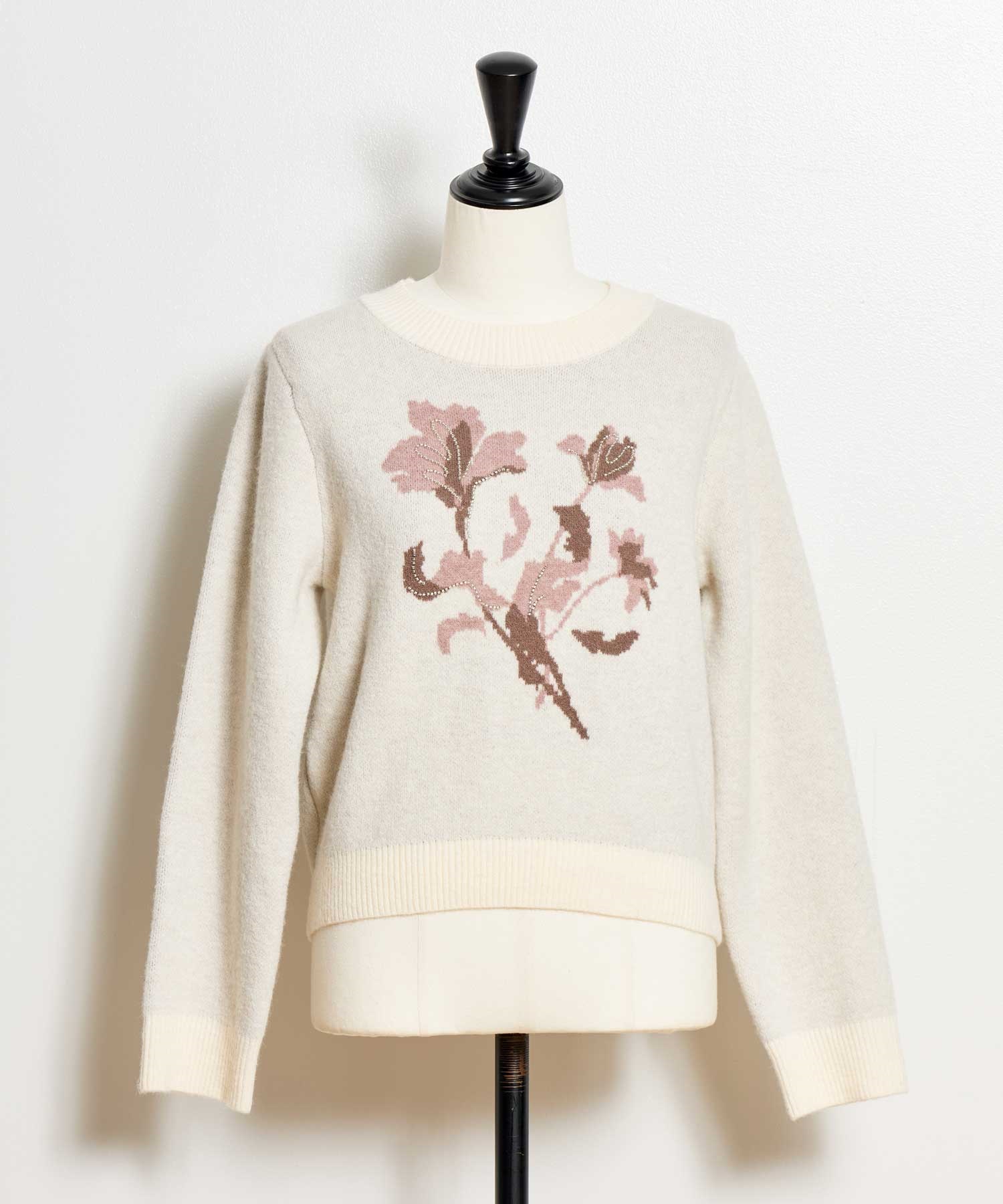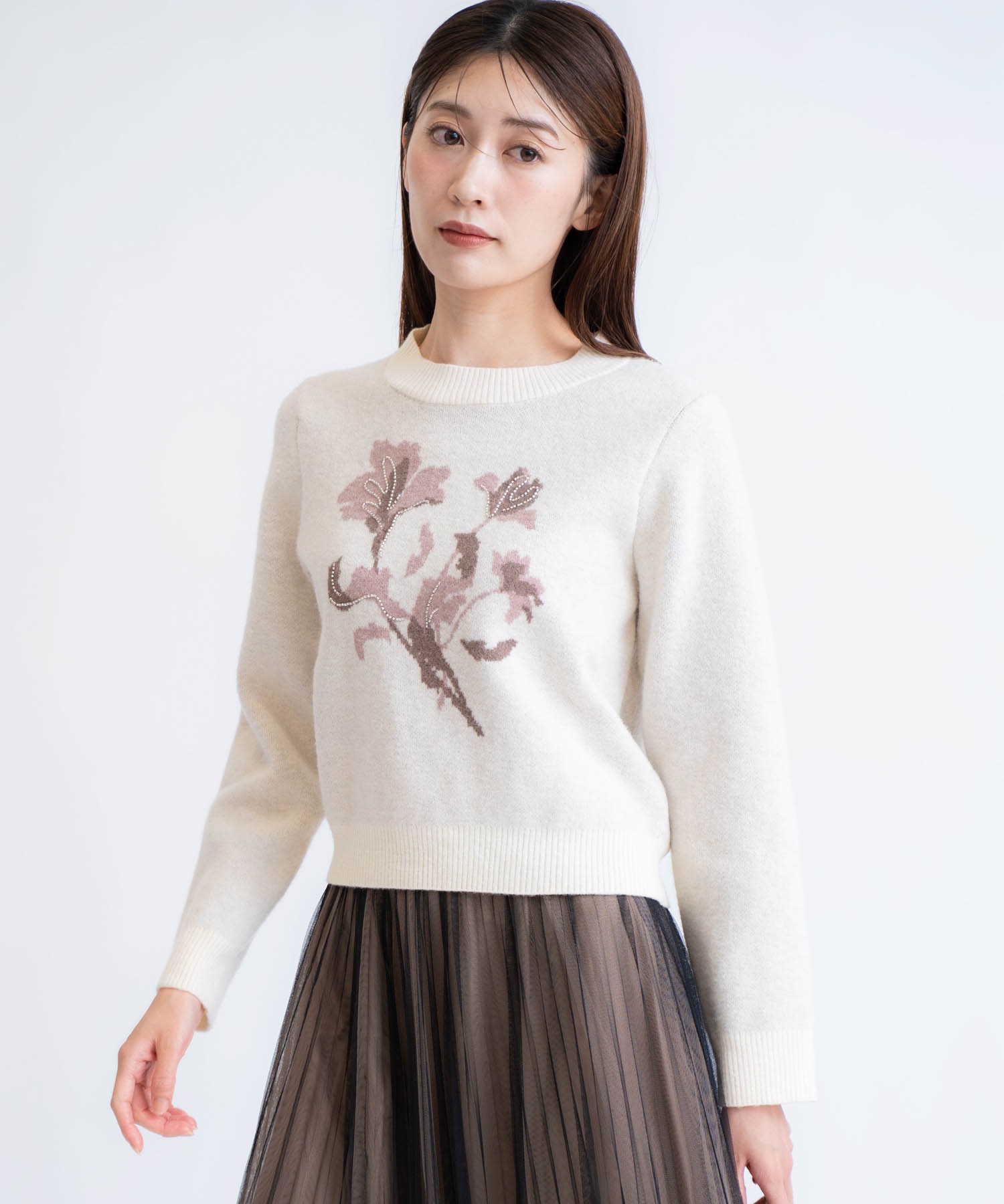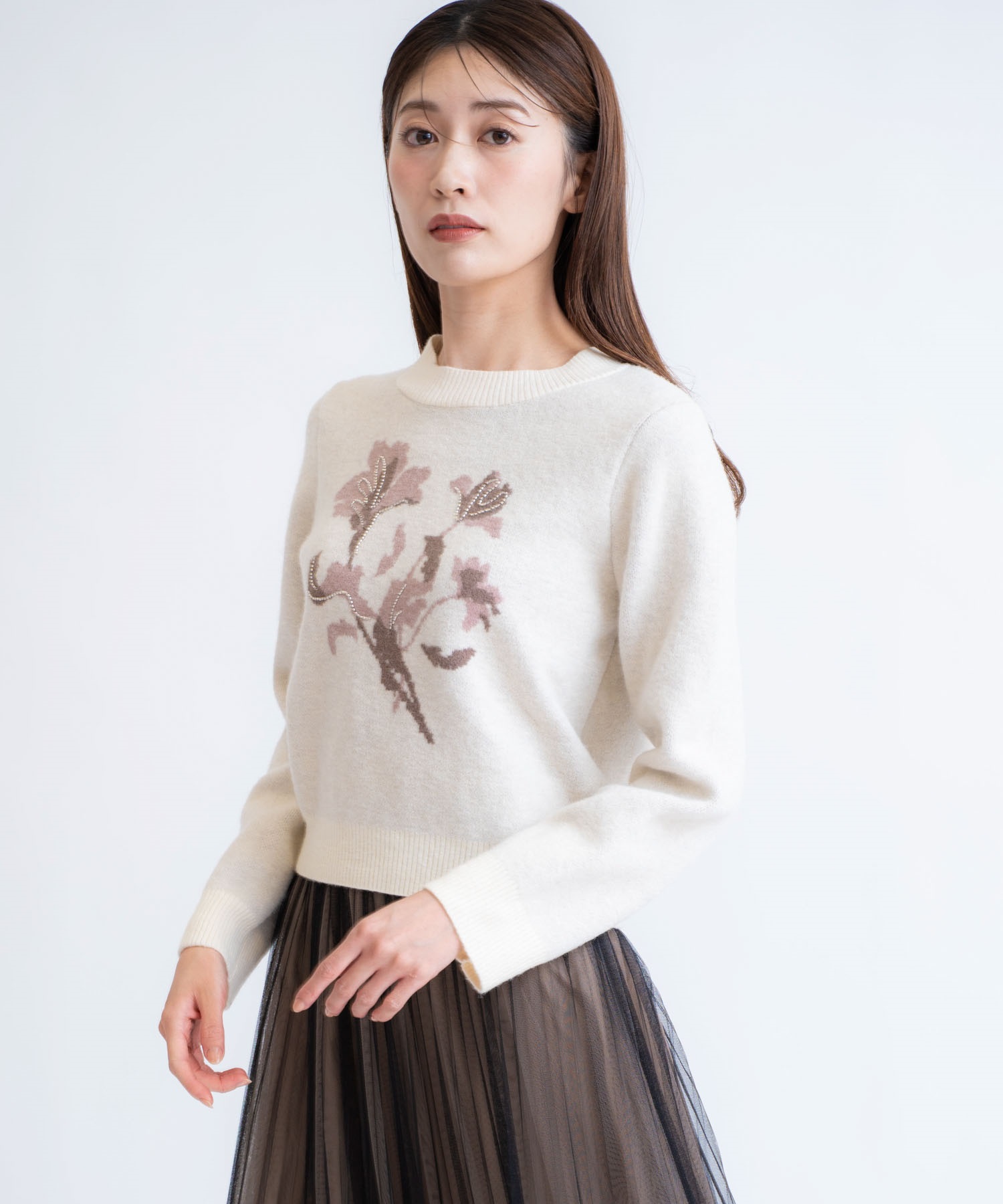 • 【予約】ビーズジャガードニット(01オフホワイト-フリー-11月下旬ごろのお届け)