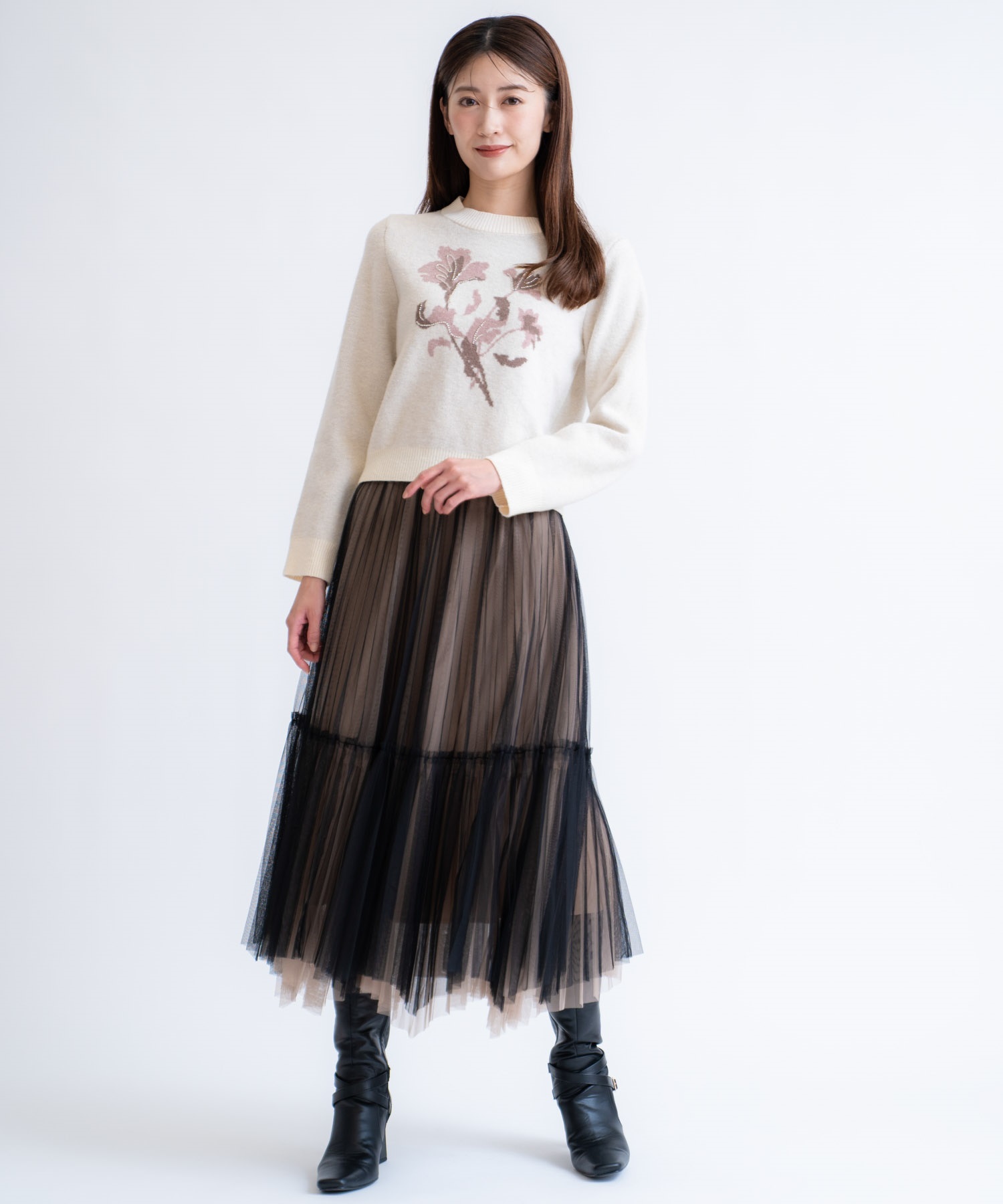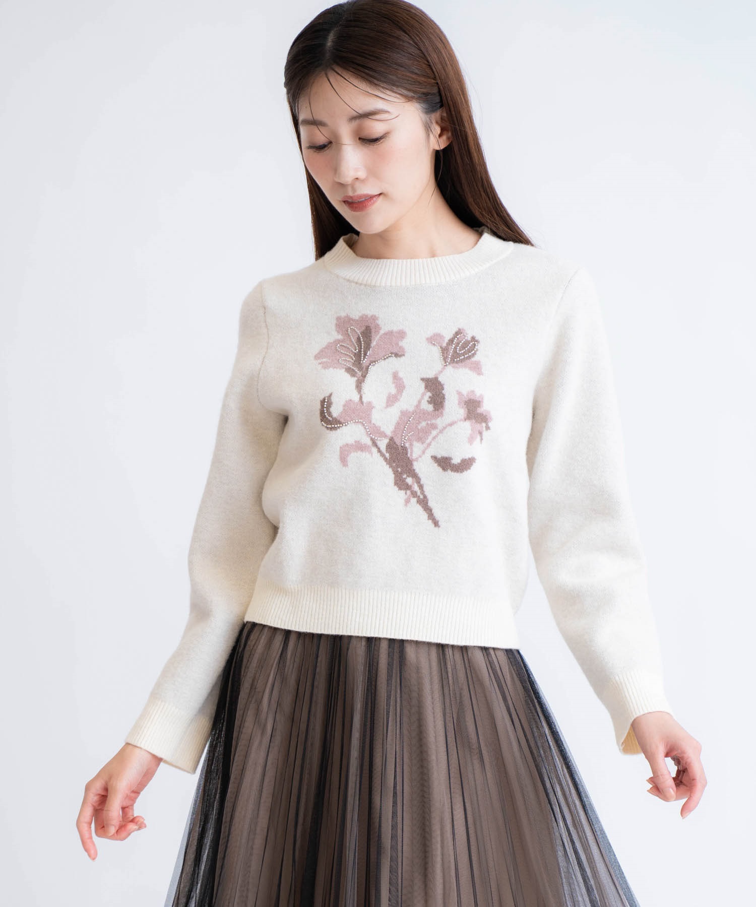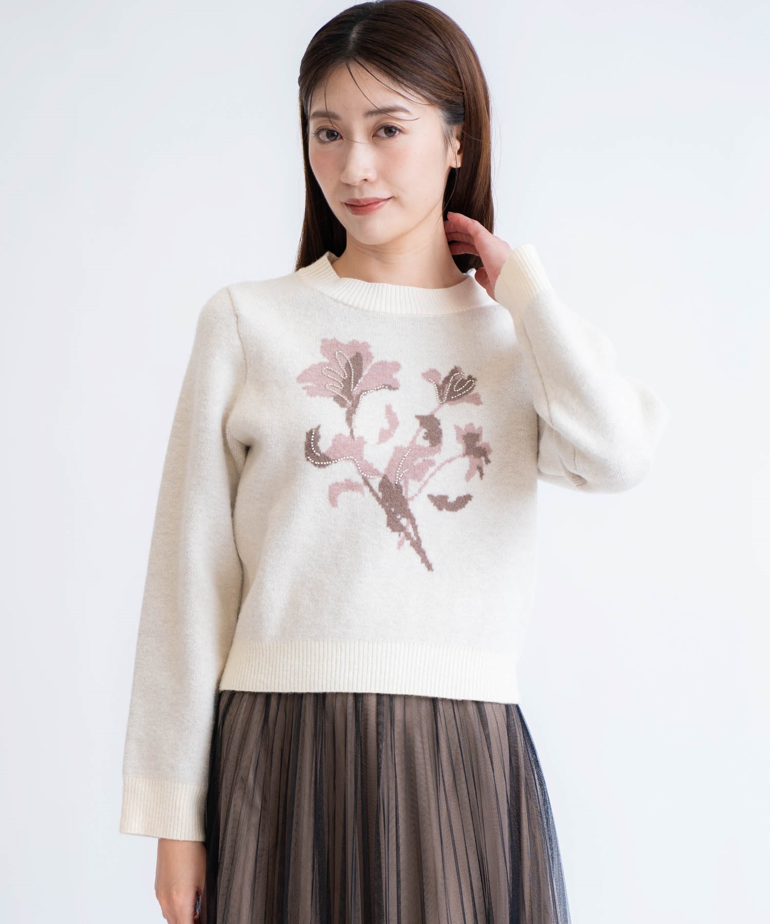 • 【予約】ビーズジャガードニット(01オフホワイト-フリー-11月下旬ごろのお届け)