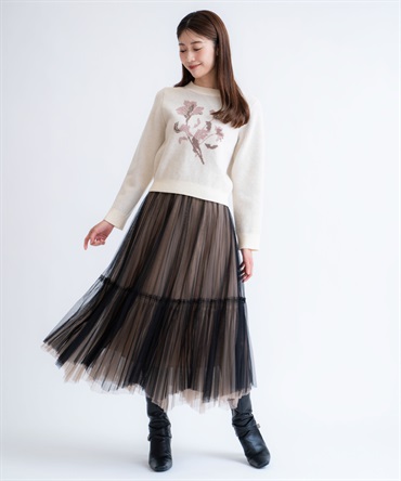 軽やかなスカートと合わせると、女性らしい柔らかさが引き立ちます。