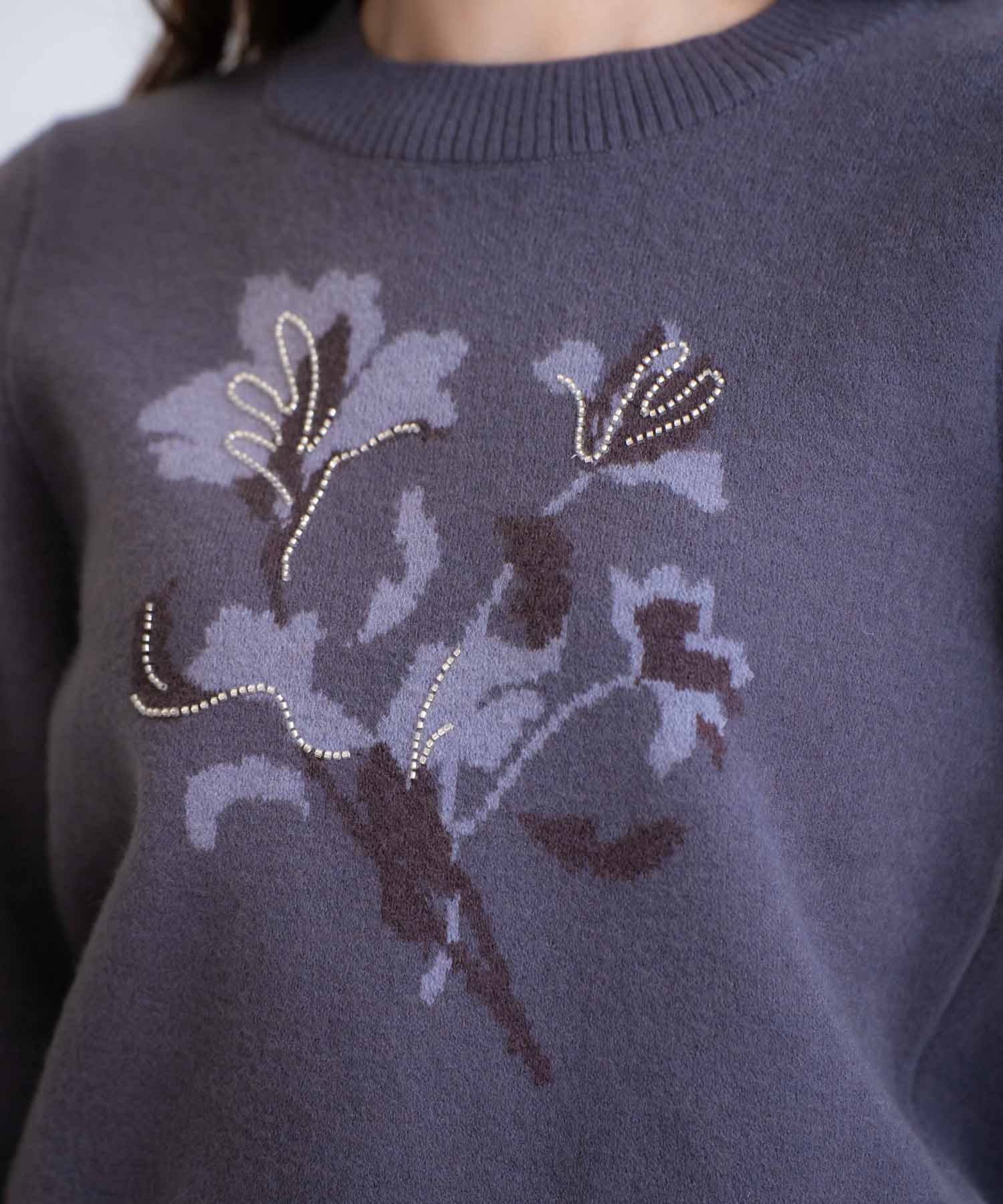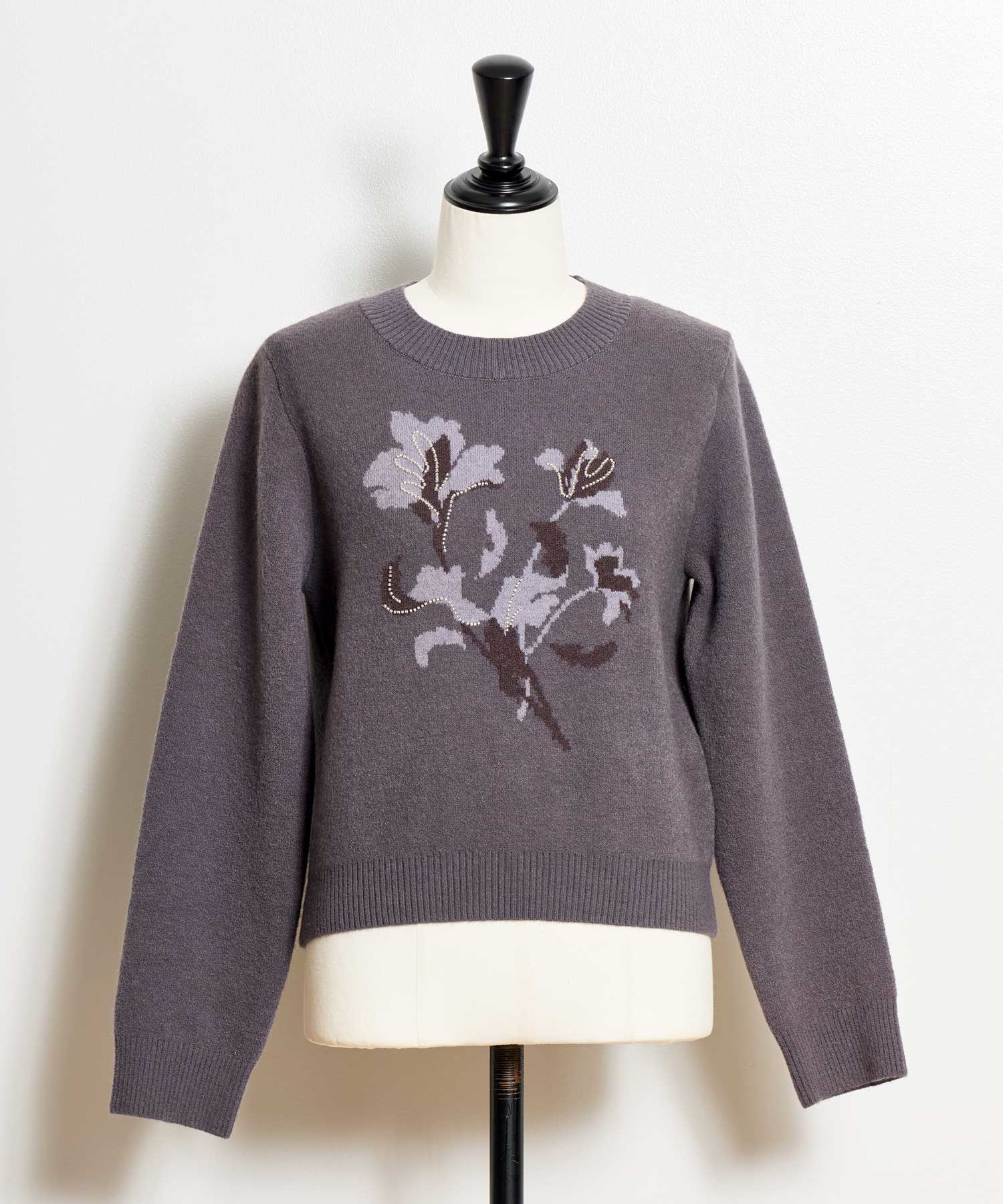 • 【予約】ビーズジャガードニット(10チャコールグレー-フリー-11月下旬ごろのお届け)