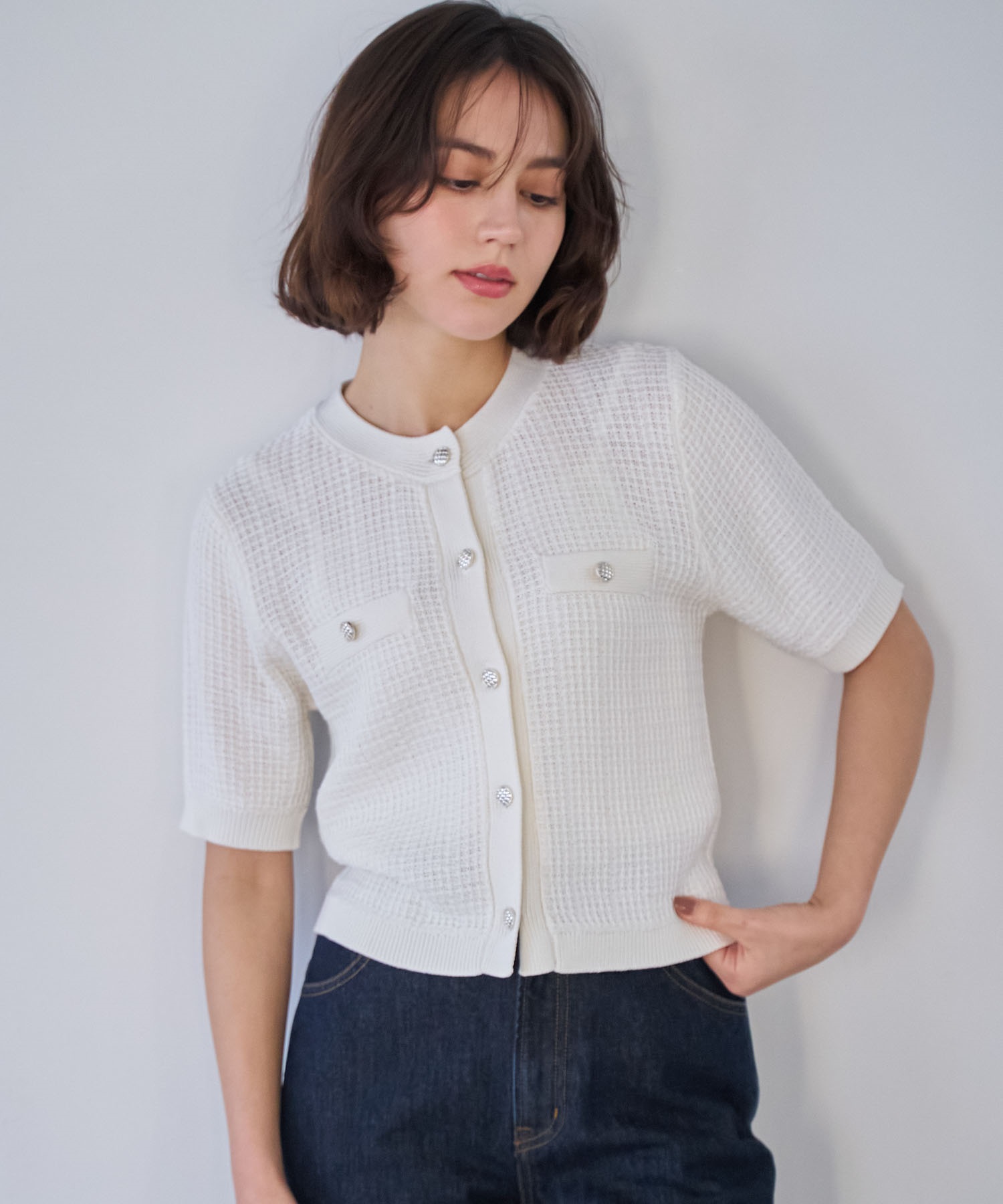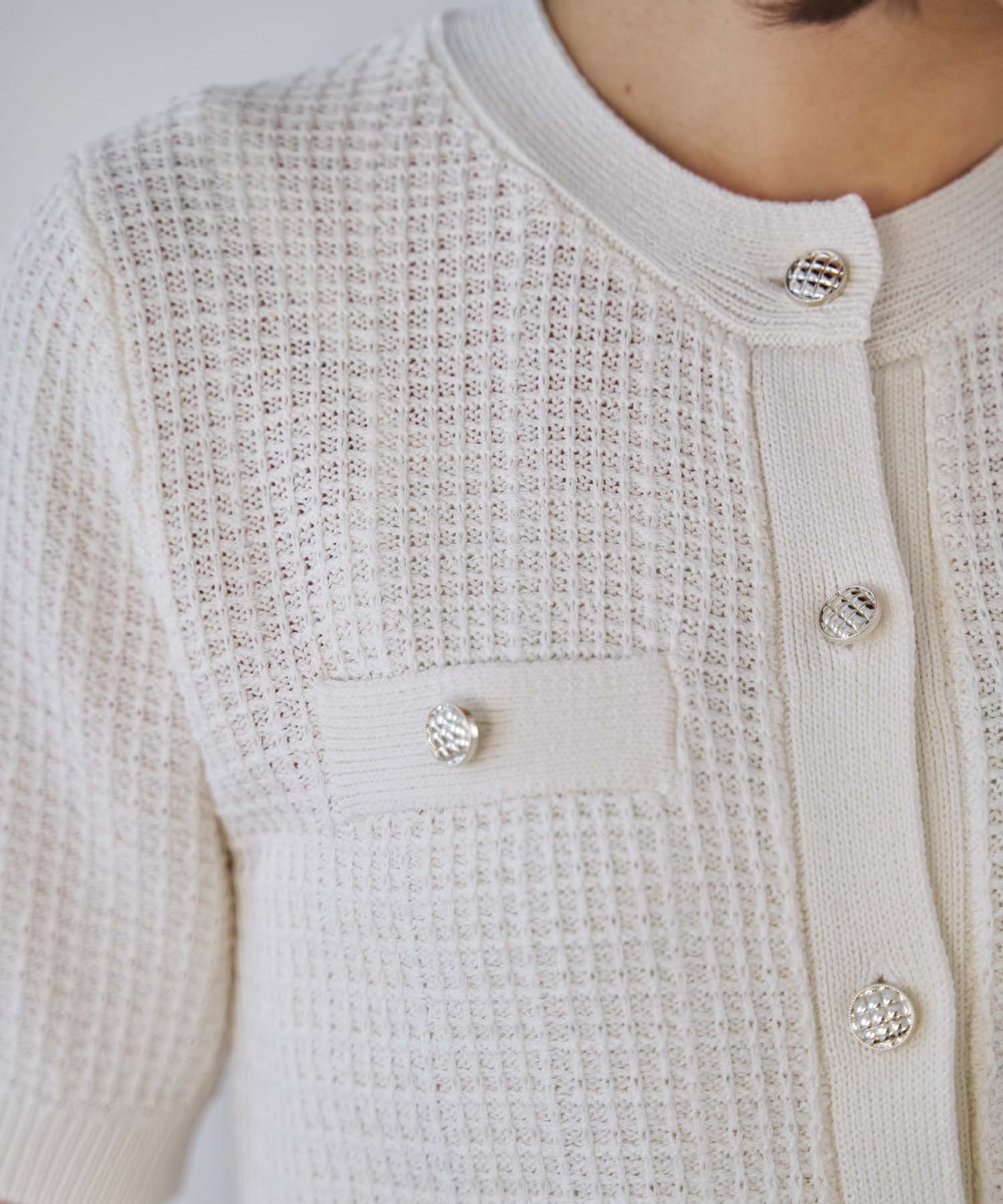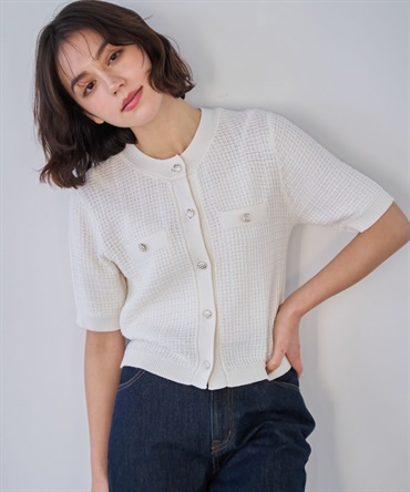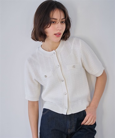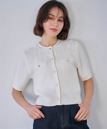 • 【予約】柄編みカーデライクニット(01オフホワイト-フリー-3月下旬ごろのお届け)