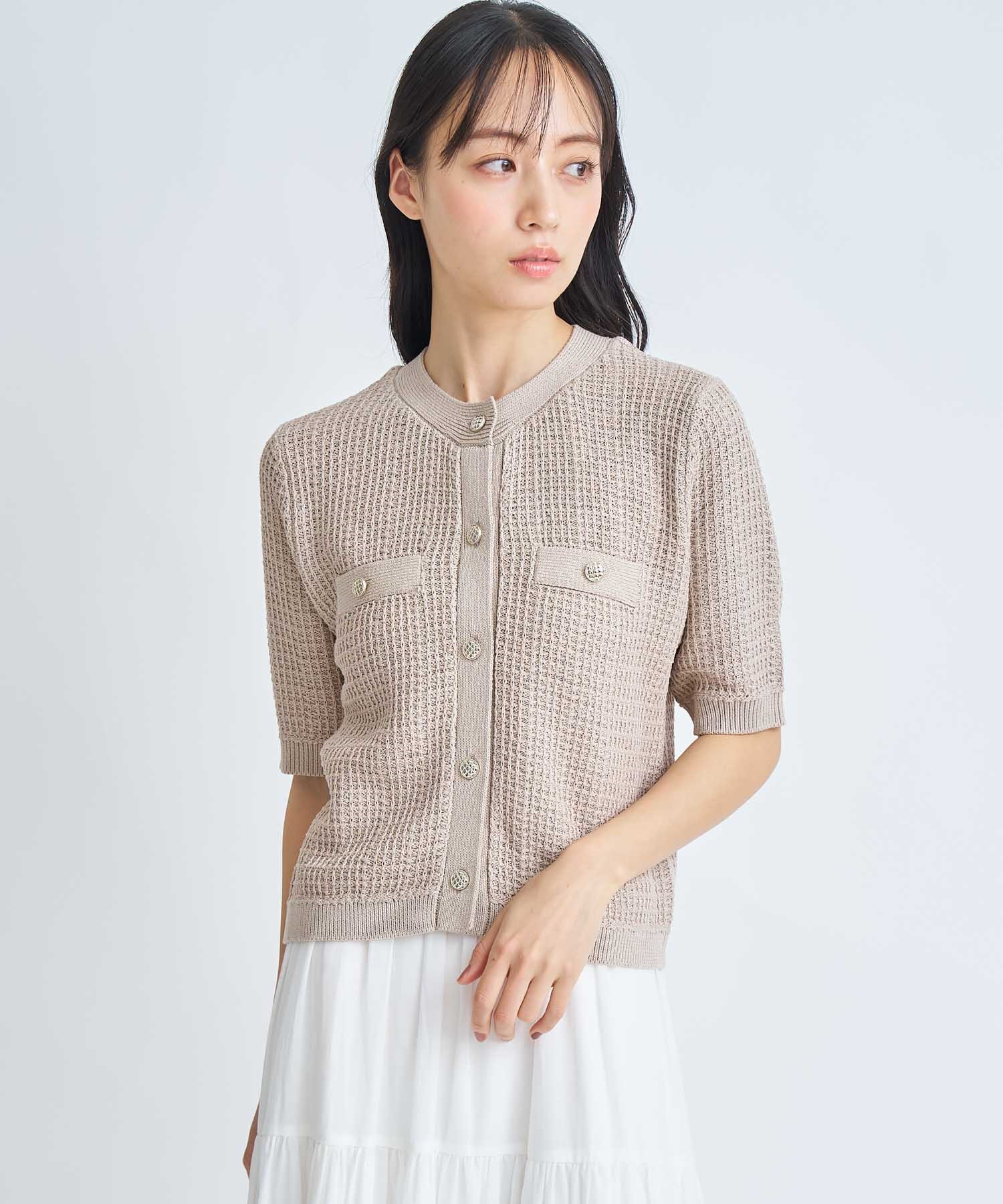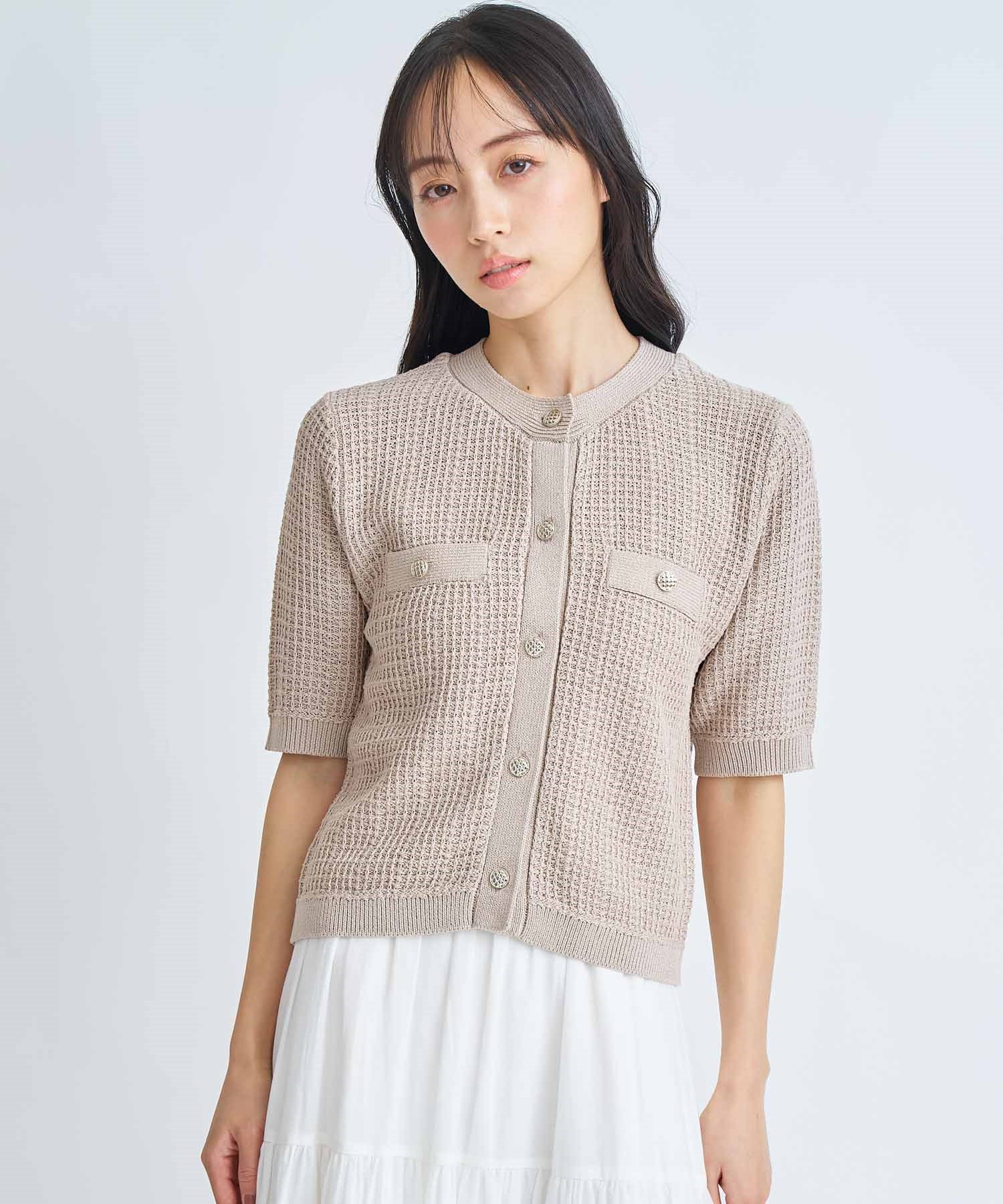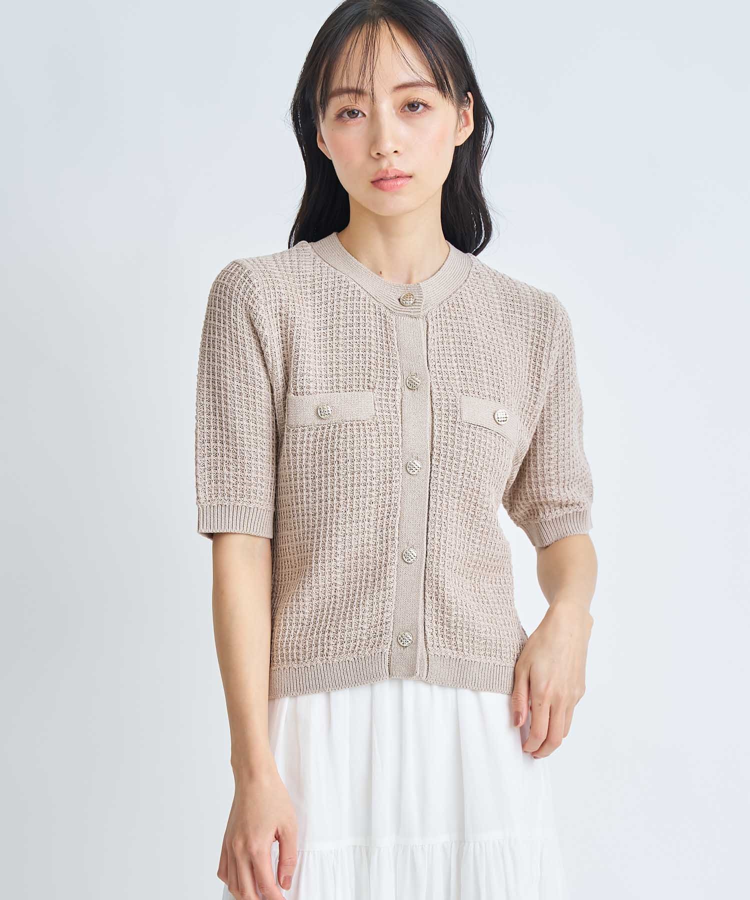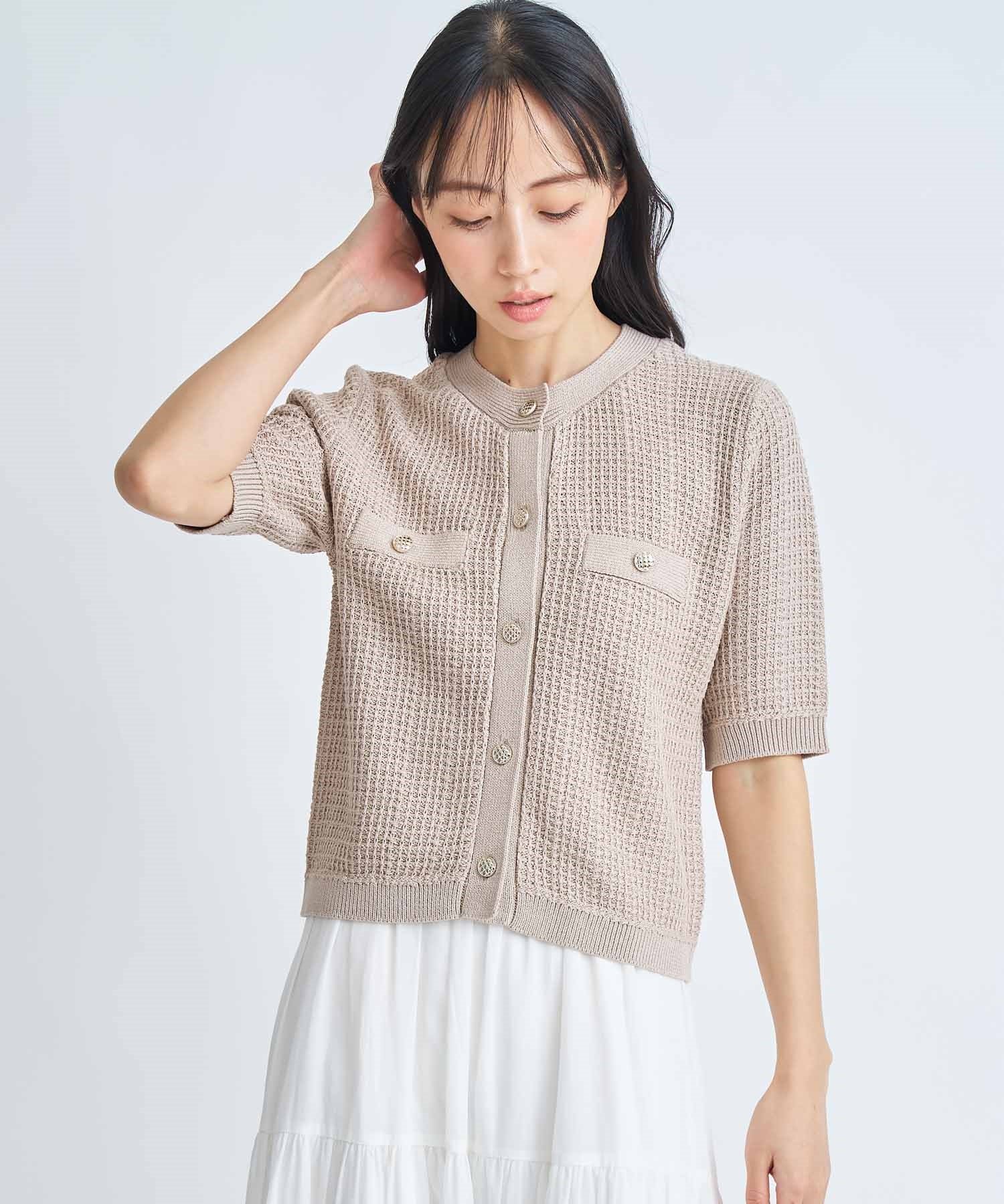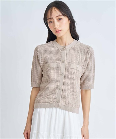 • 【予約】柄編みカーデライクニット(82ベージュ-フリー-3月下旬ごろのお届け)