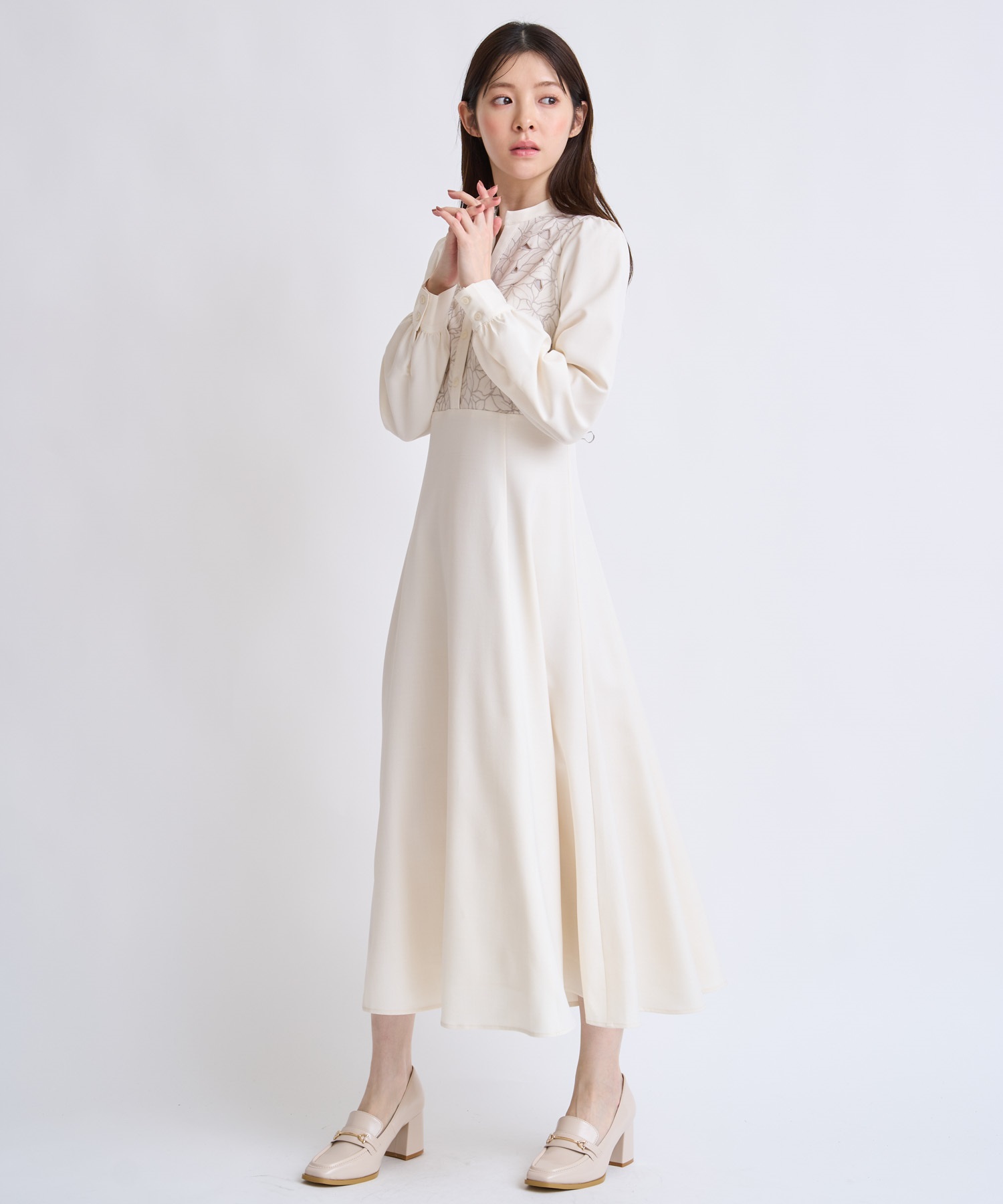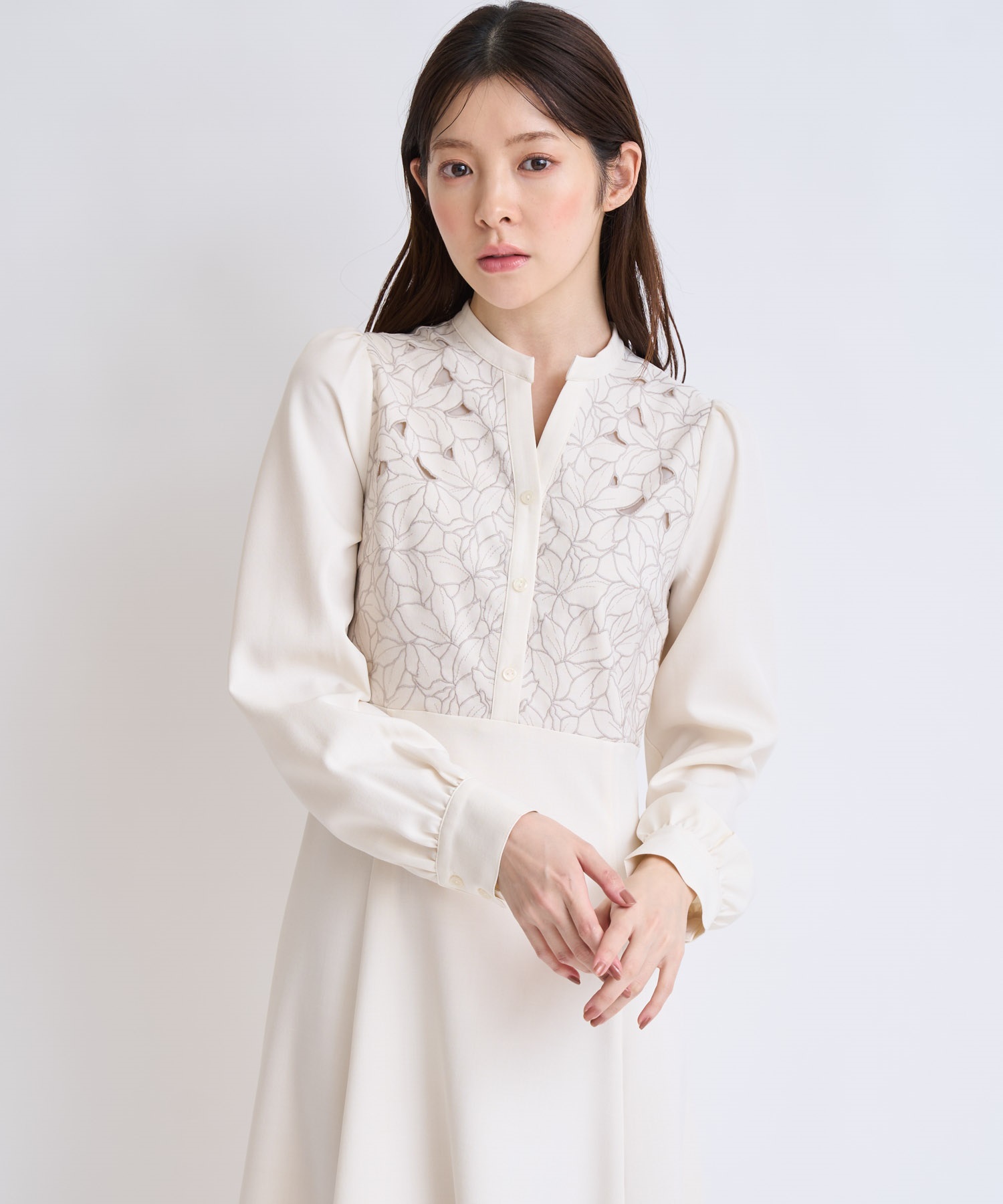 • 【予約】カットワーク刺繍ワンピース(01オフホワイト-S-2月下旬ごろのお届け)