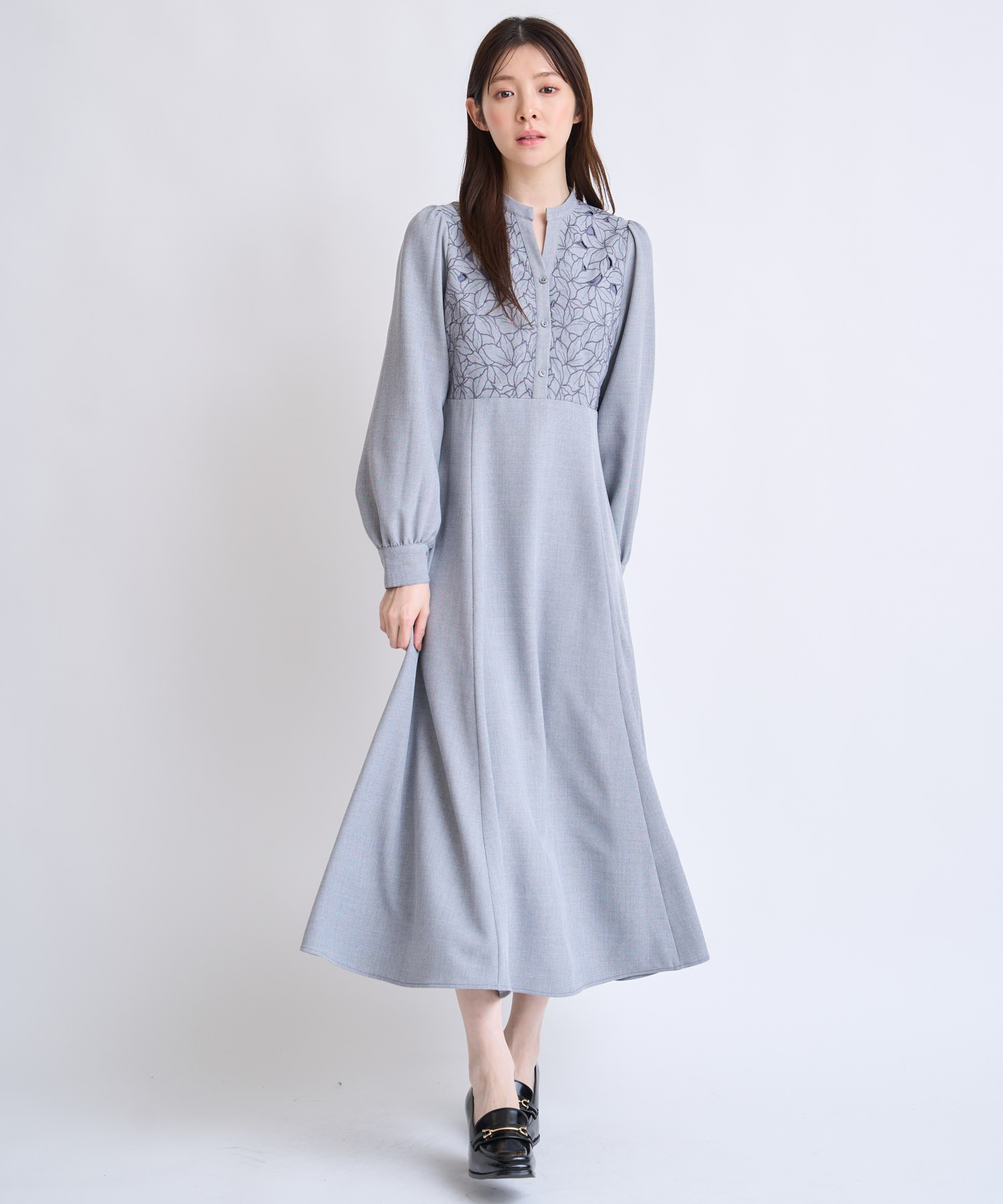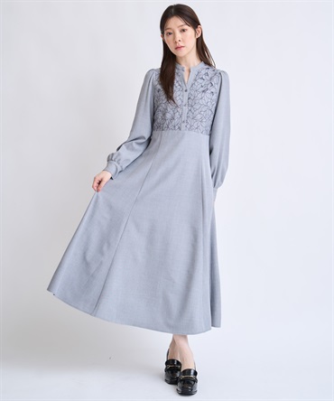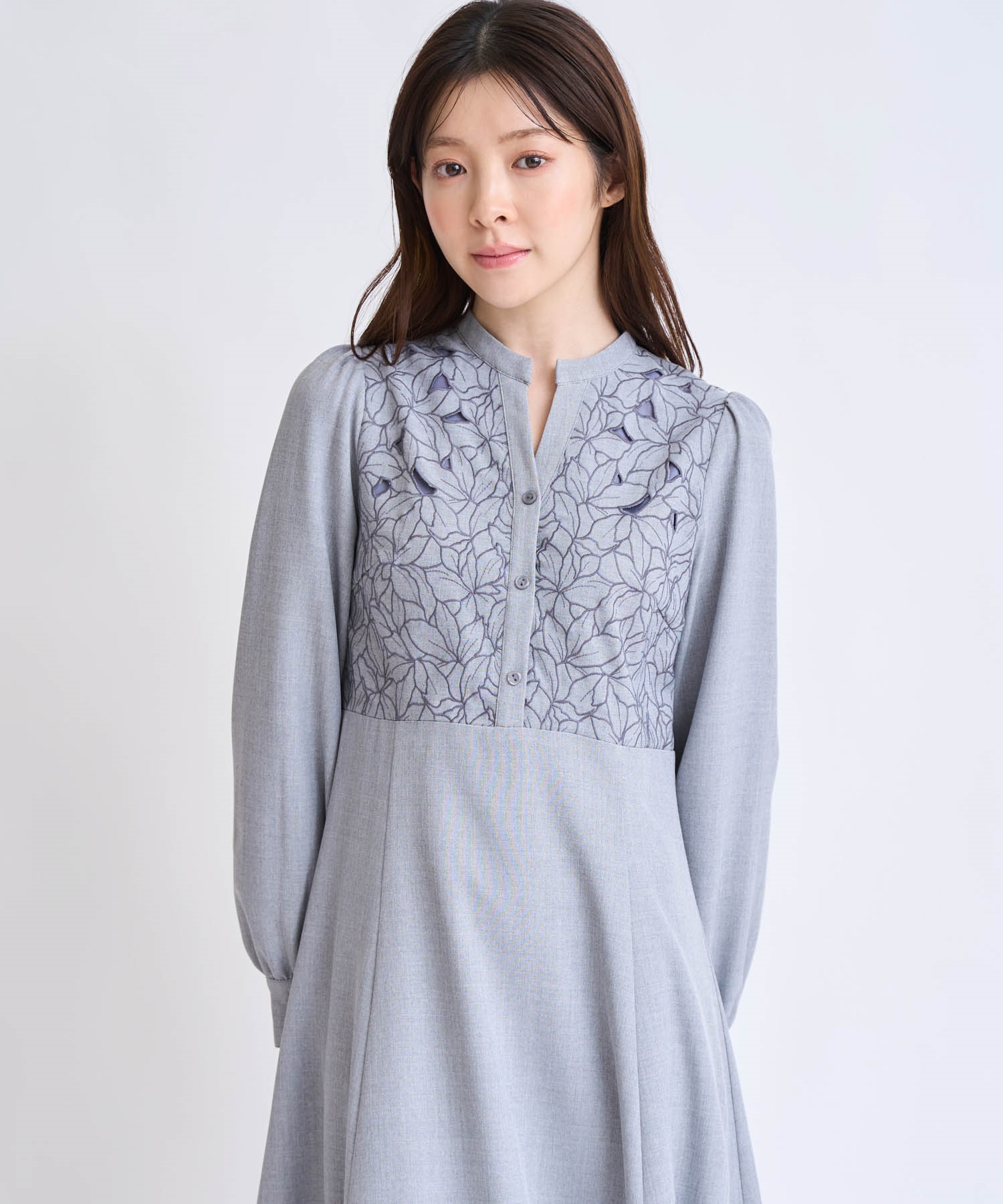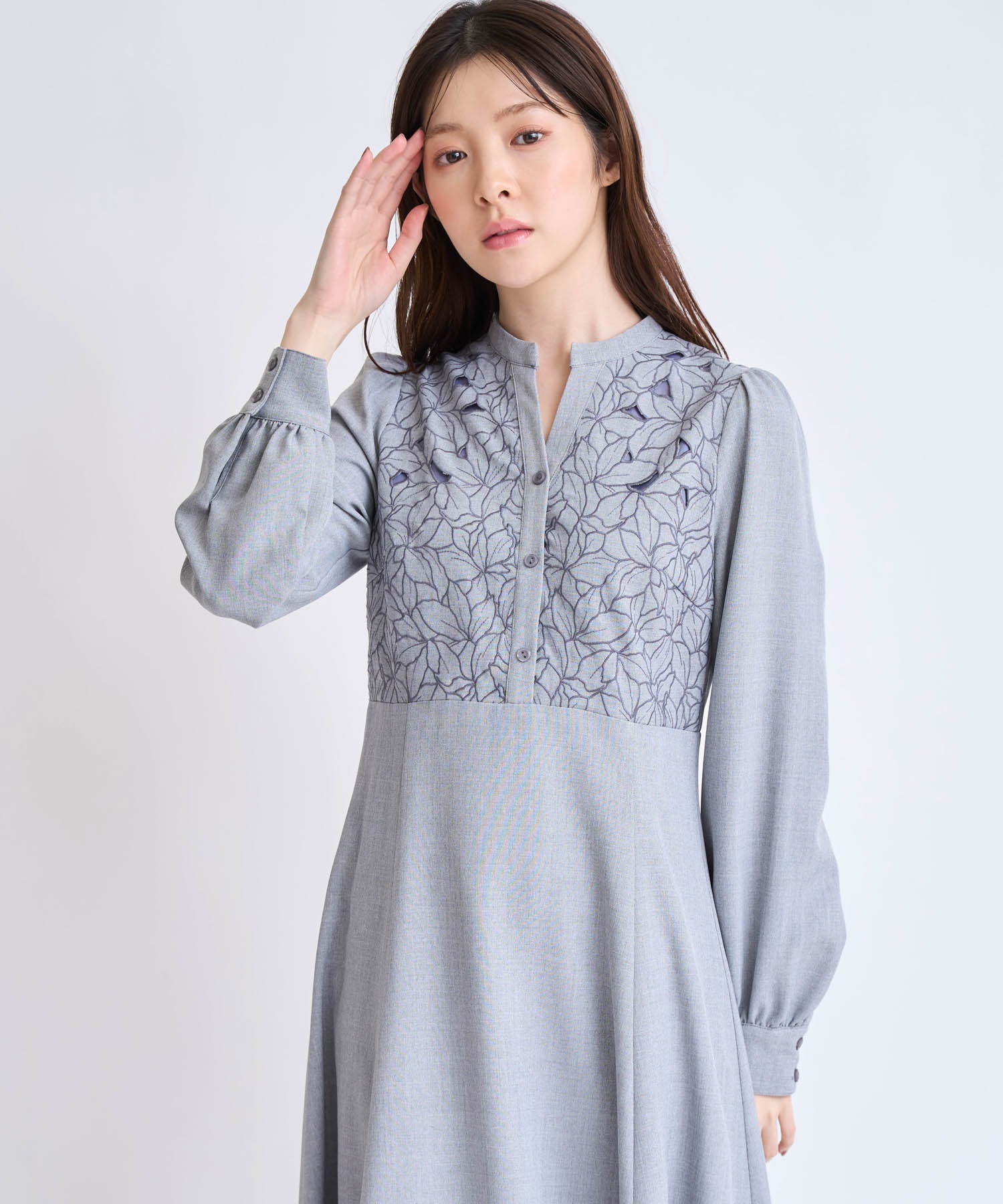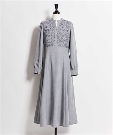 • 【予約】カットワーク刺繍ワンピース(11グレー-S-2月下旬ごろのお届け)