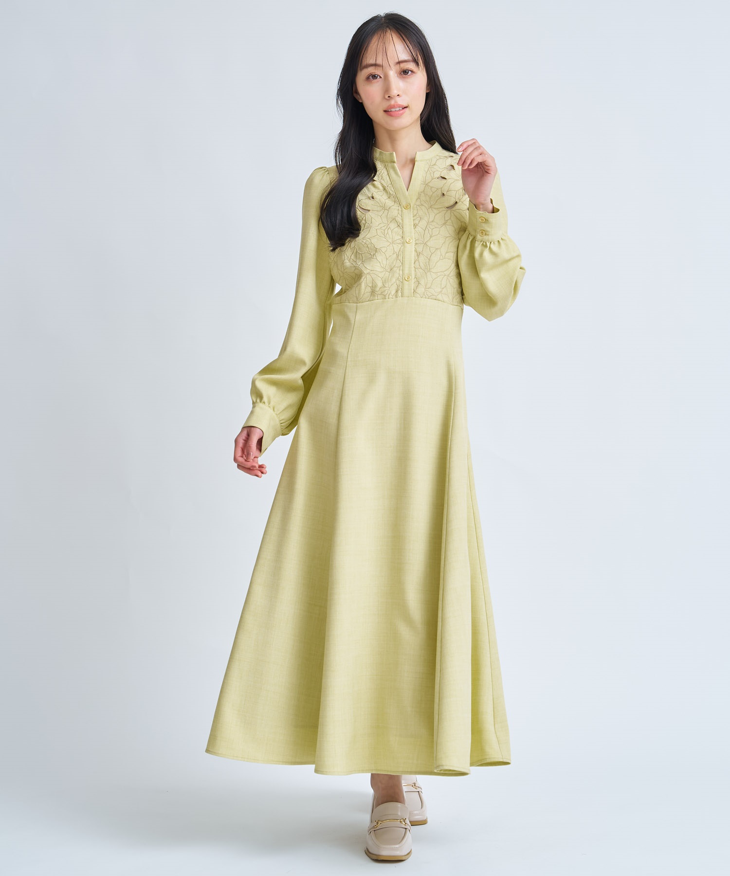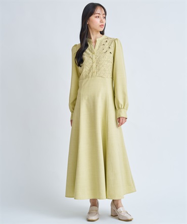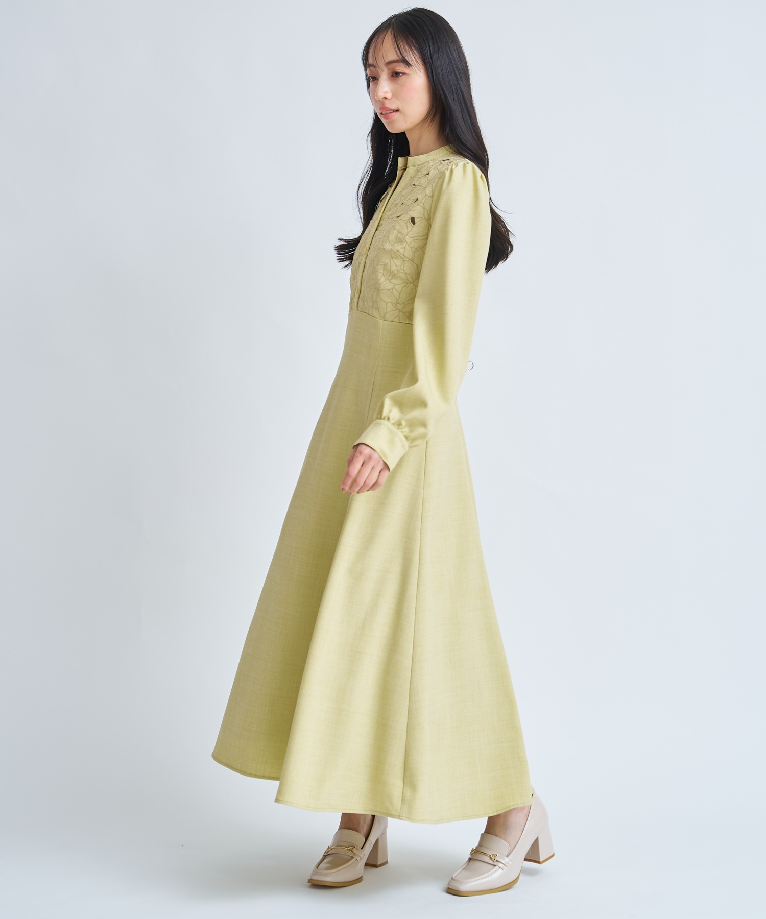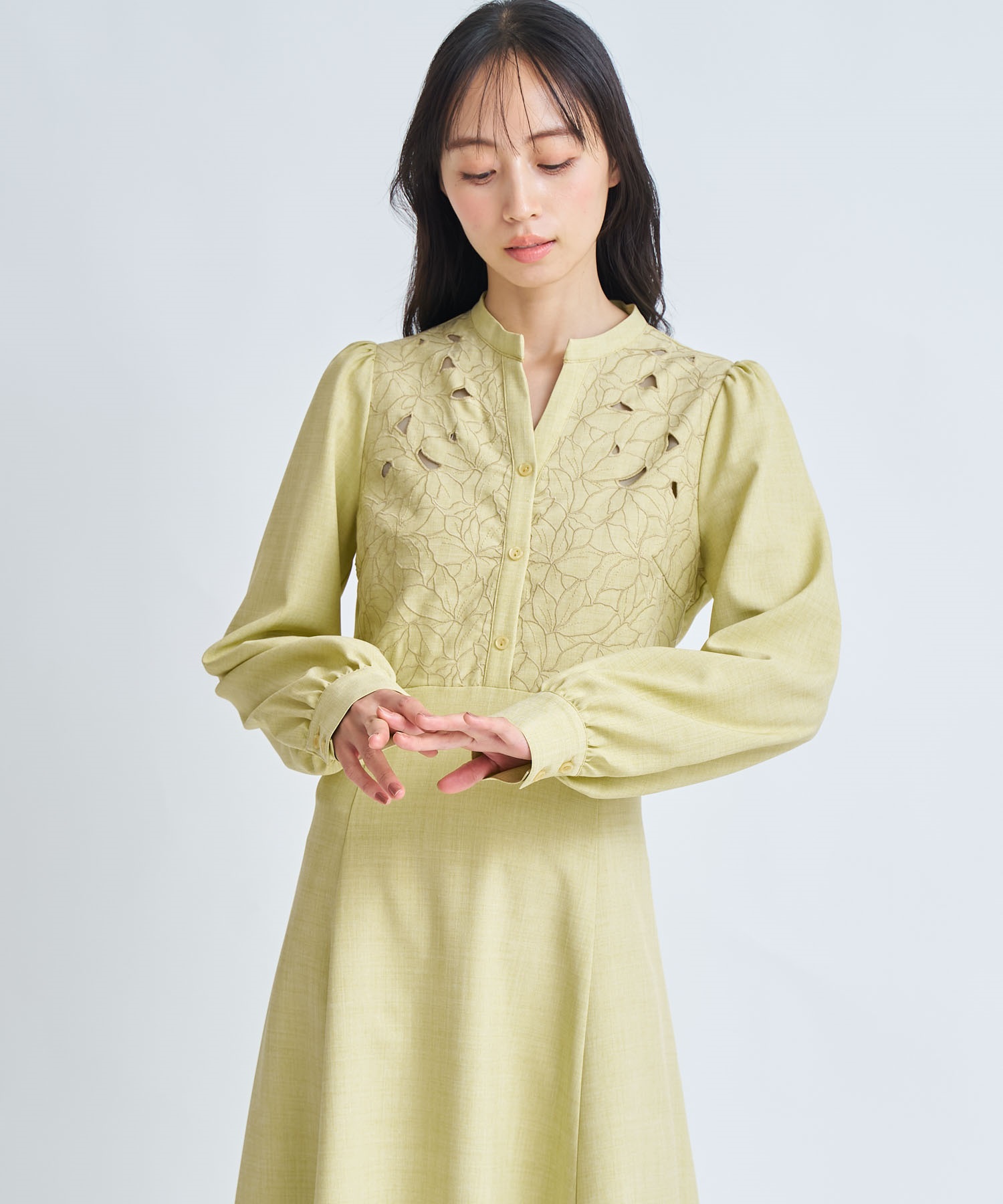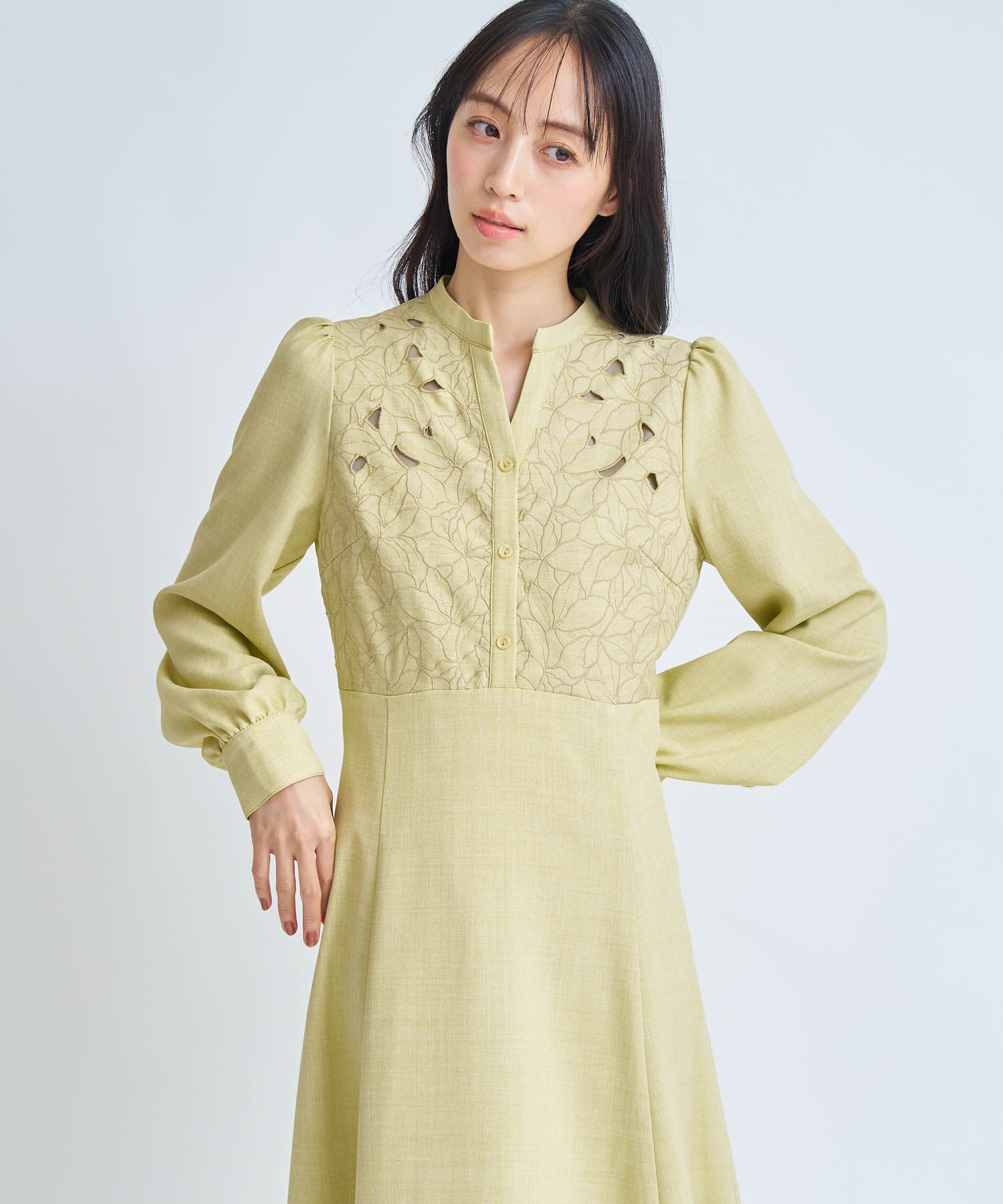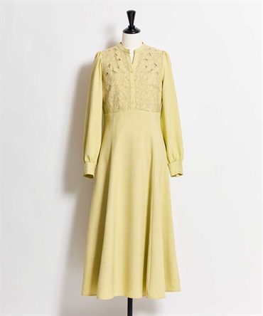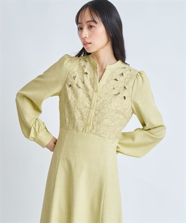 • 【予約】カットワーク刺繍ワンピース(51イエロー-S-2月下旬ごろのお届け)