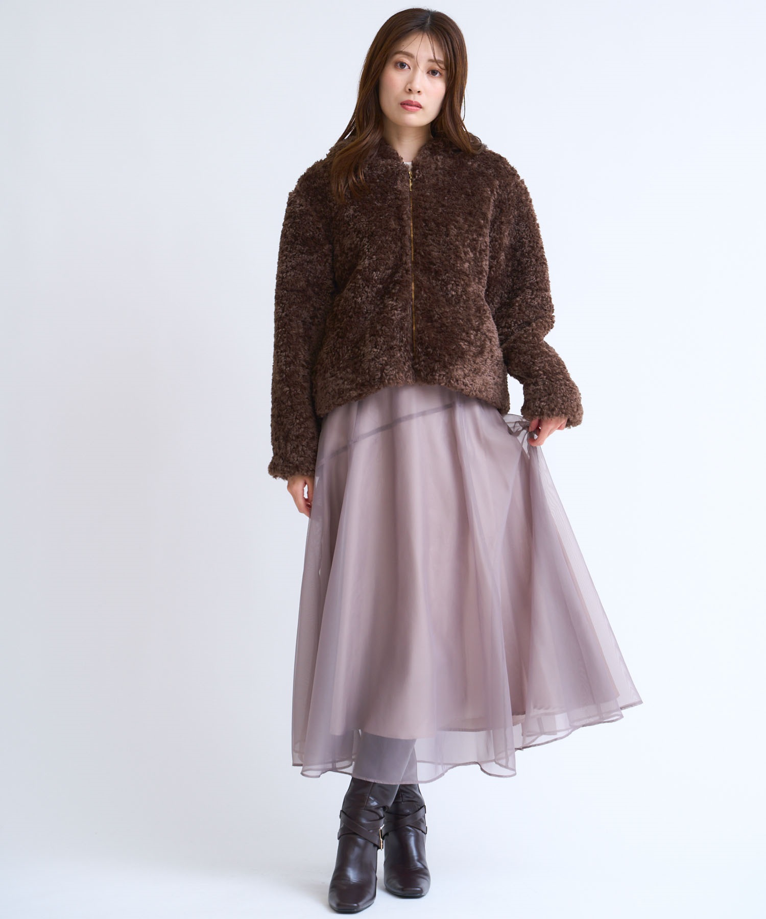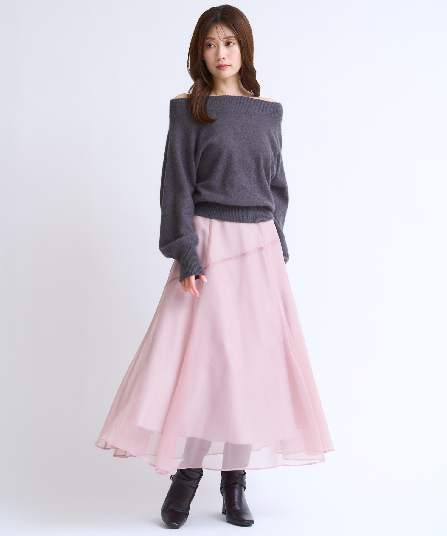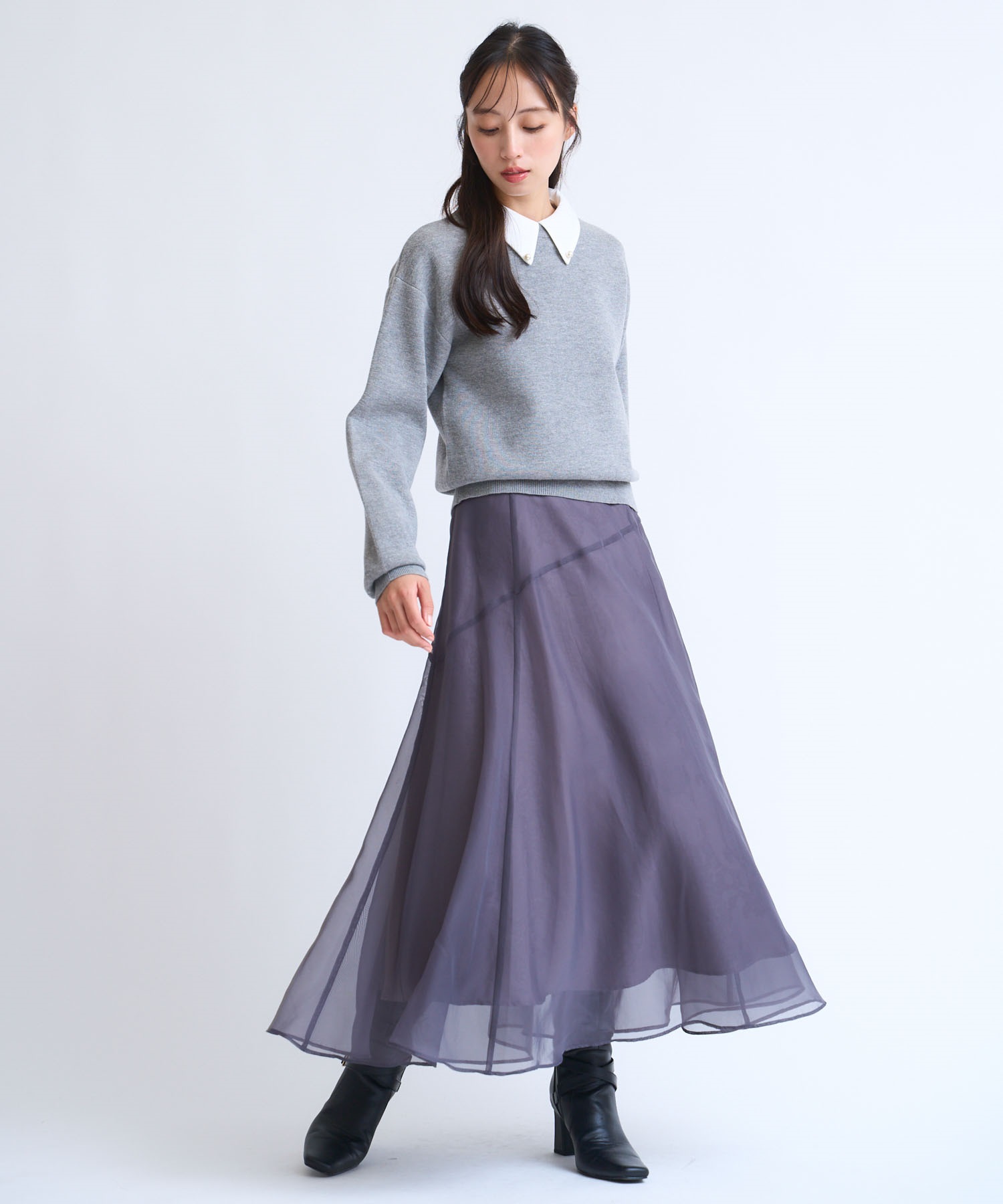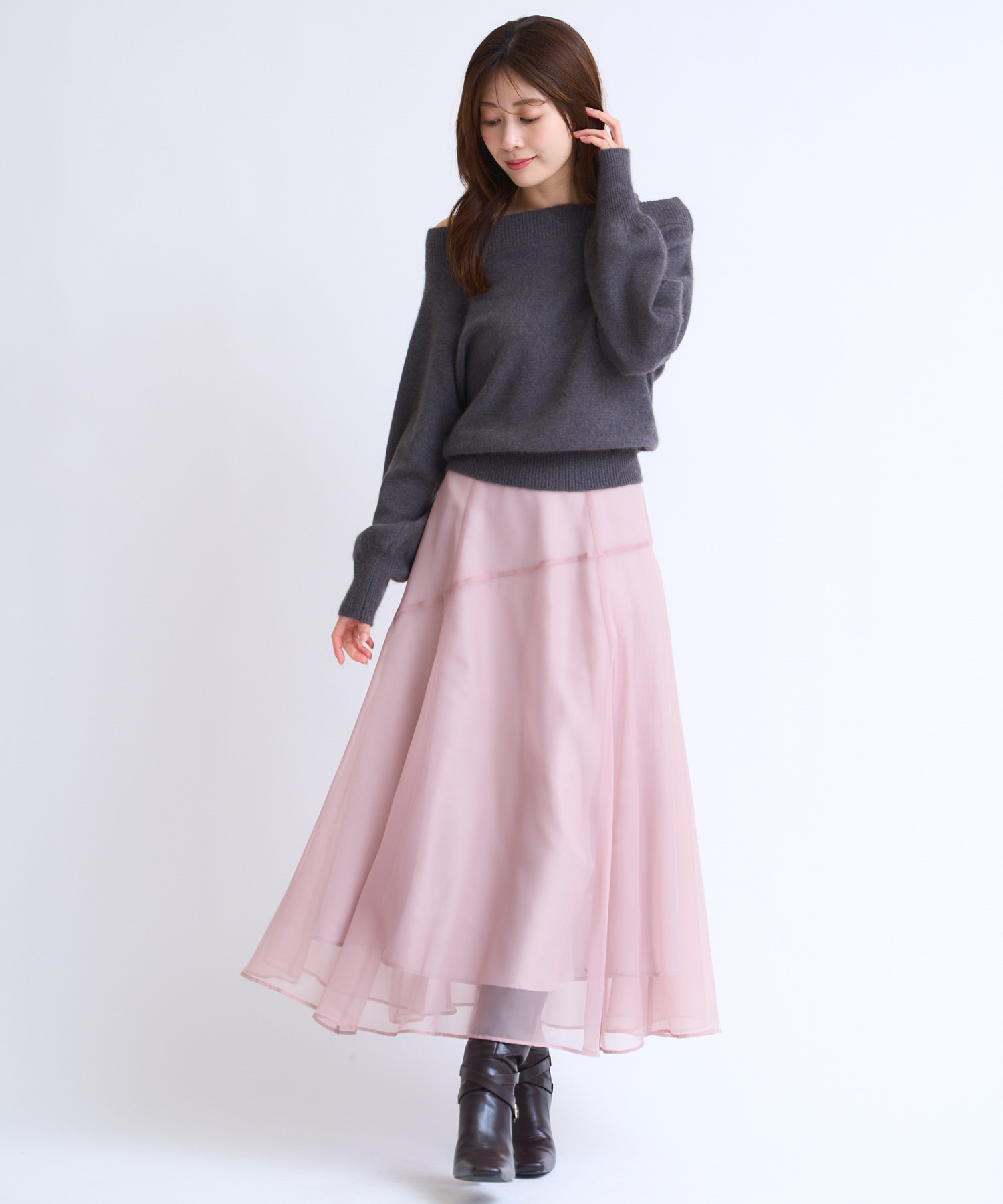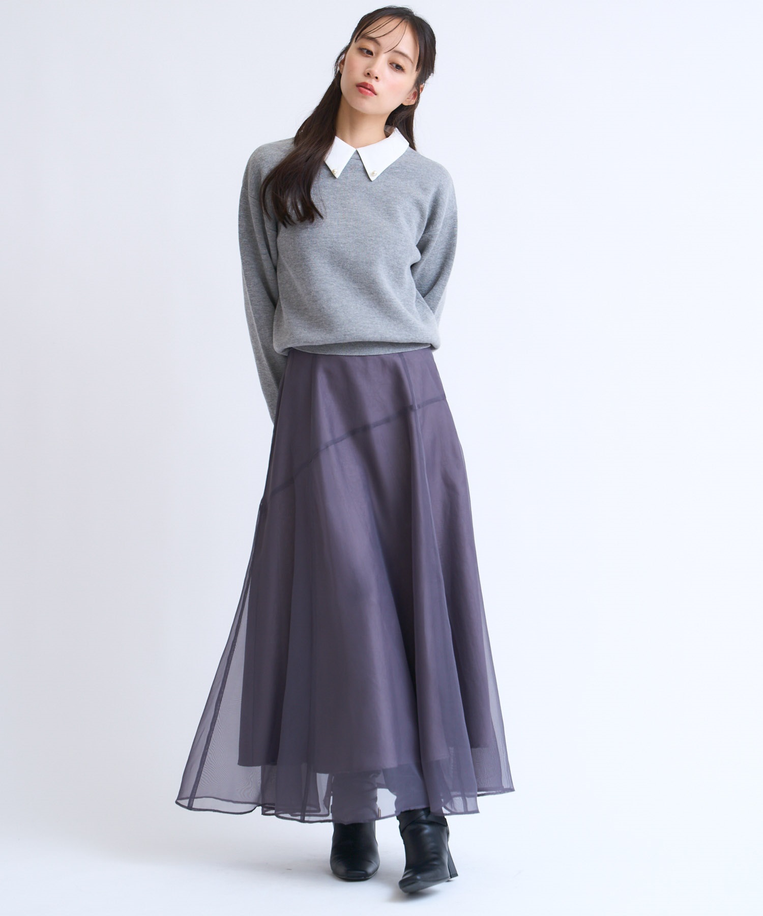 • シアー切り替えフレアスカート(10チャコールグレー-S)