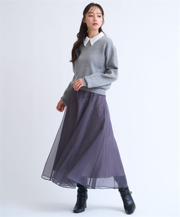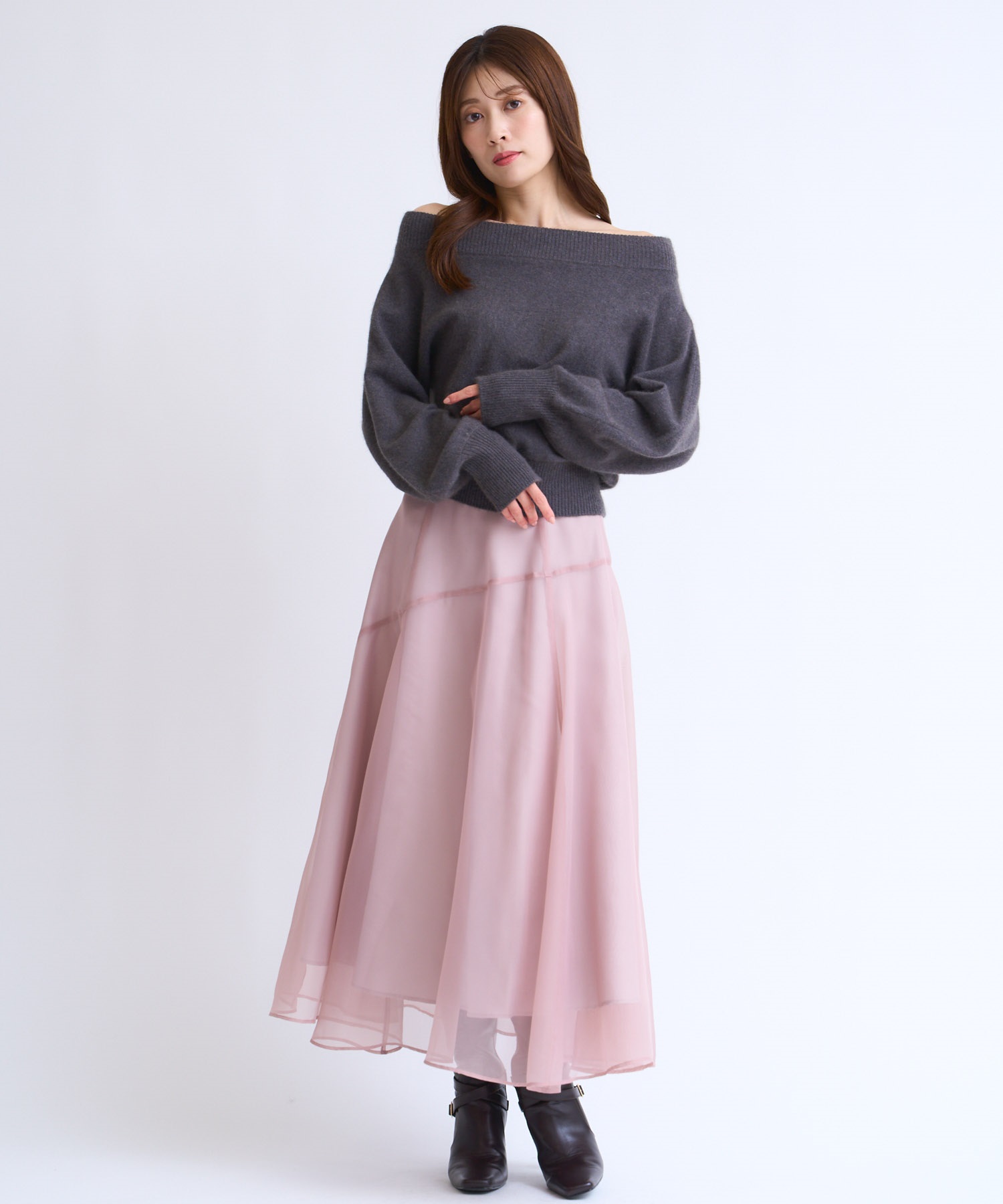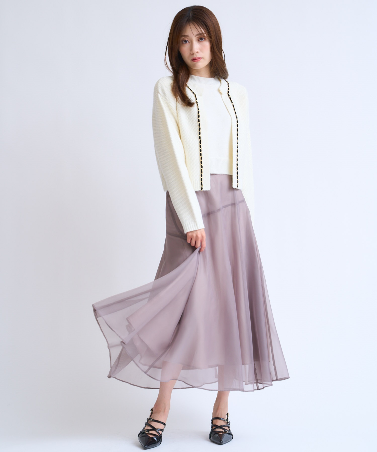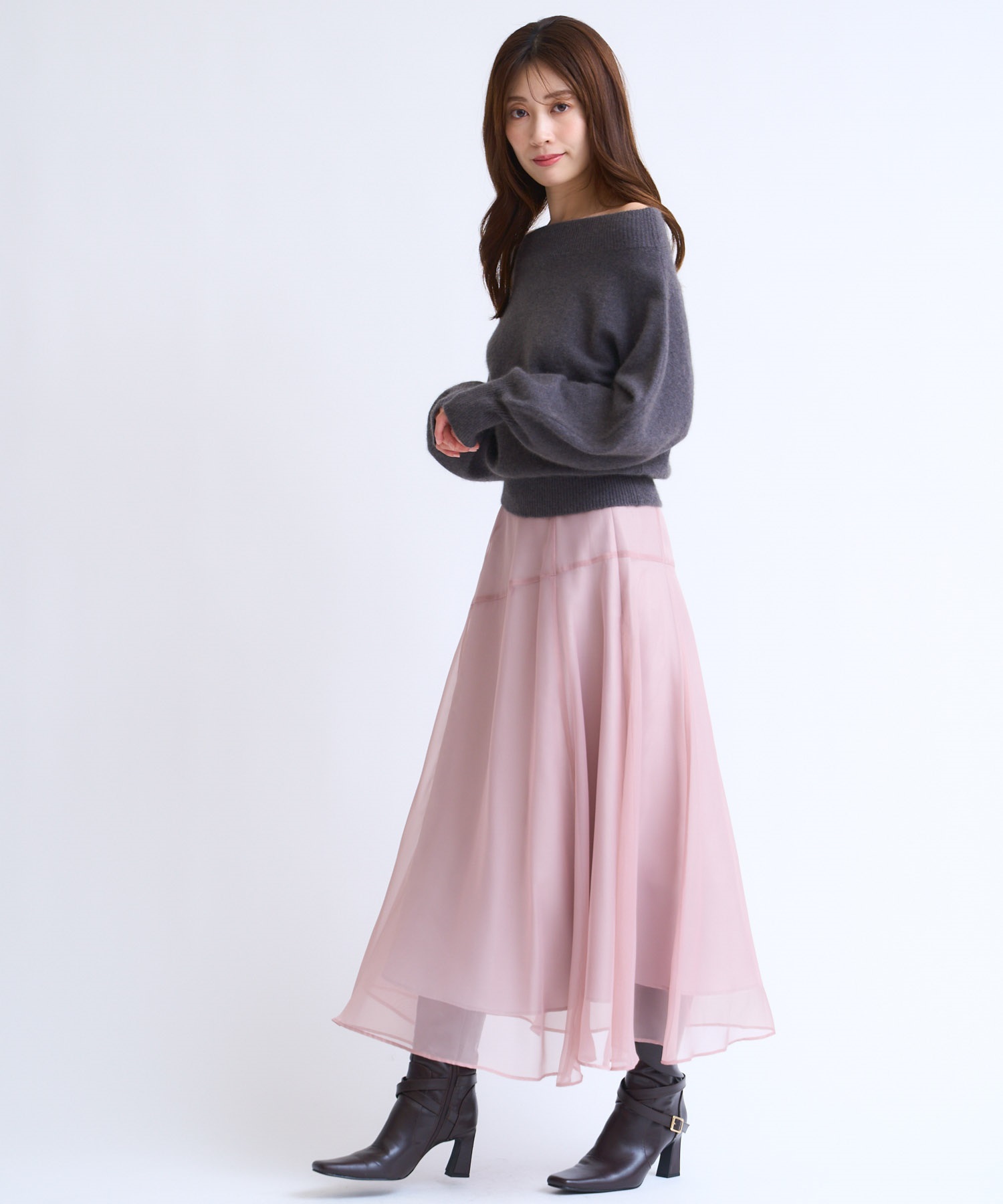 繊細なシアー素材を用い、シルエットにこだわって仕上げたフレアスカート。