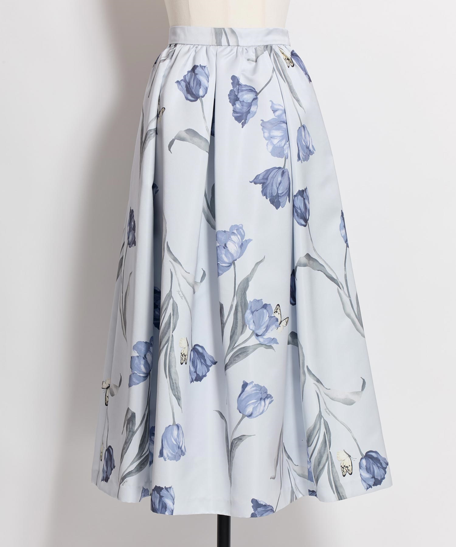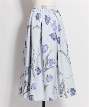 大胆なオリジナル柄をのせたフレアスカートは、トレンド感と女性らしさを兼ね備えた1枚。