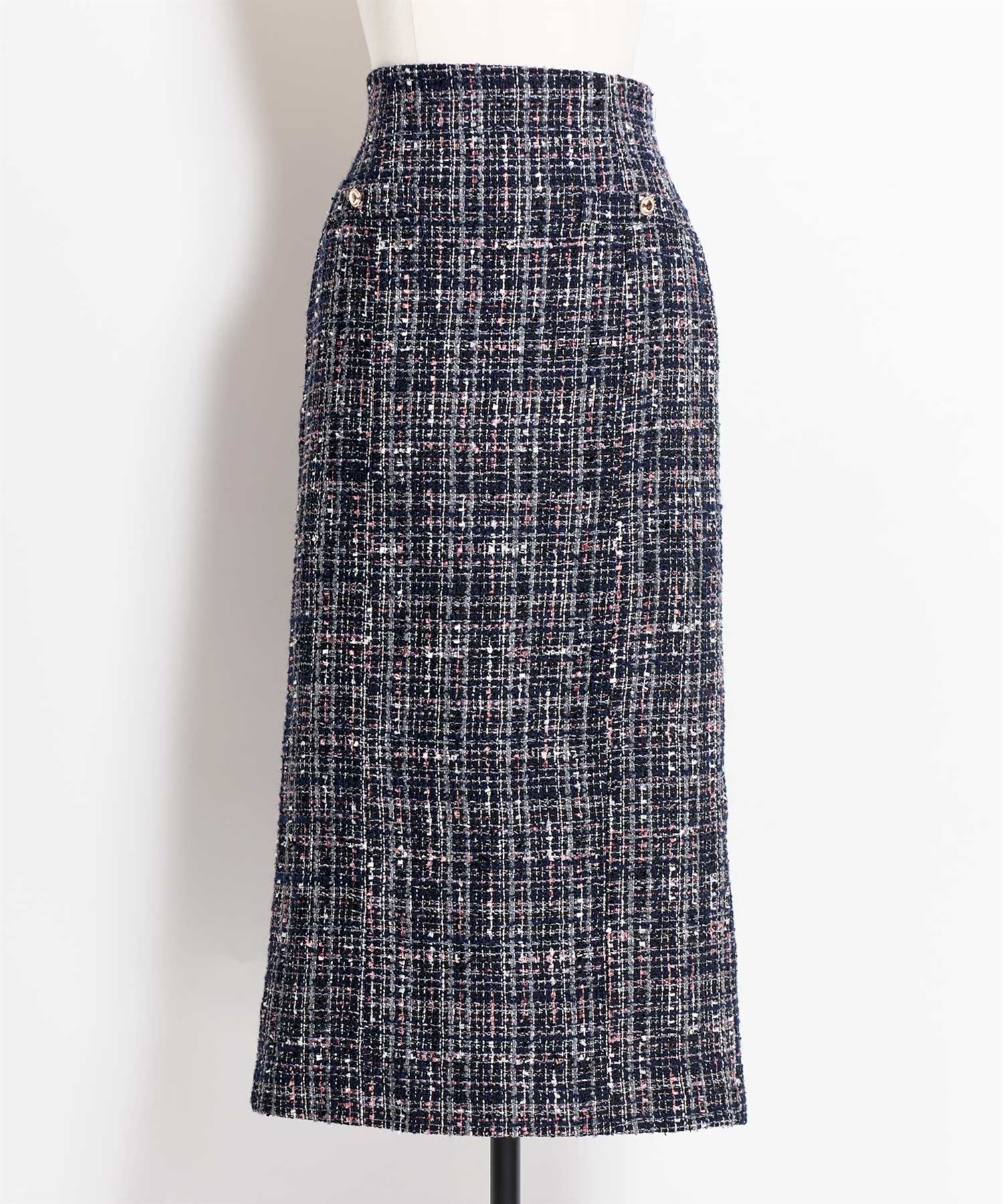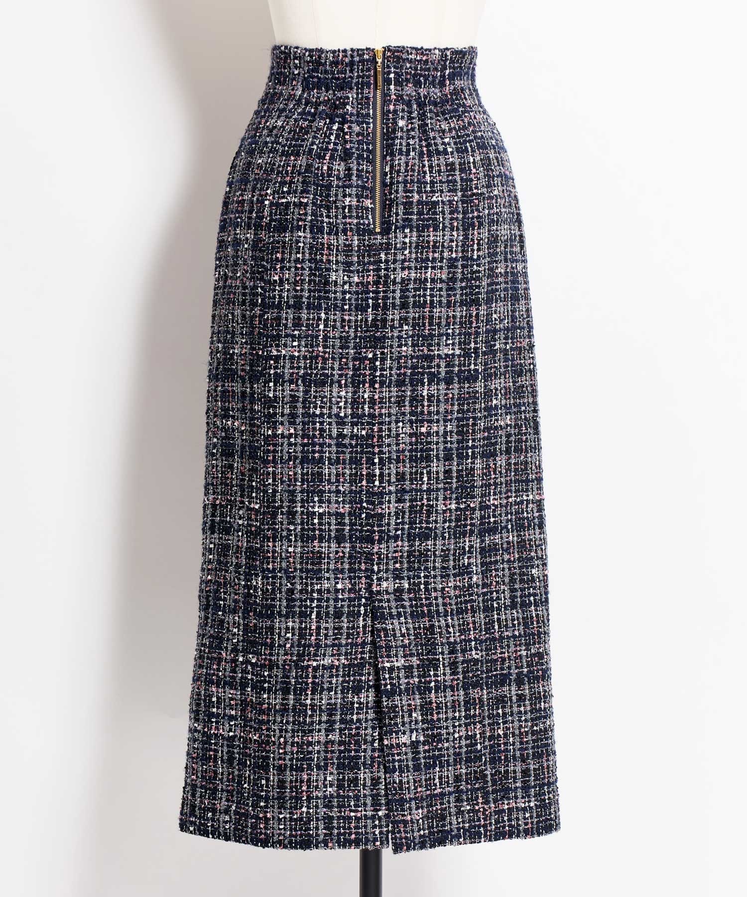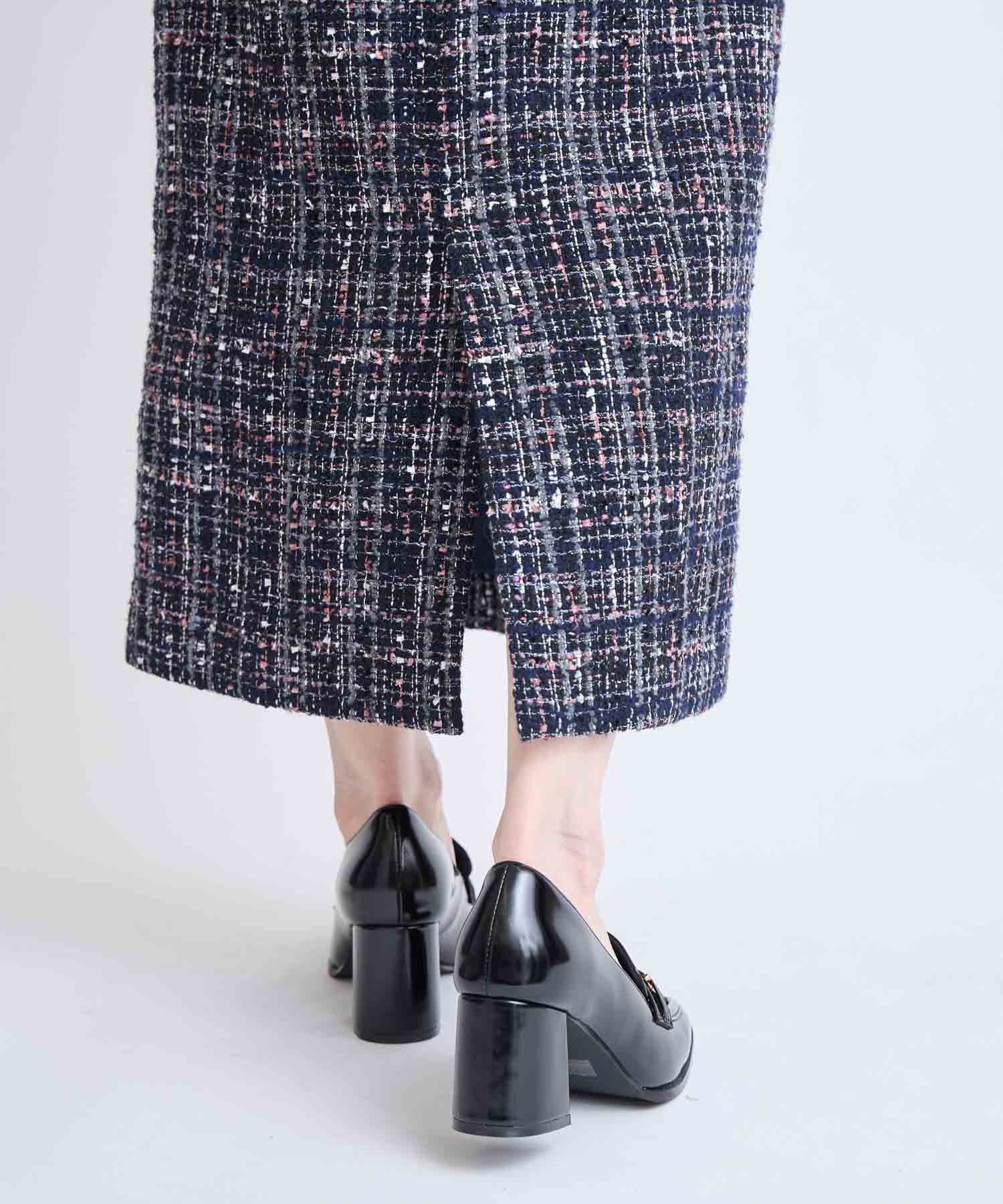 毛織産地・尾州で織り上げた、NOELAオリジナルのツイード素材を使用したタイトスカート。