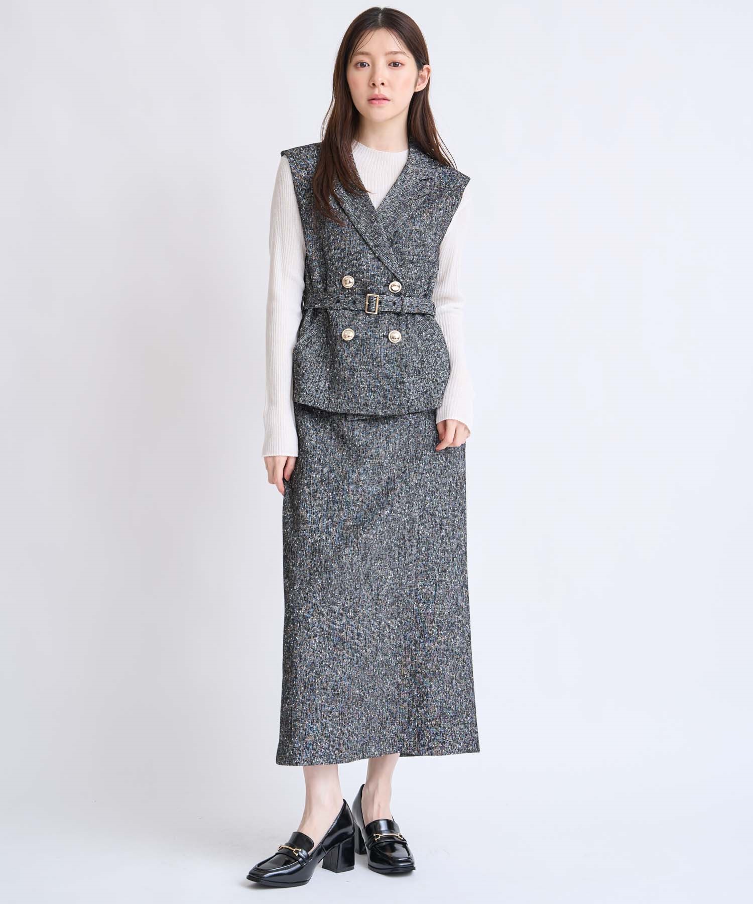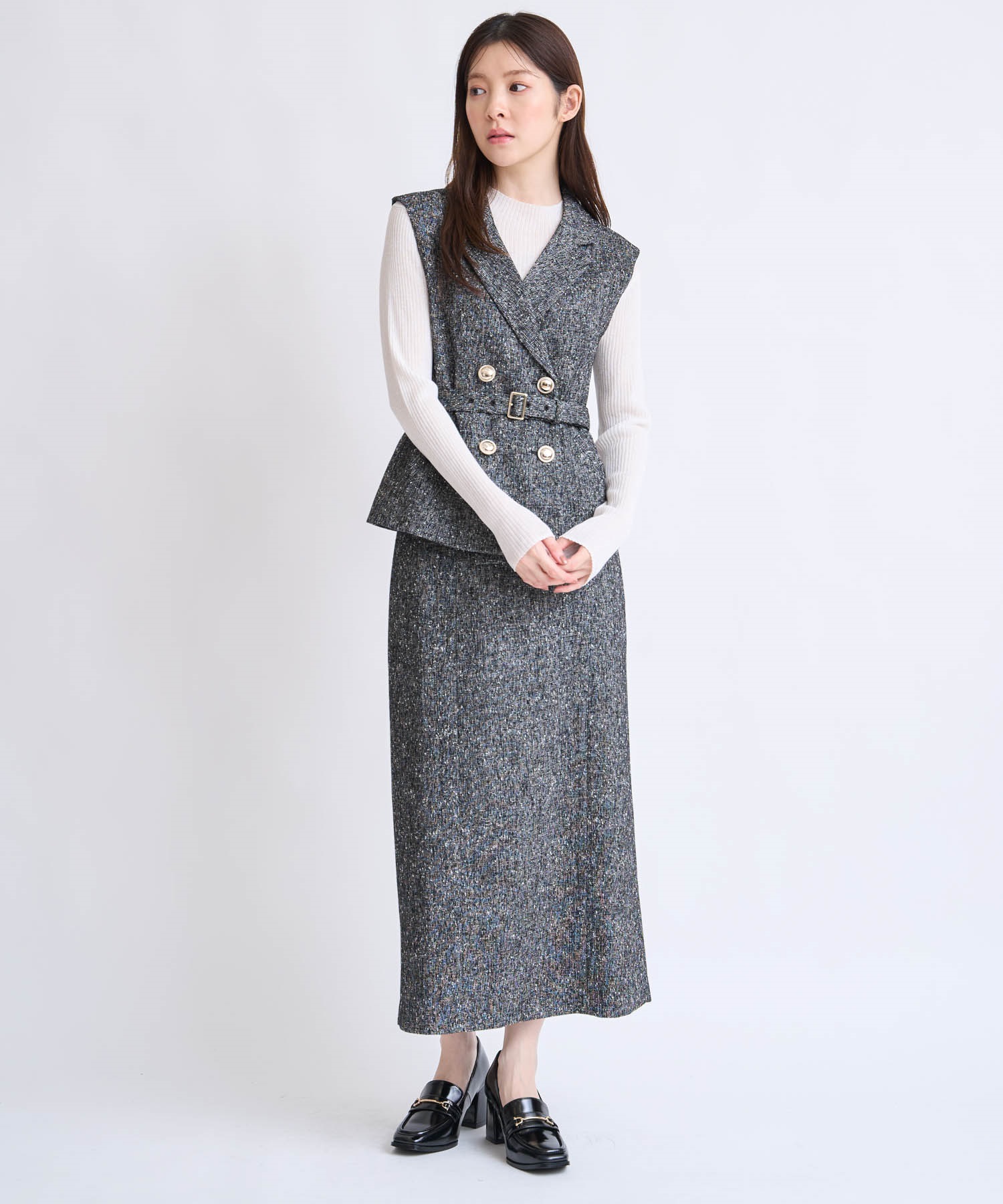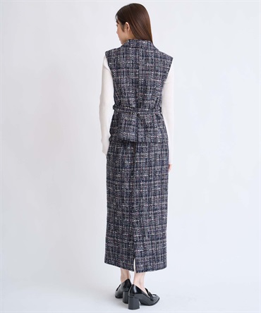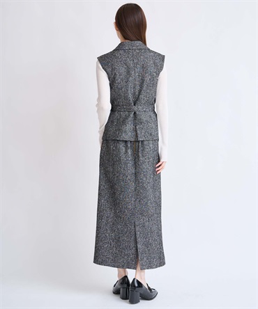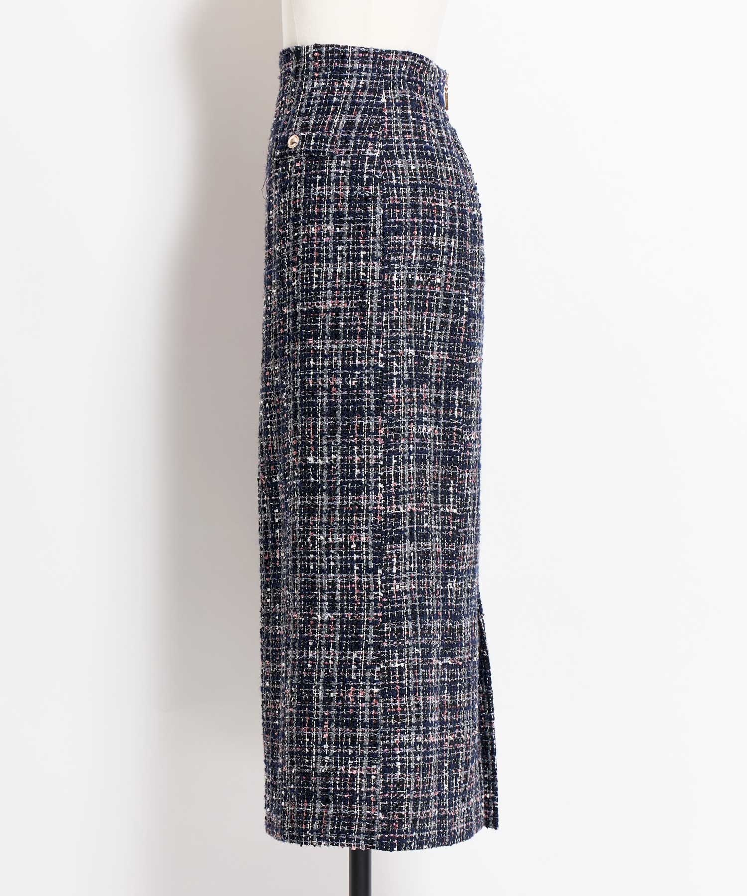 毛織産地・尾州で織り上げた、NOELAオリジナルのツイード素材を使用したタイトスカート。