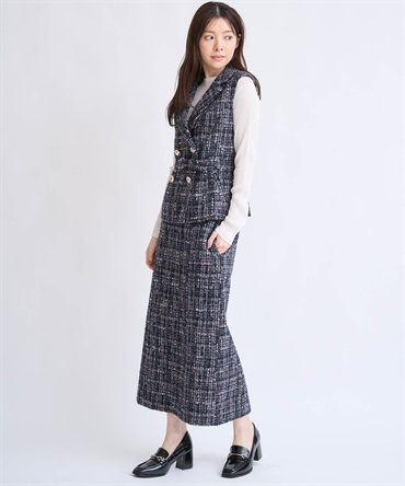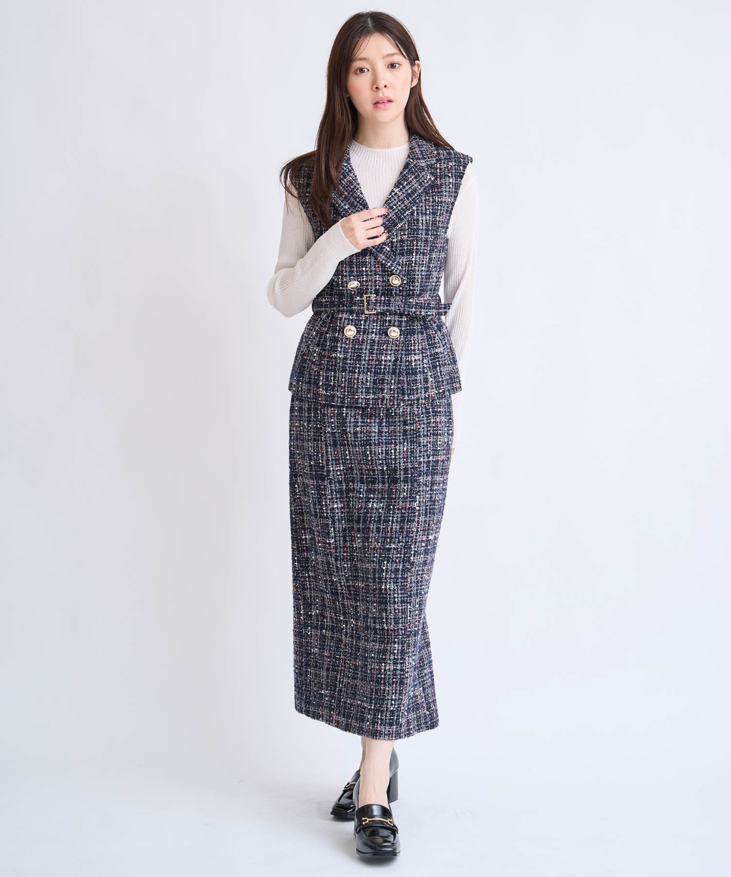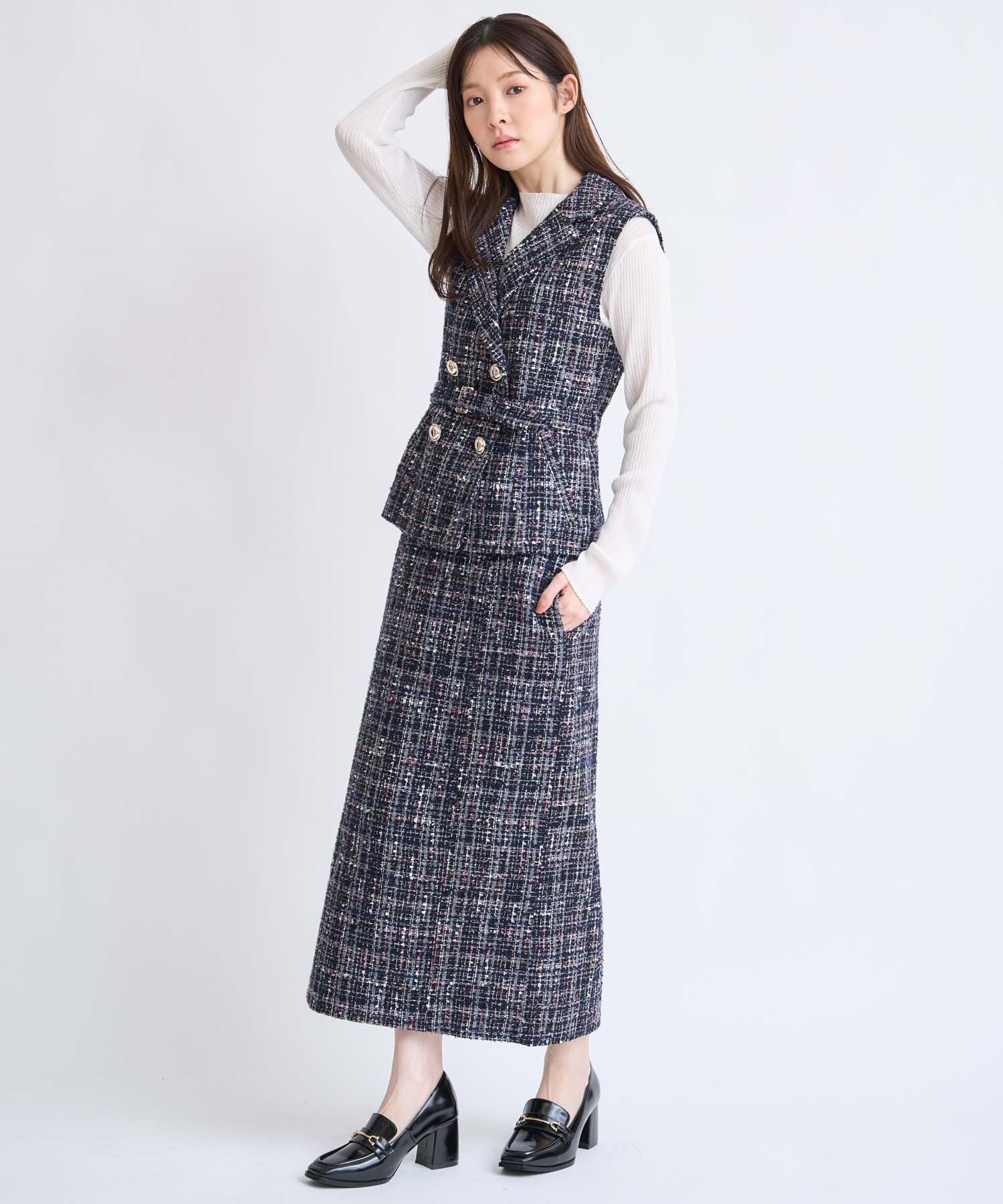 • 【予約】ツイードナロースカート(70ネイビー-S-2月下旬ごろのお届け)