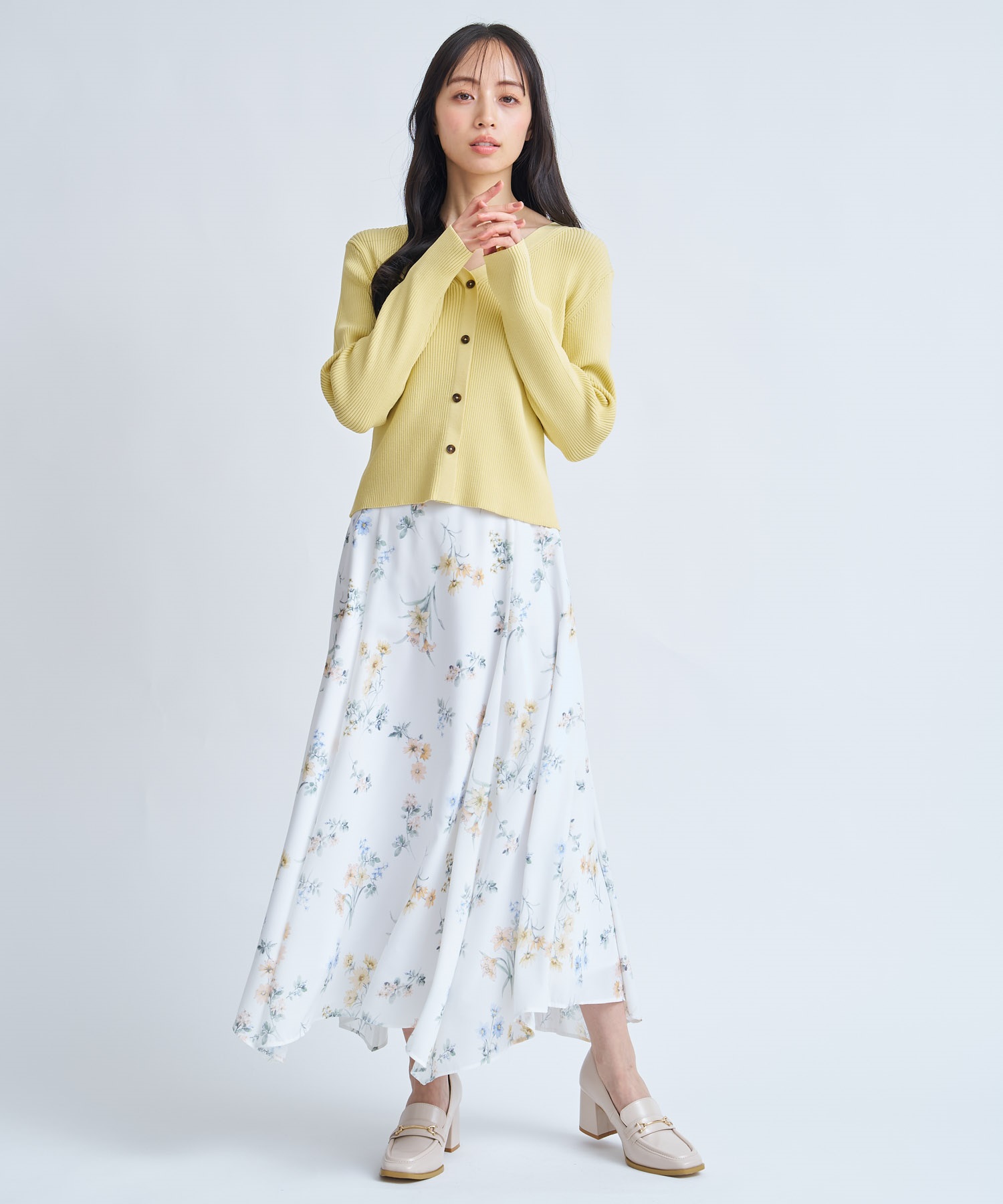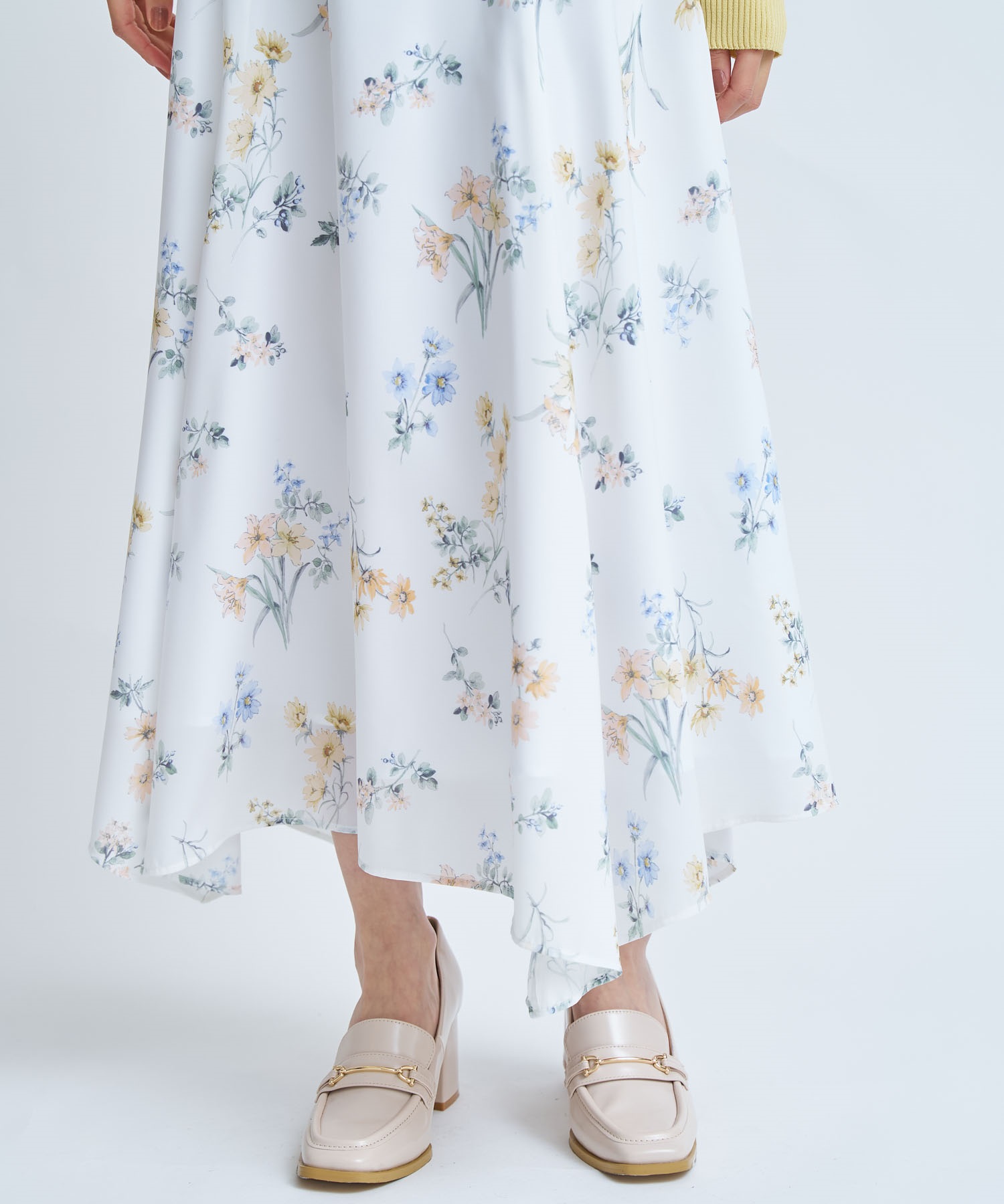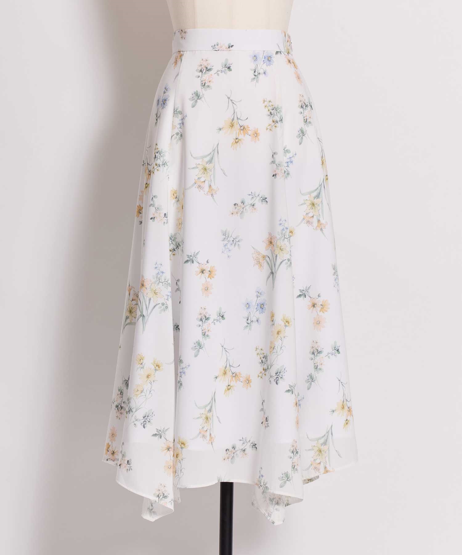 • 【予約】花柄イレヘムフレアスカート(01オフホワイト-S-3月下旬ごろのお届け)