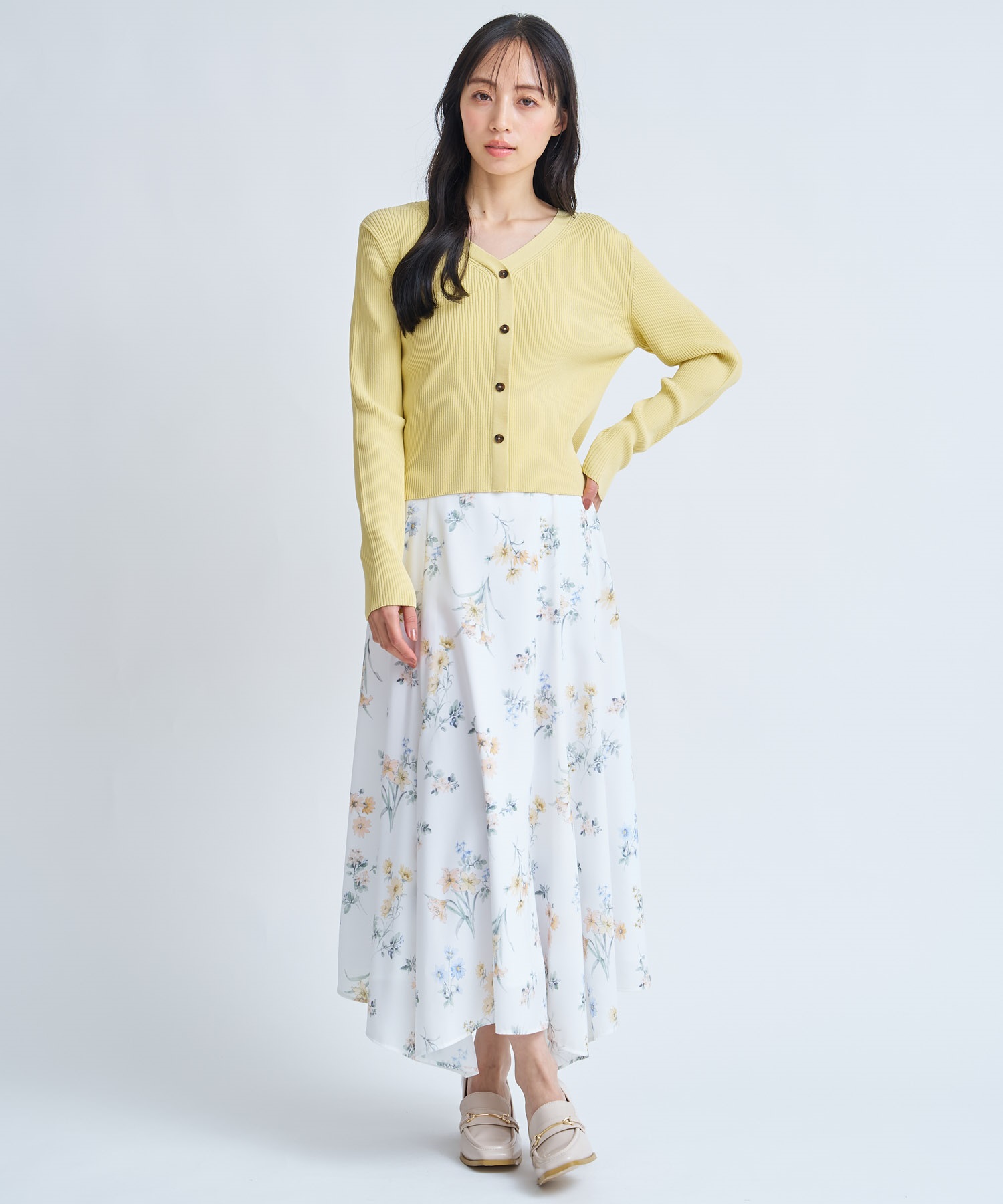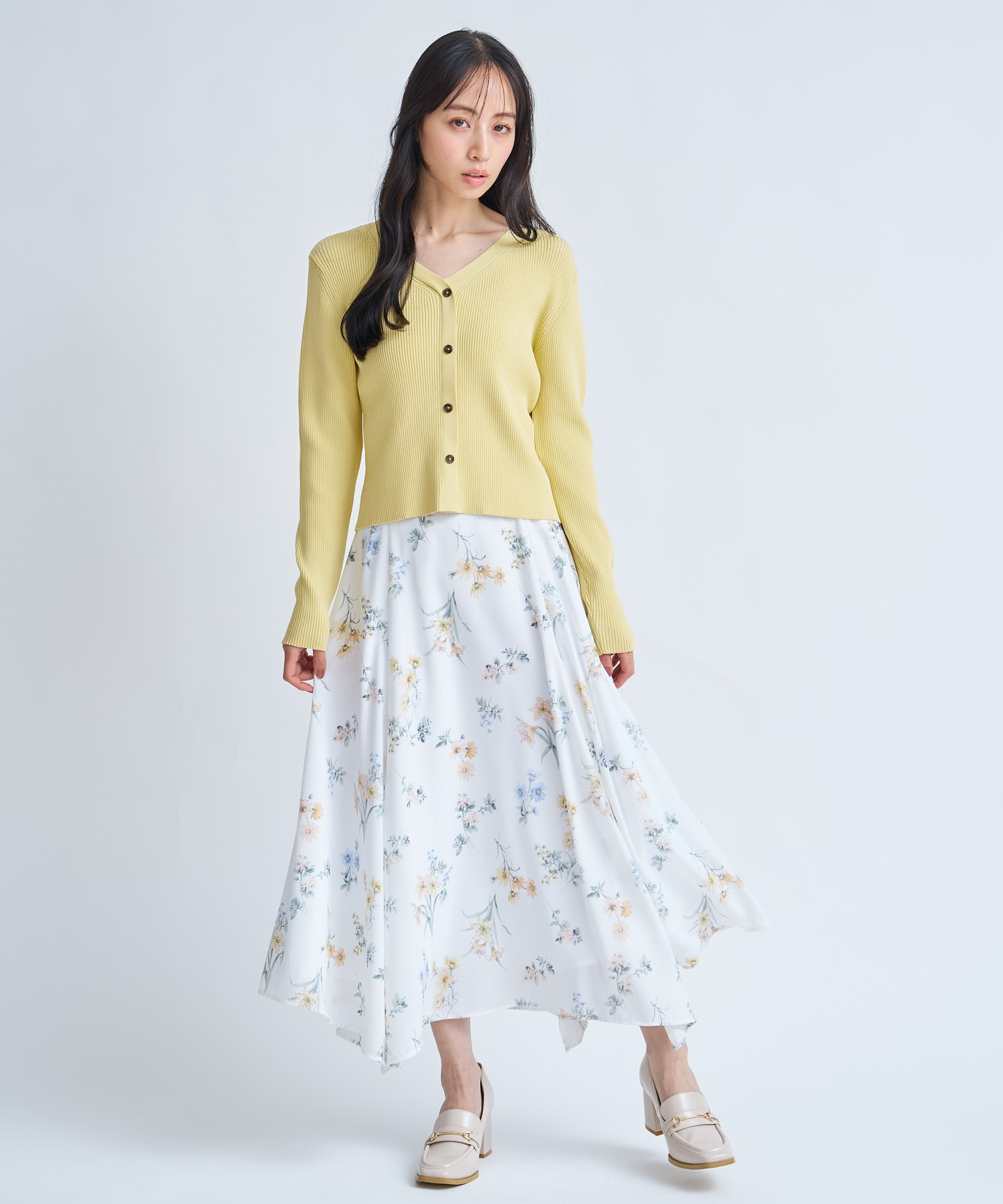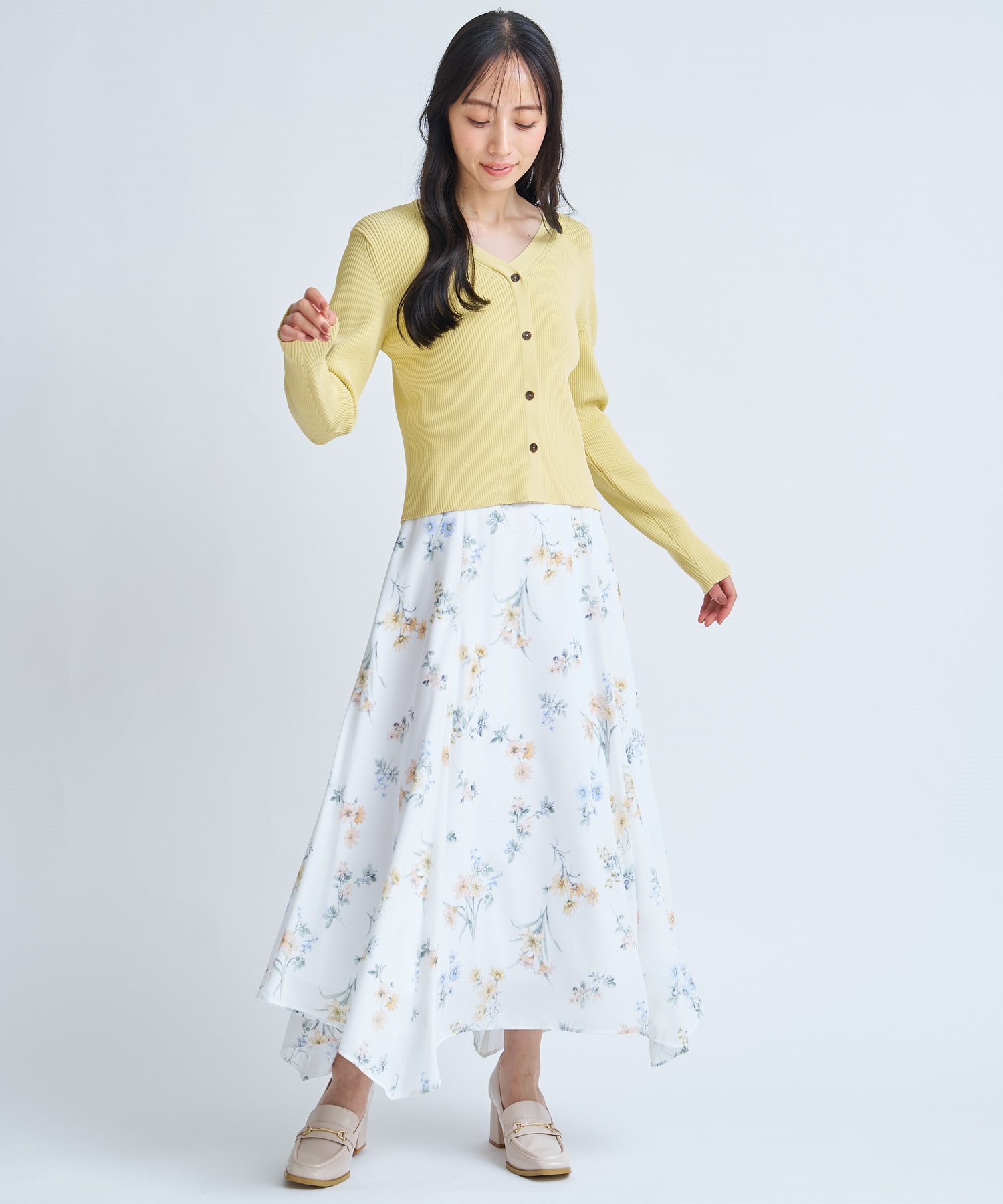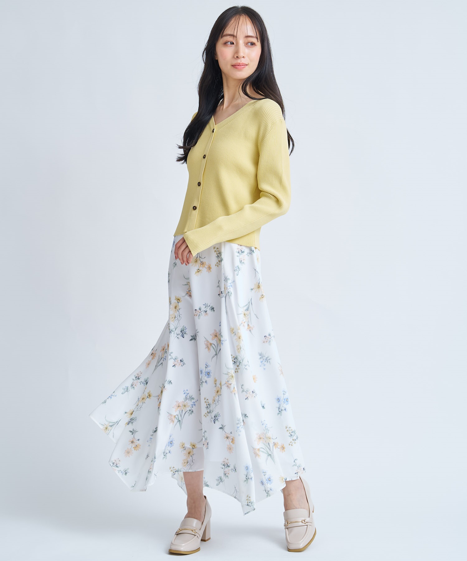 • 【予約】花柄イレヘムフレアスカート(01オフホワイト-S-3月下旬ごろのお届け)