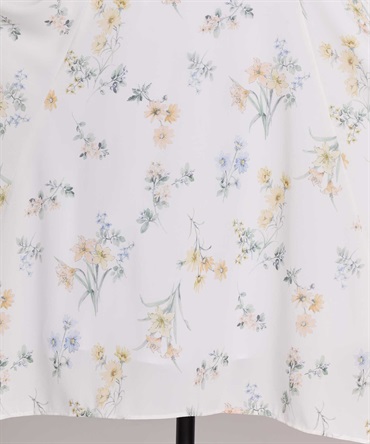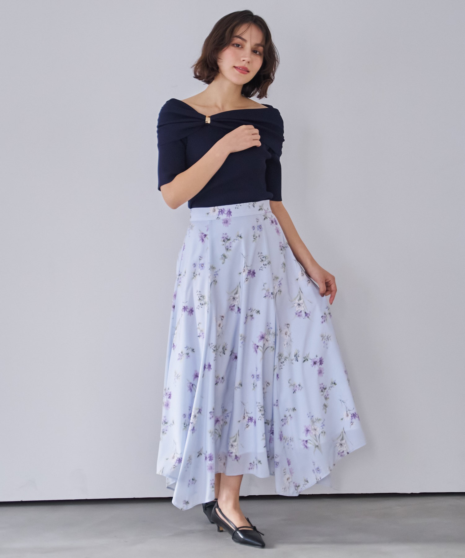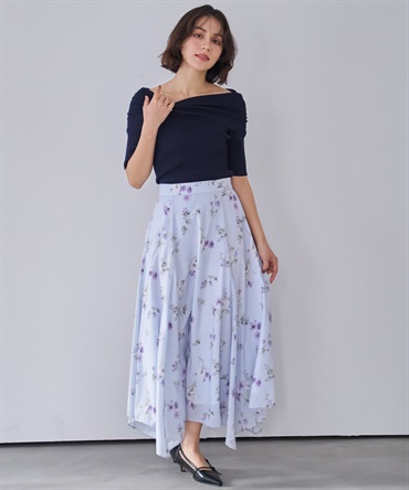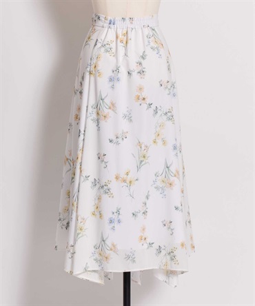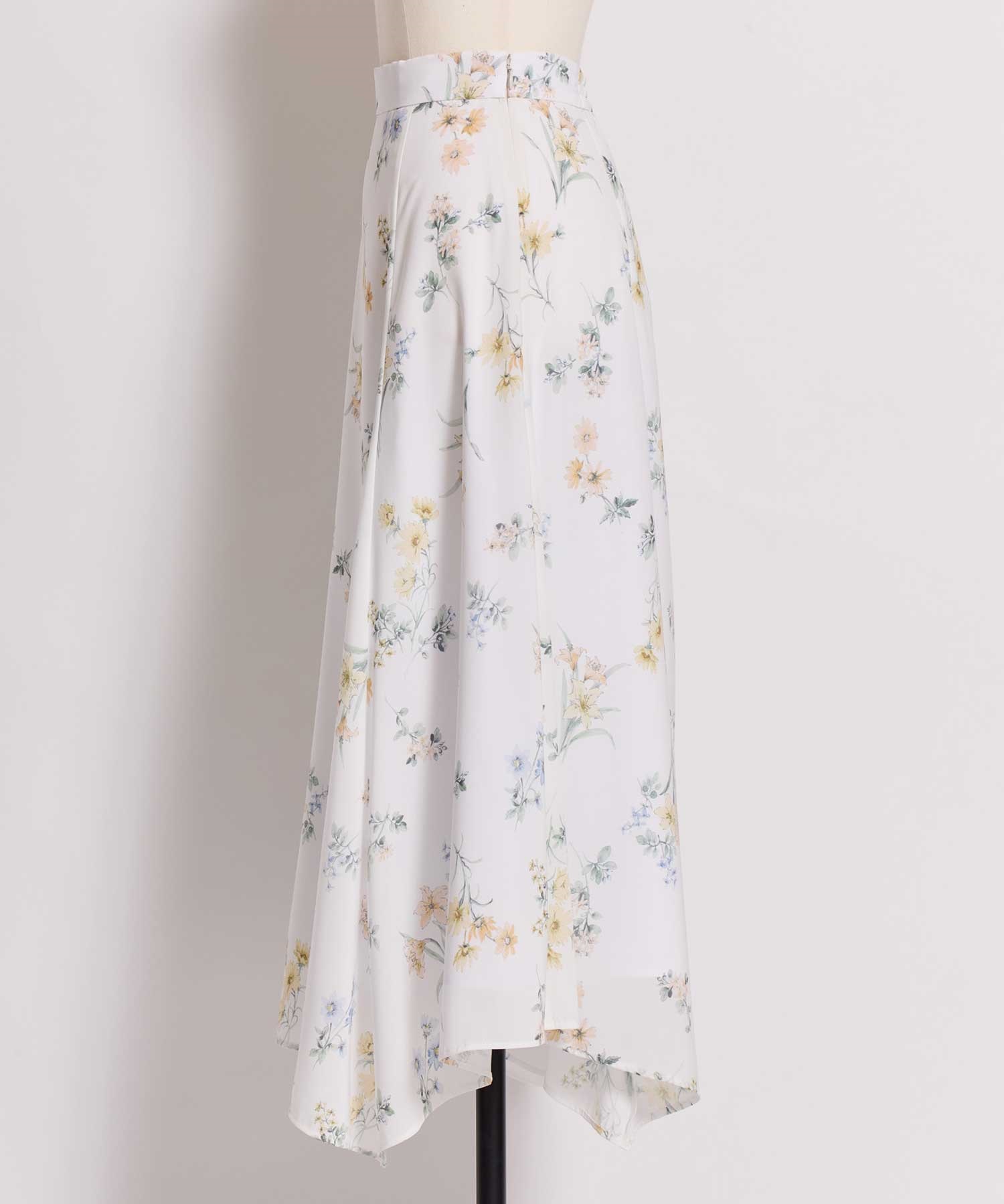 イレヘムデザインが印象的な花柄シアーフレアスカート。