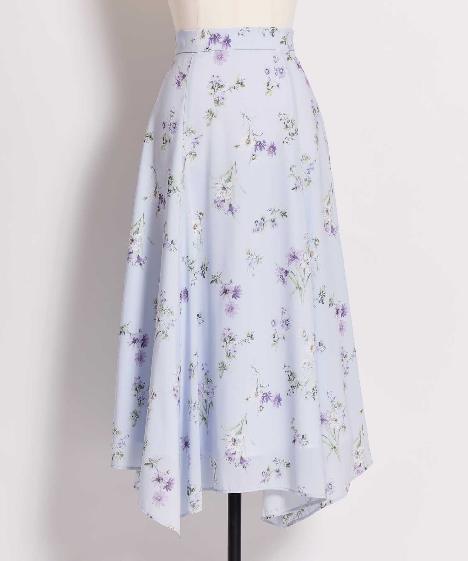 • 【予約】花柄イレヘムフレアスカート(72サックス-S-3月下旬ごろのお届け)