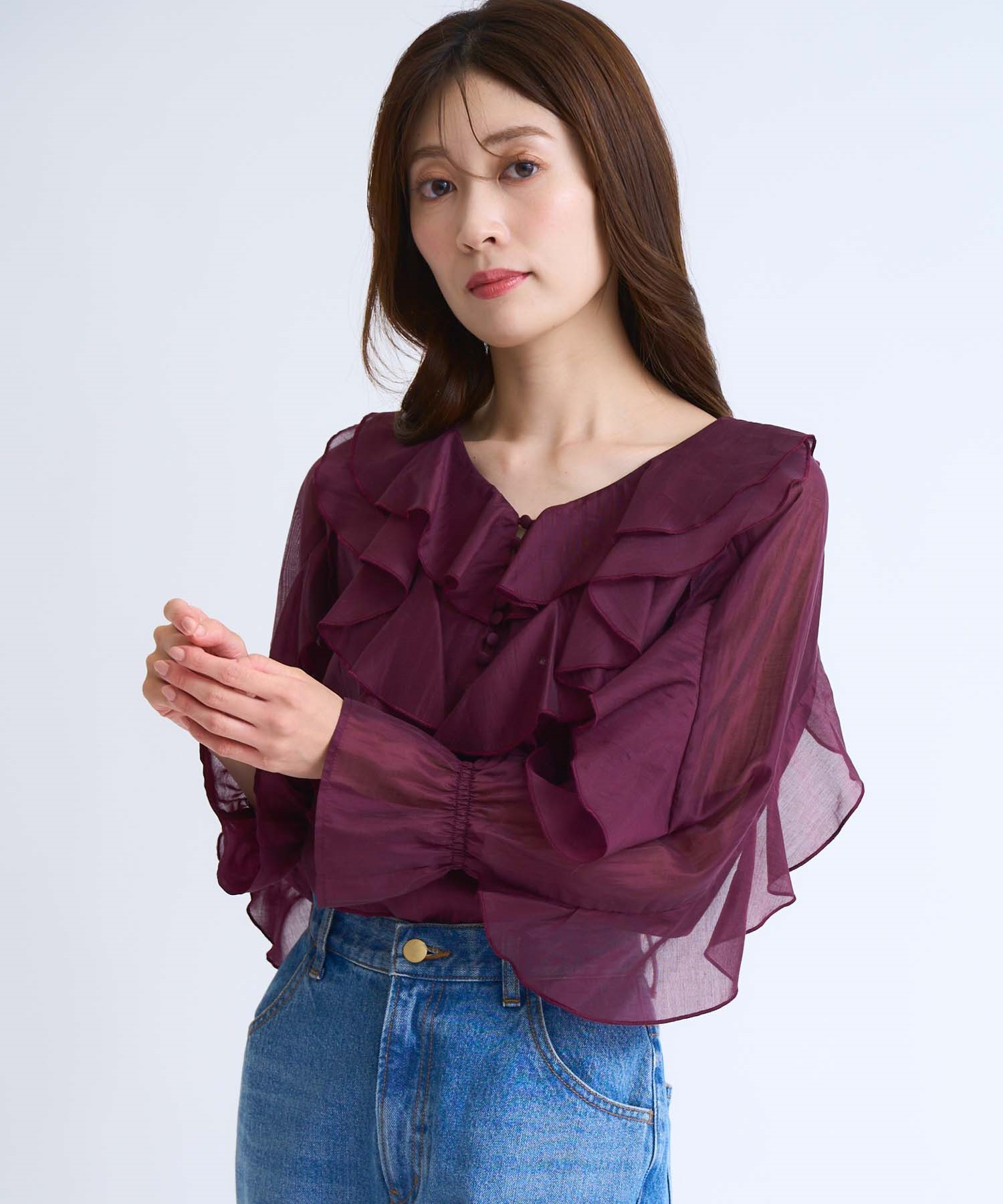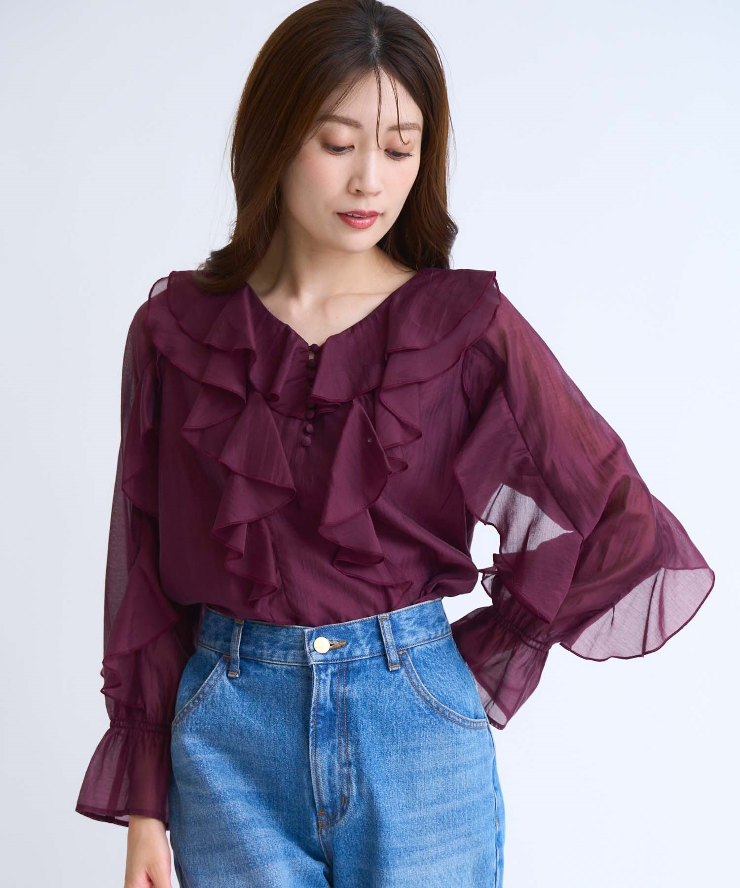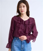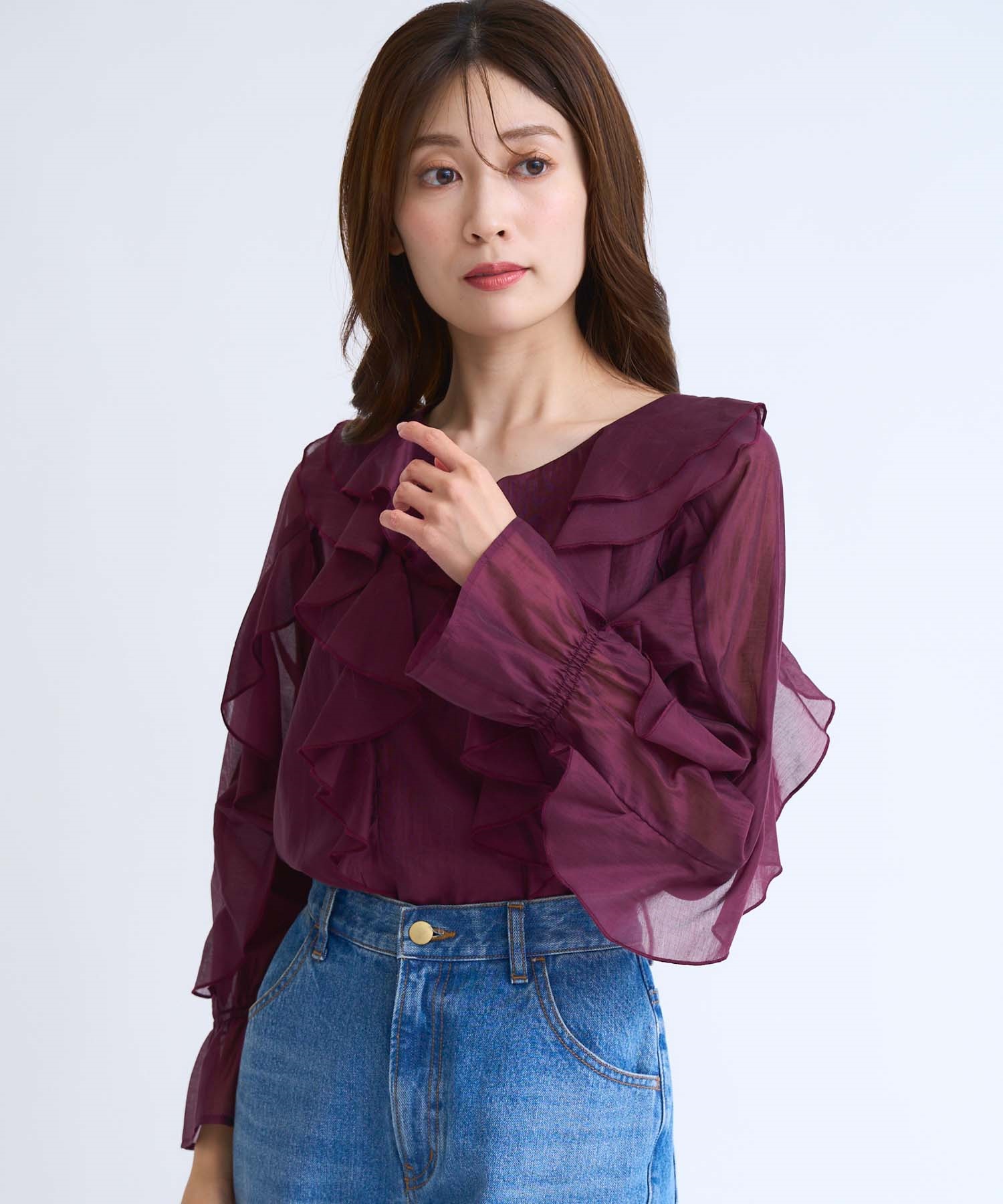 • ラッフルフリルブラウス(35ボルドー-フリー)