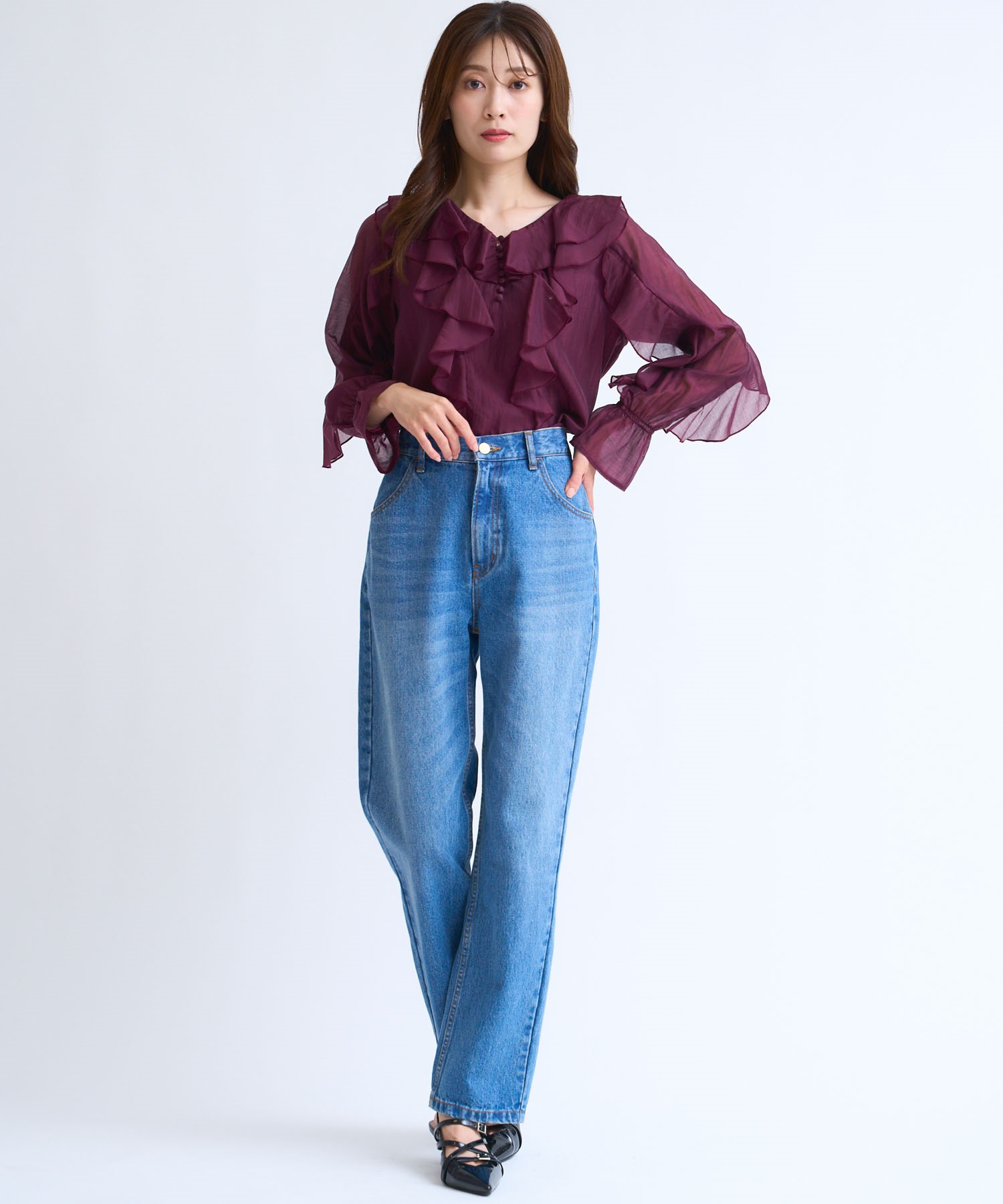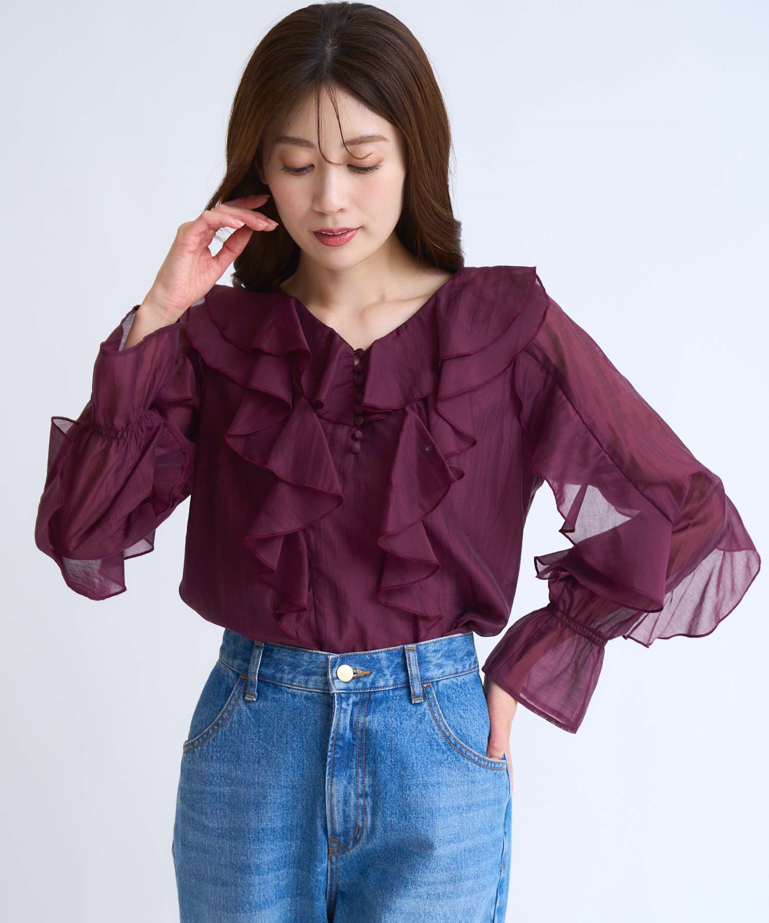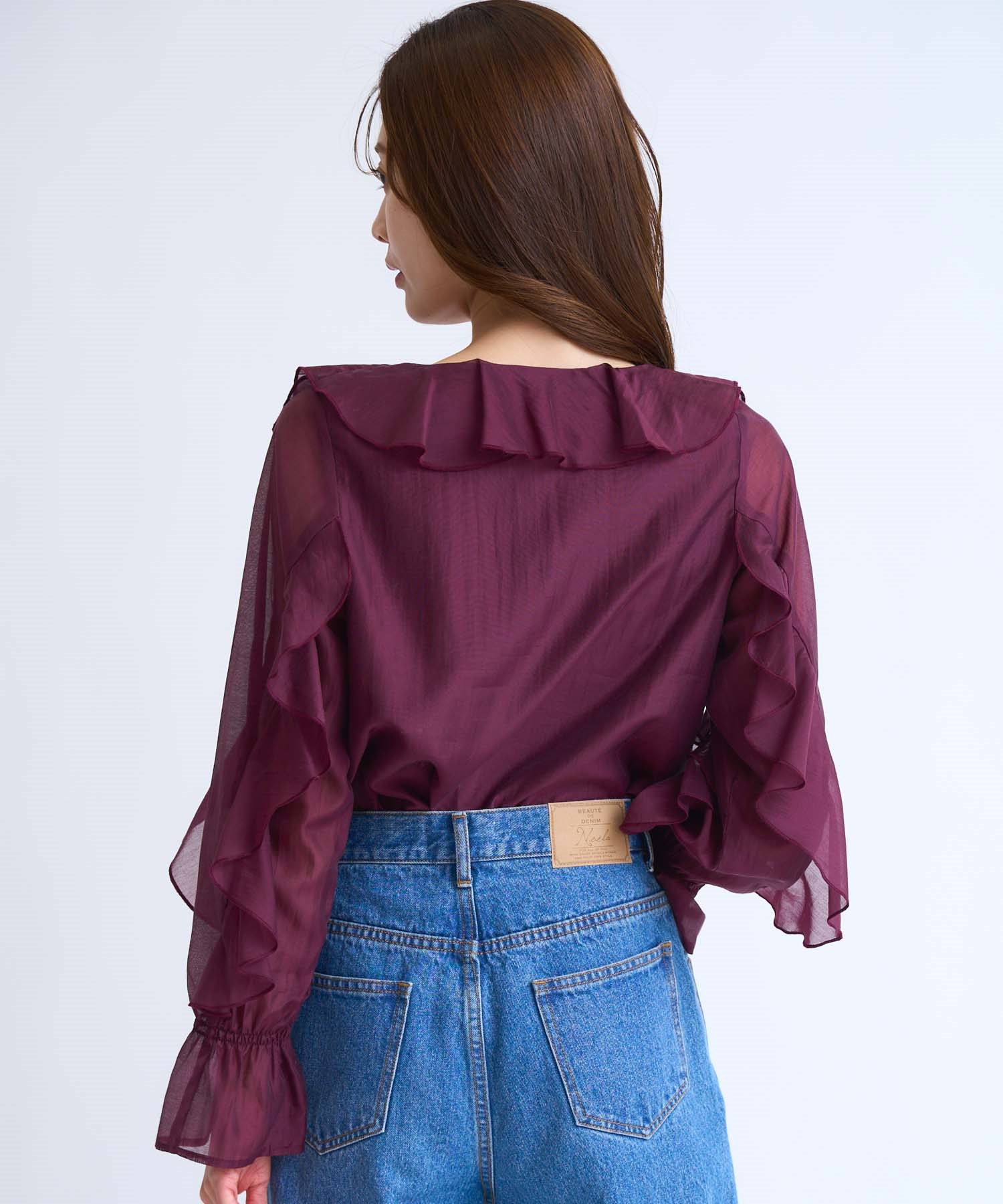 • ラッフルフリルブラウス(35ボルドー-フリー)