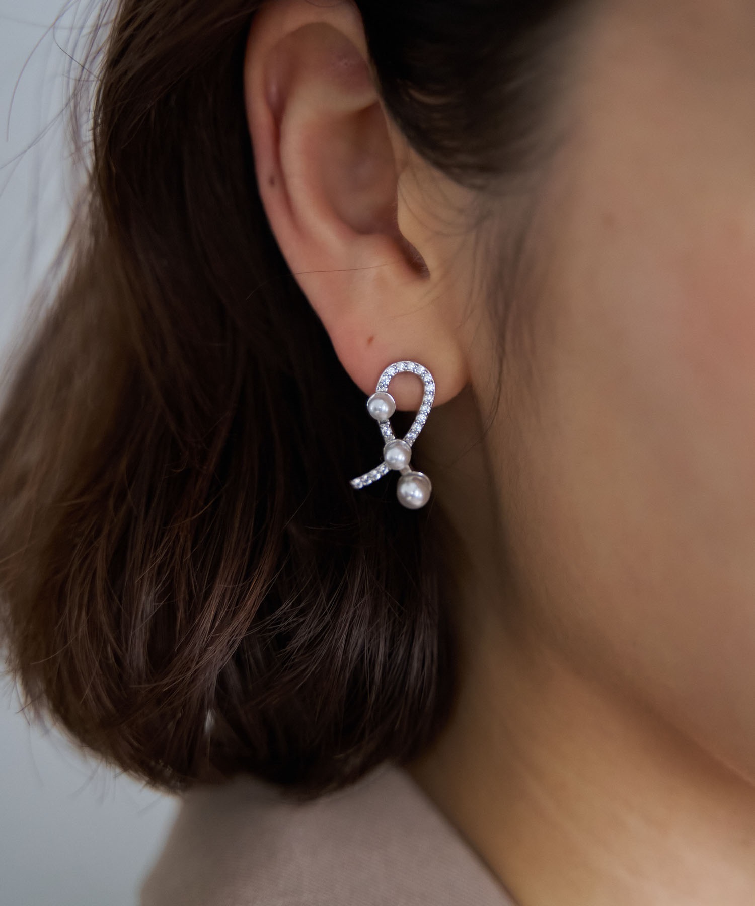 流れるフォルムが耳元に動きを与え、さりげなく女性らしさを引き立てます。