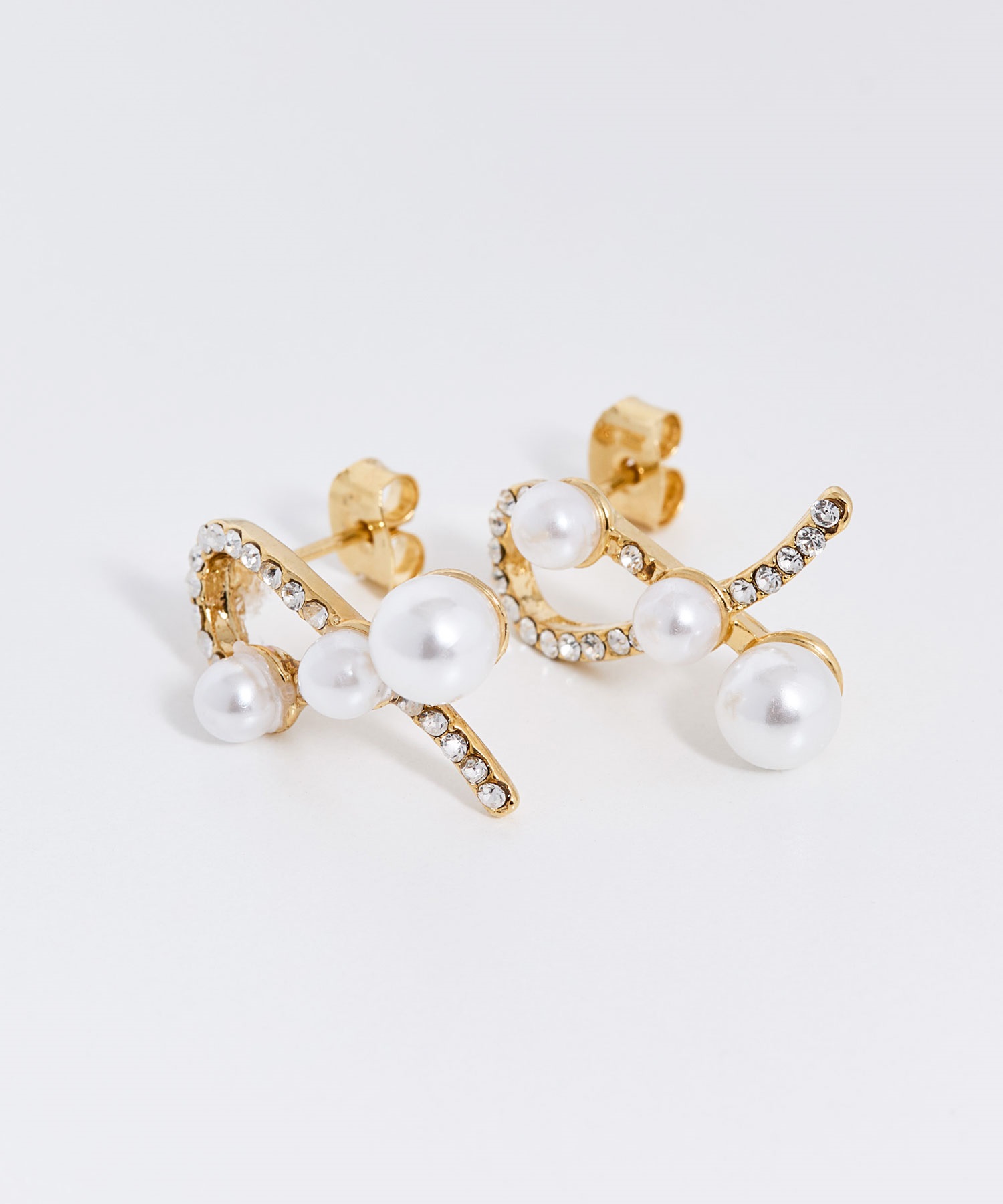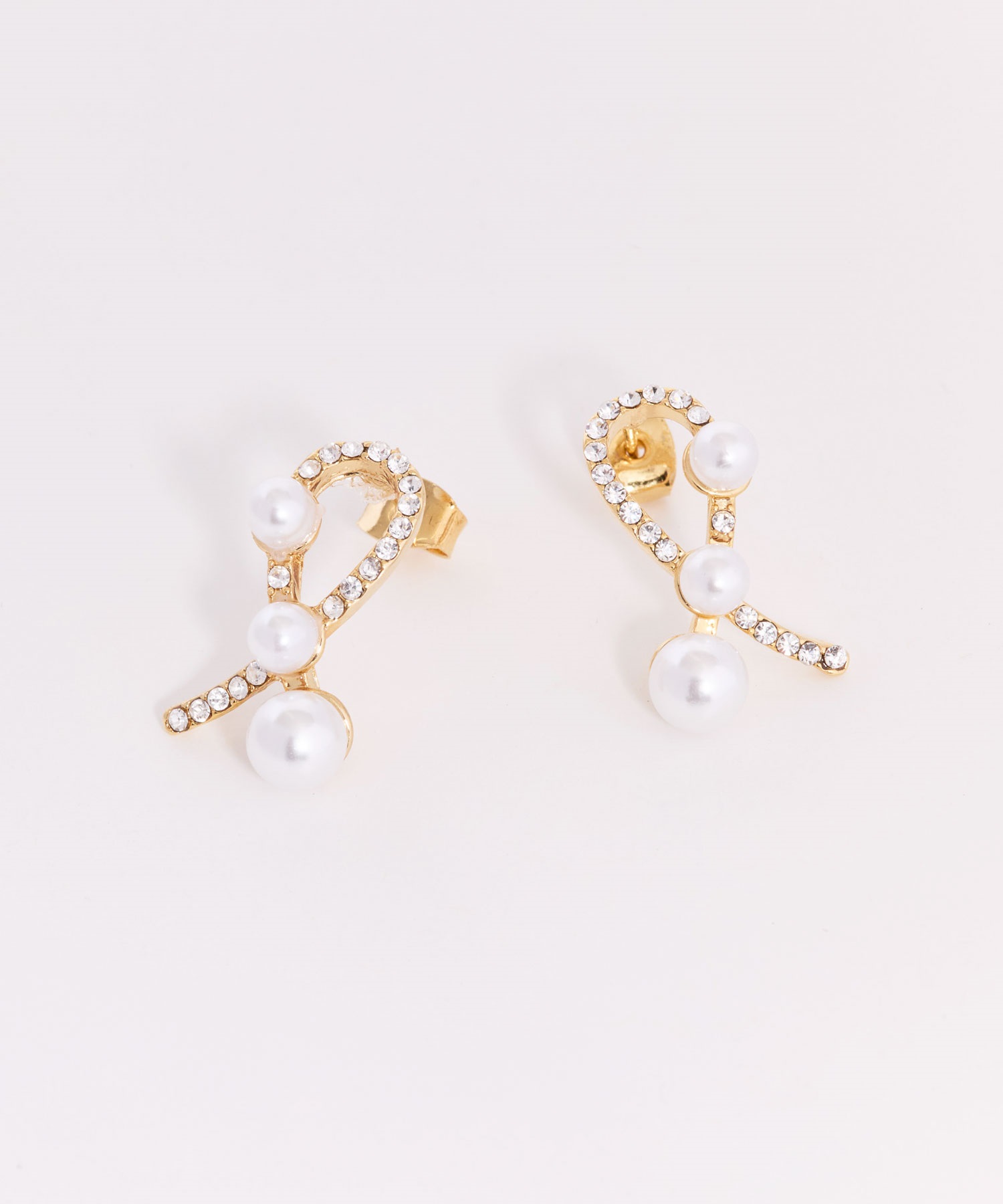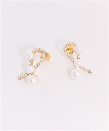 ツイストしたラインにパールをあしらった立体感のあるデザインピアス。