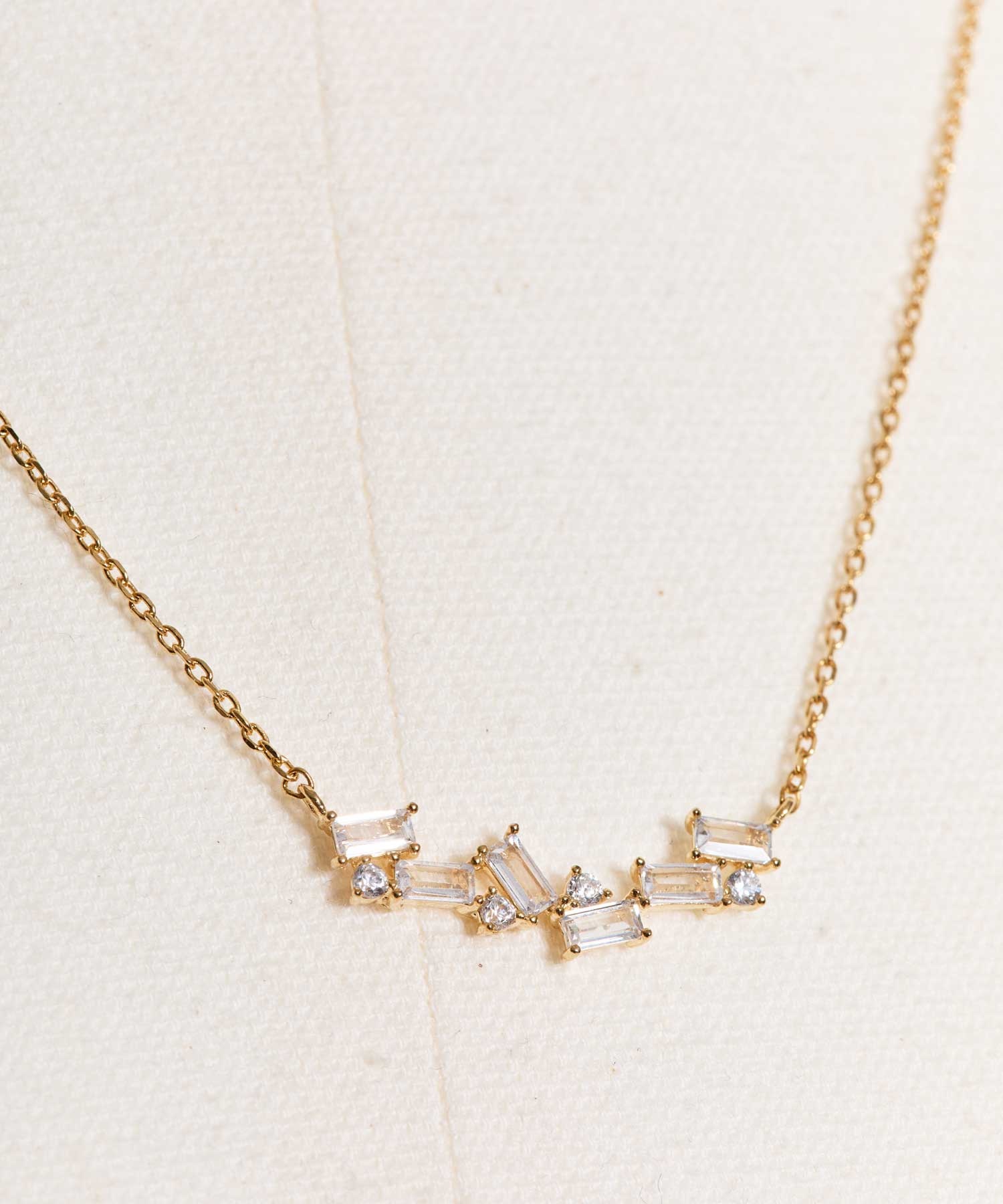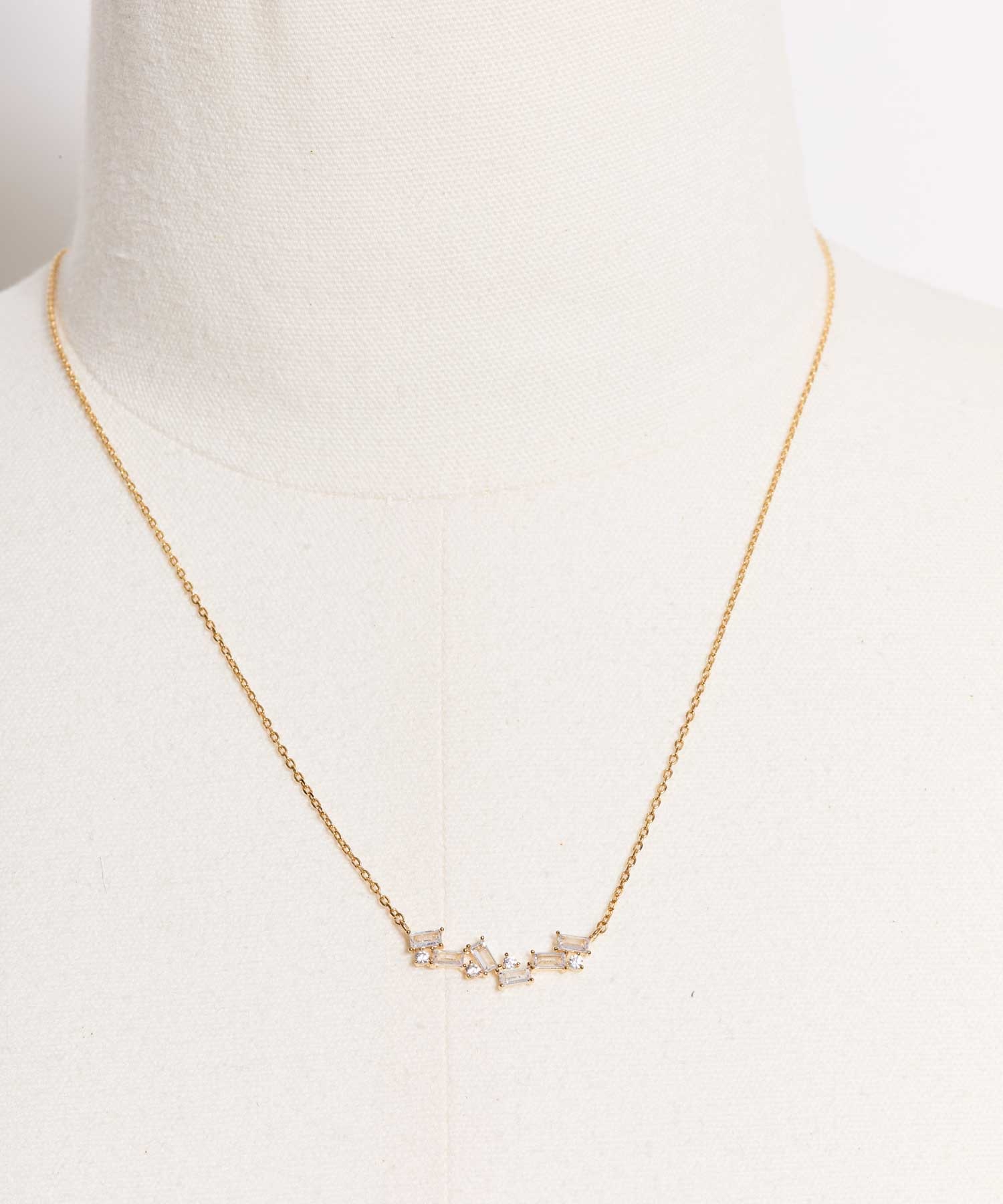 小粒のストーンをリズミカルに配し、繊細なきらめきを表現したネックレス。