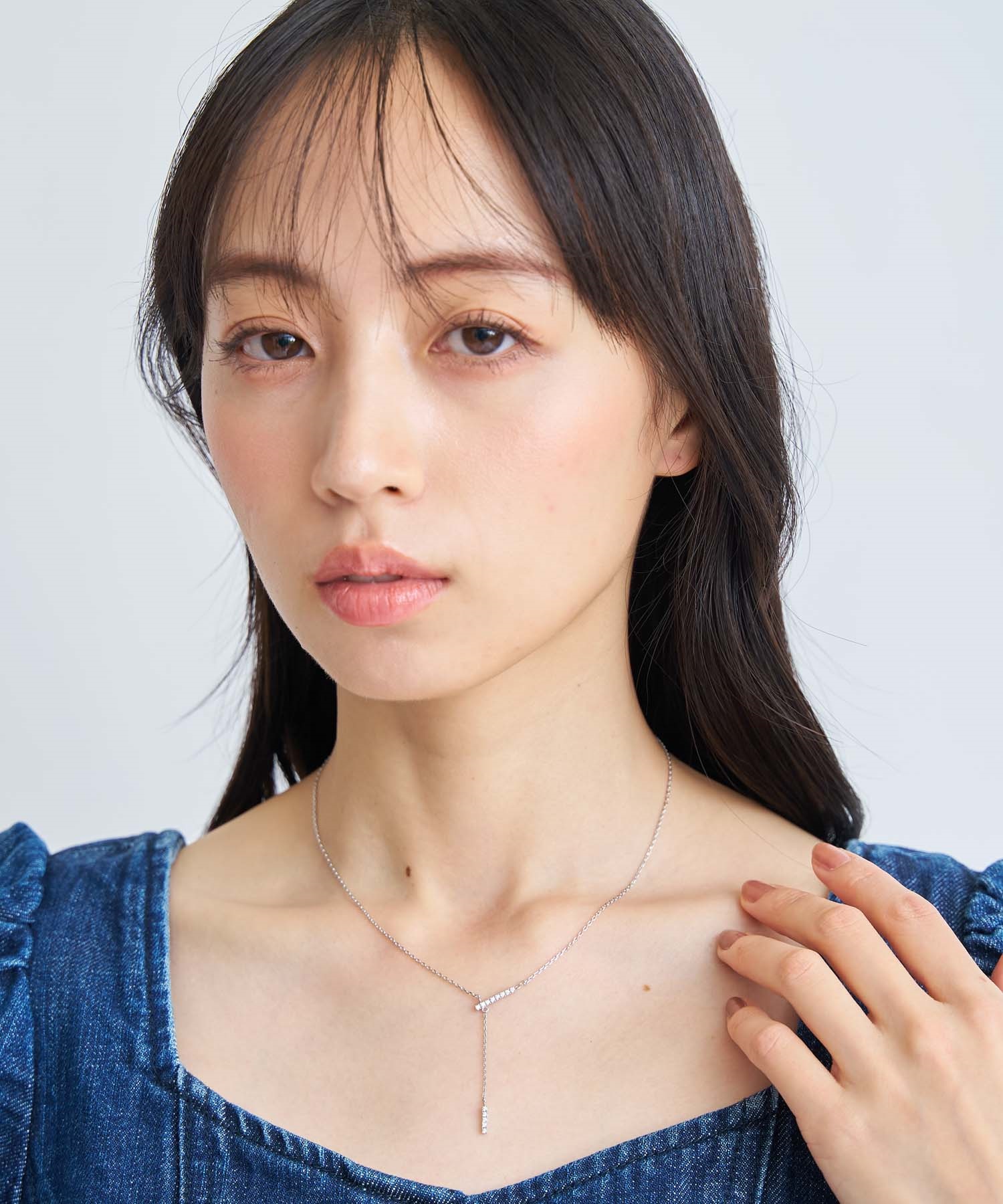 繊細なビジューをあしらった華奢なラリエットネックレス。