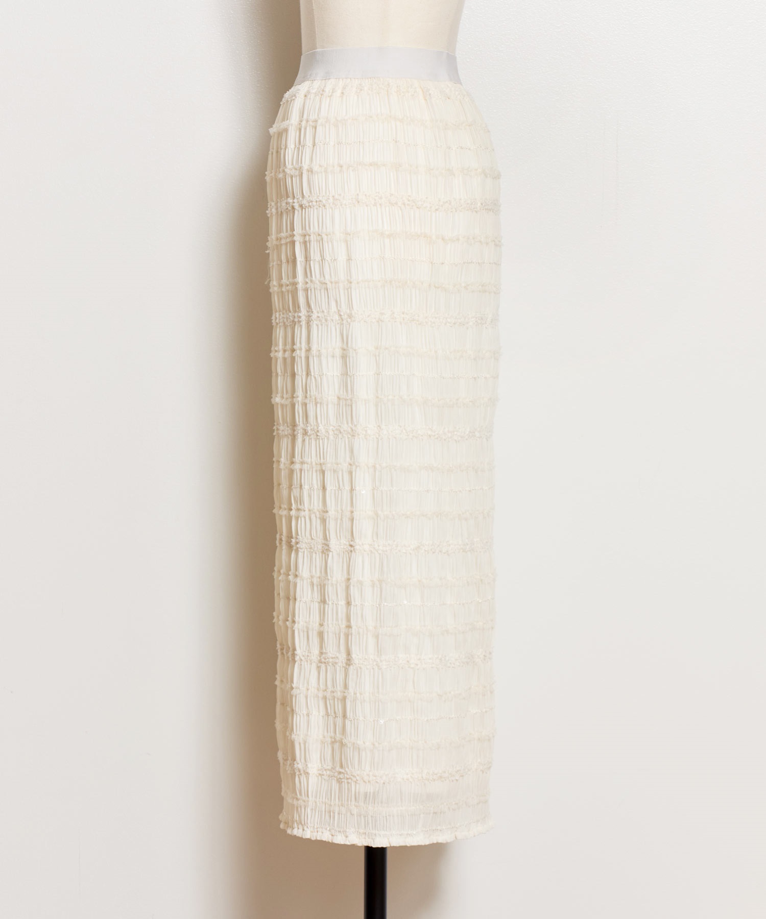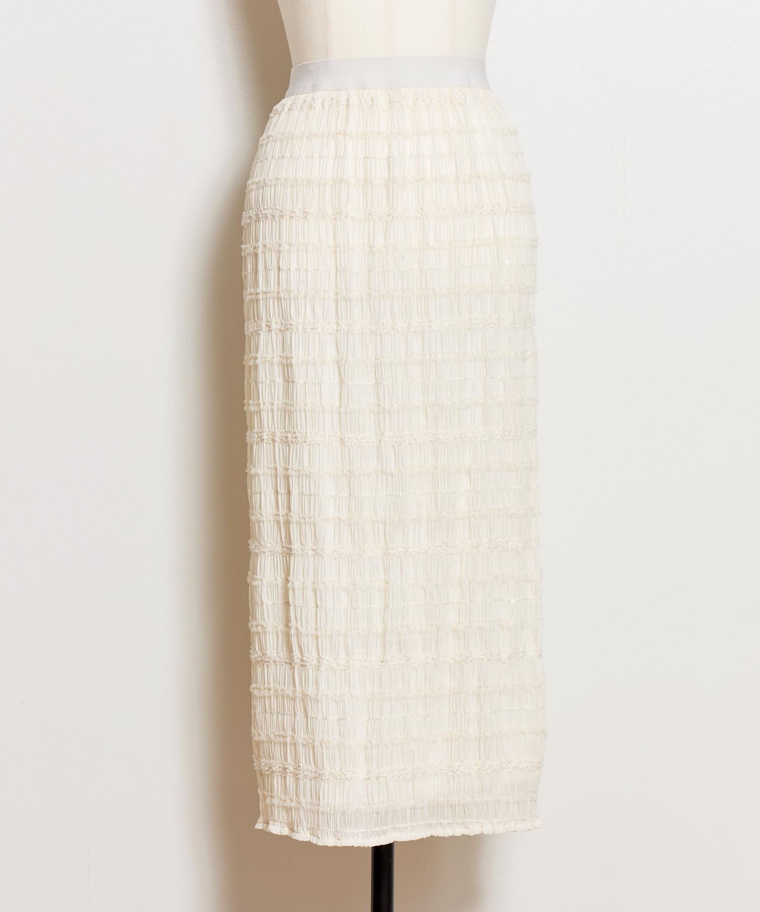 今季トレンドのシャーリング生地を使用した、一枚で今年顔になれるスカート。