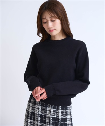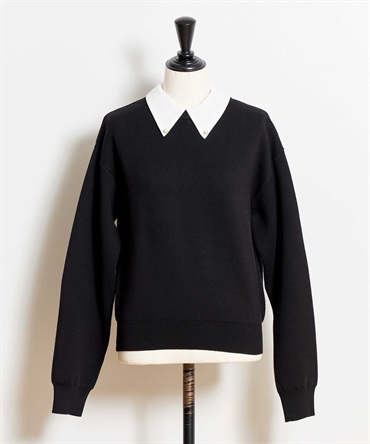 • 襟付きスウェットライクニット(00ブラック-フリー)