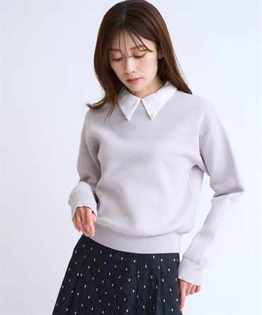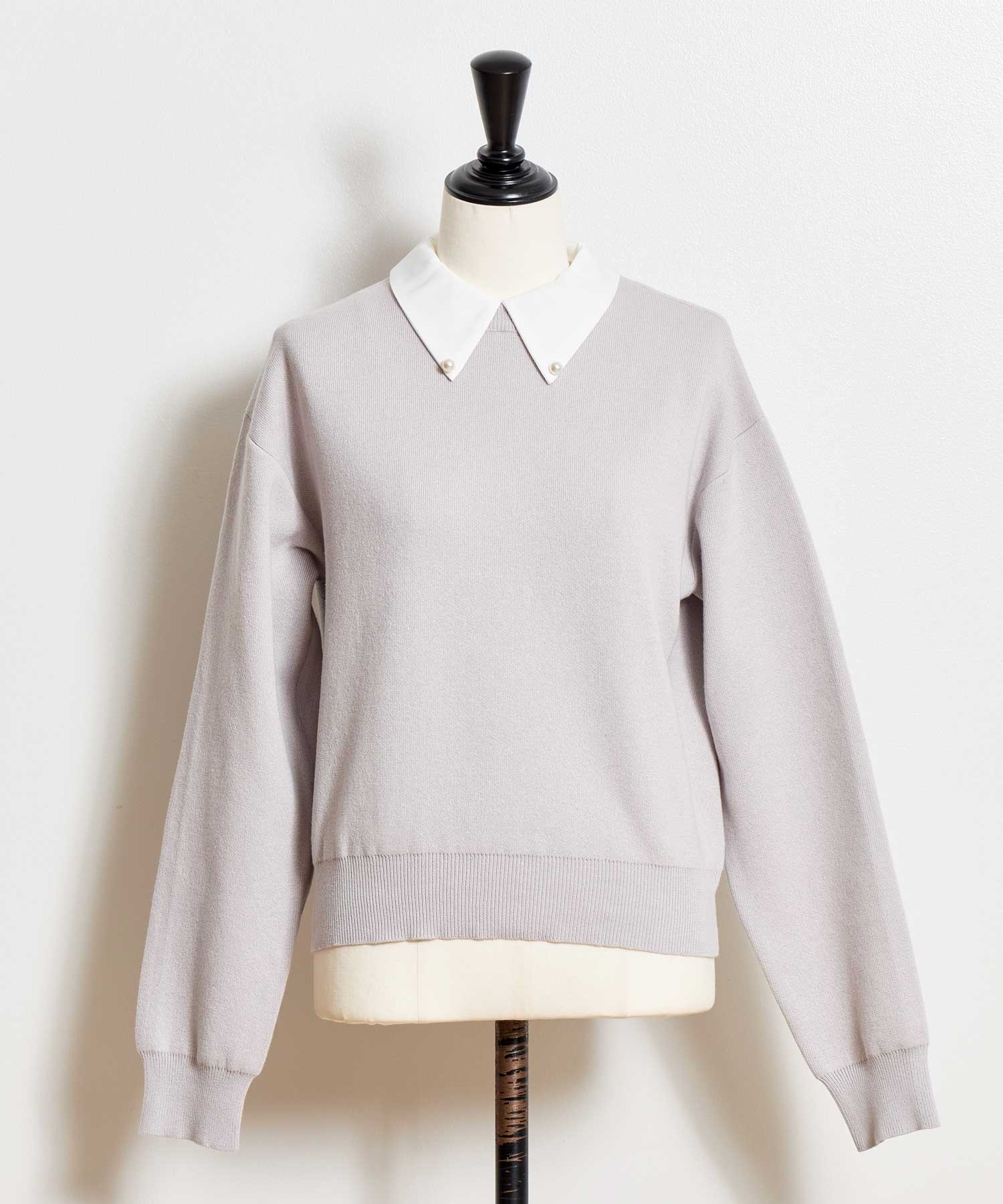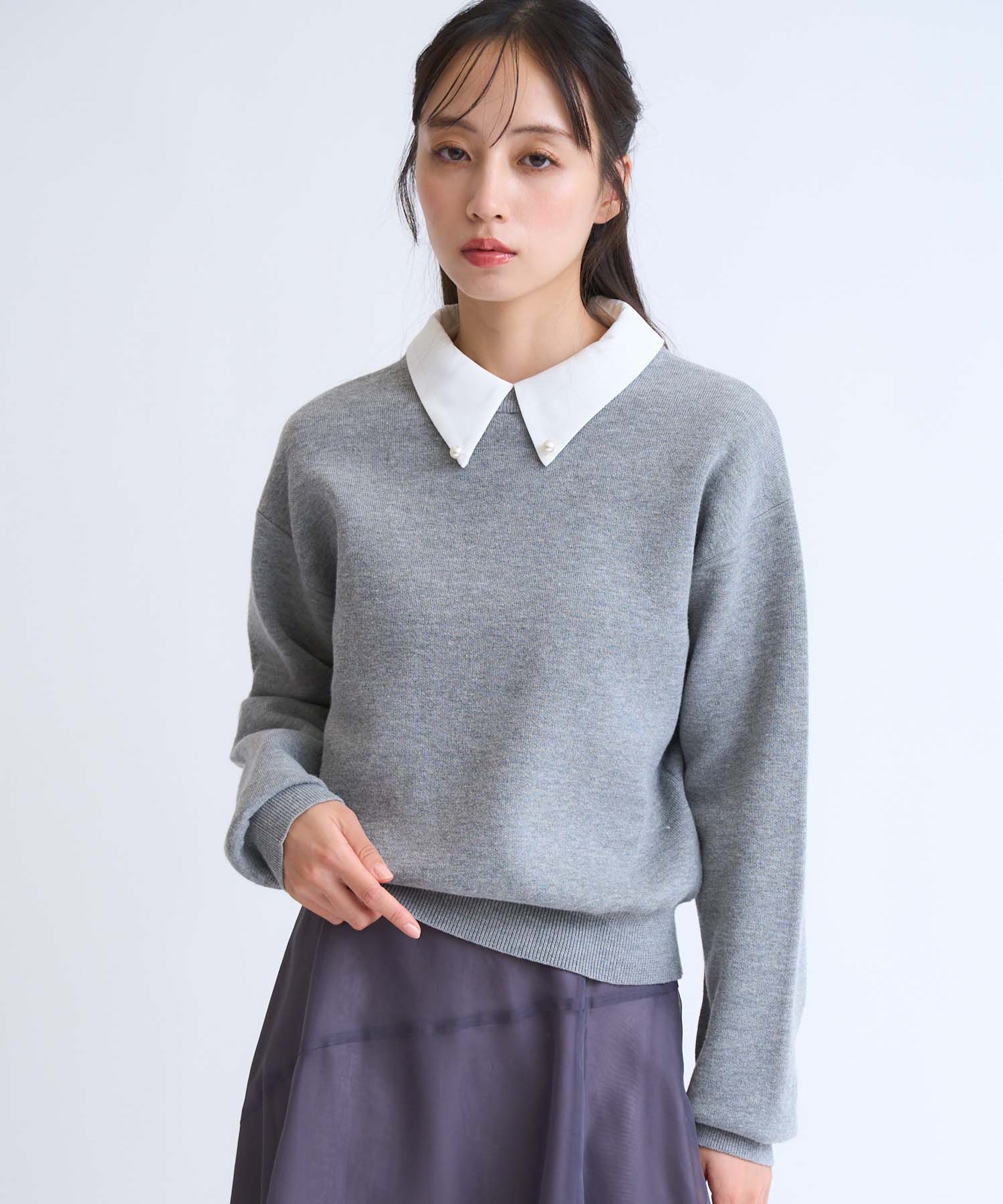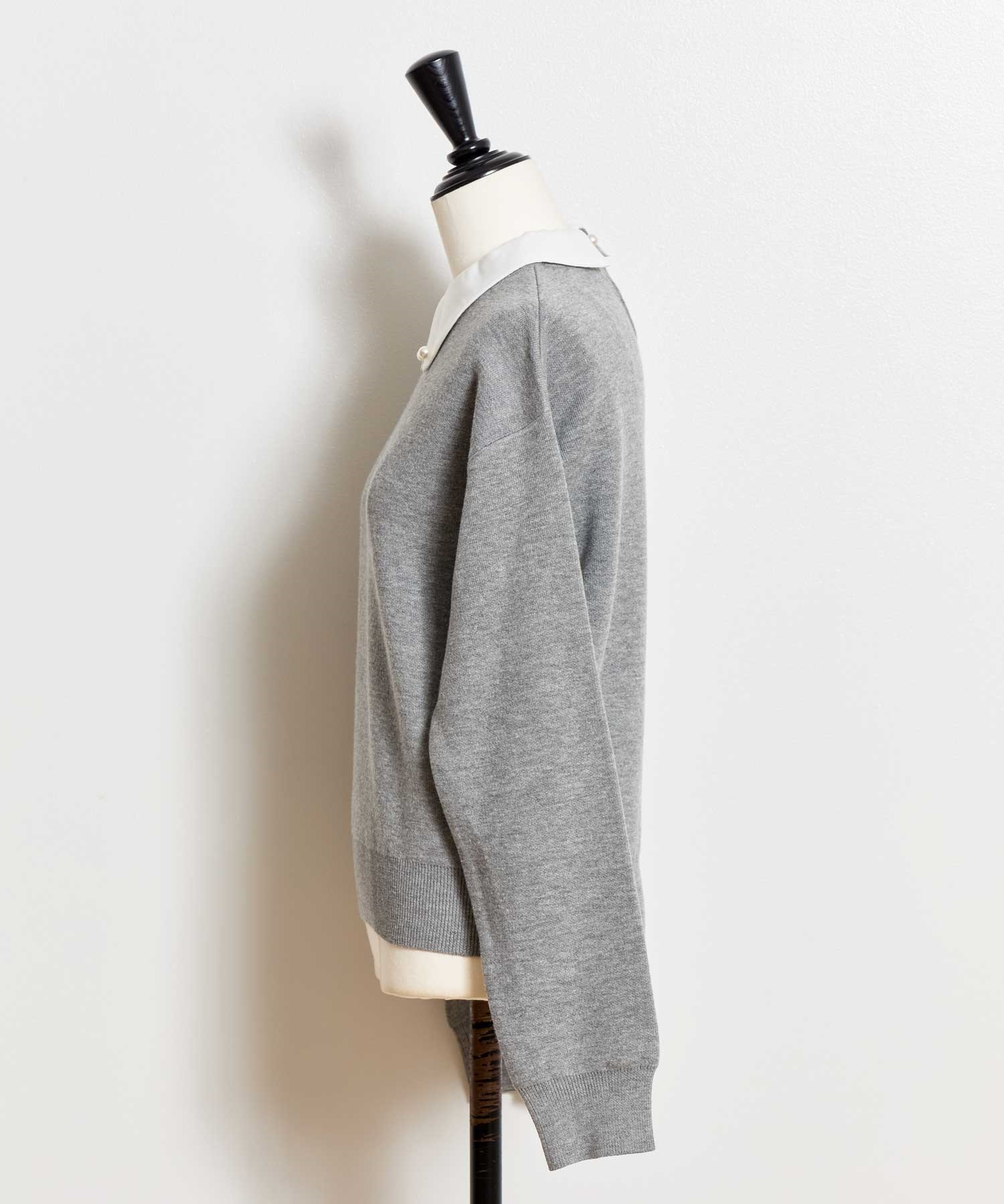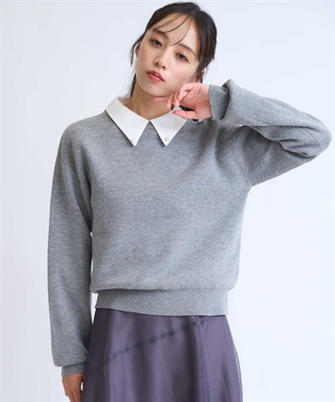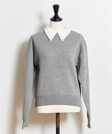 • 襟付きスウェットライクニット(12ライトグレー-フリー)