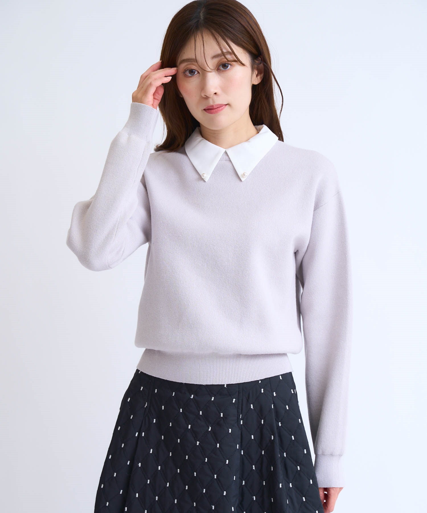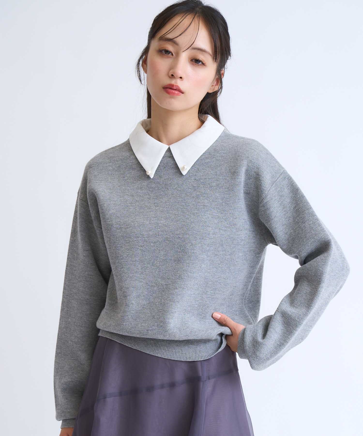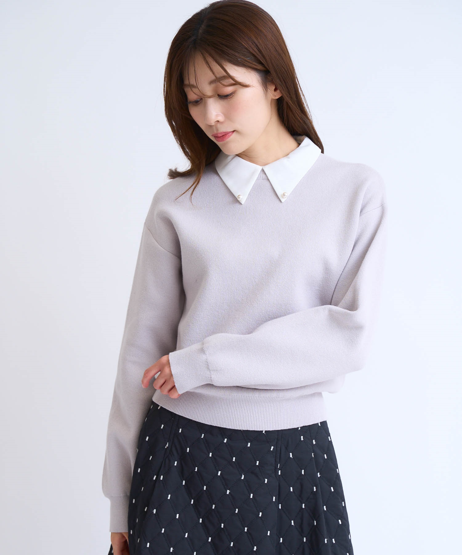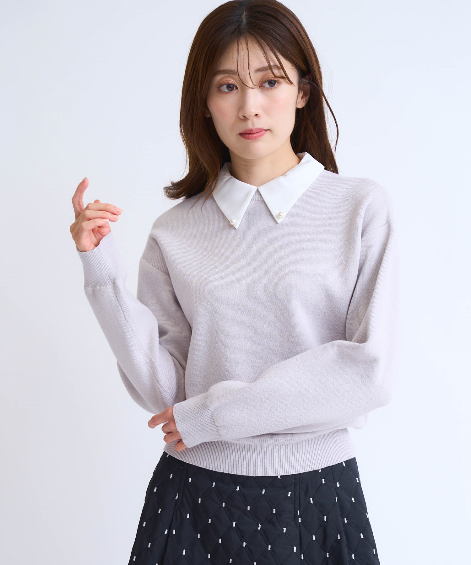 • 襟付きスウェットライクニット(12ライトグレー-フリー)