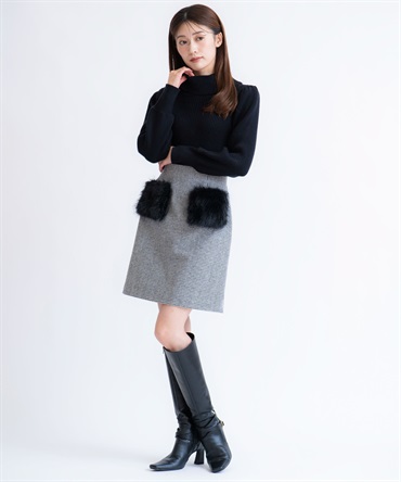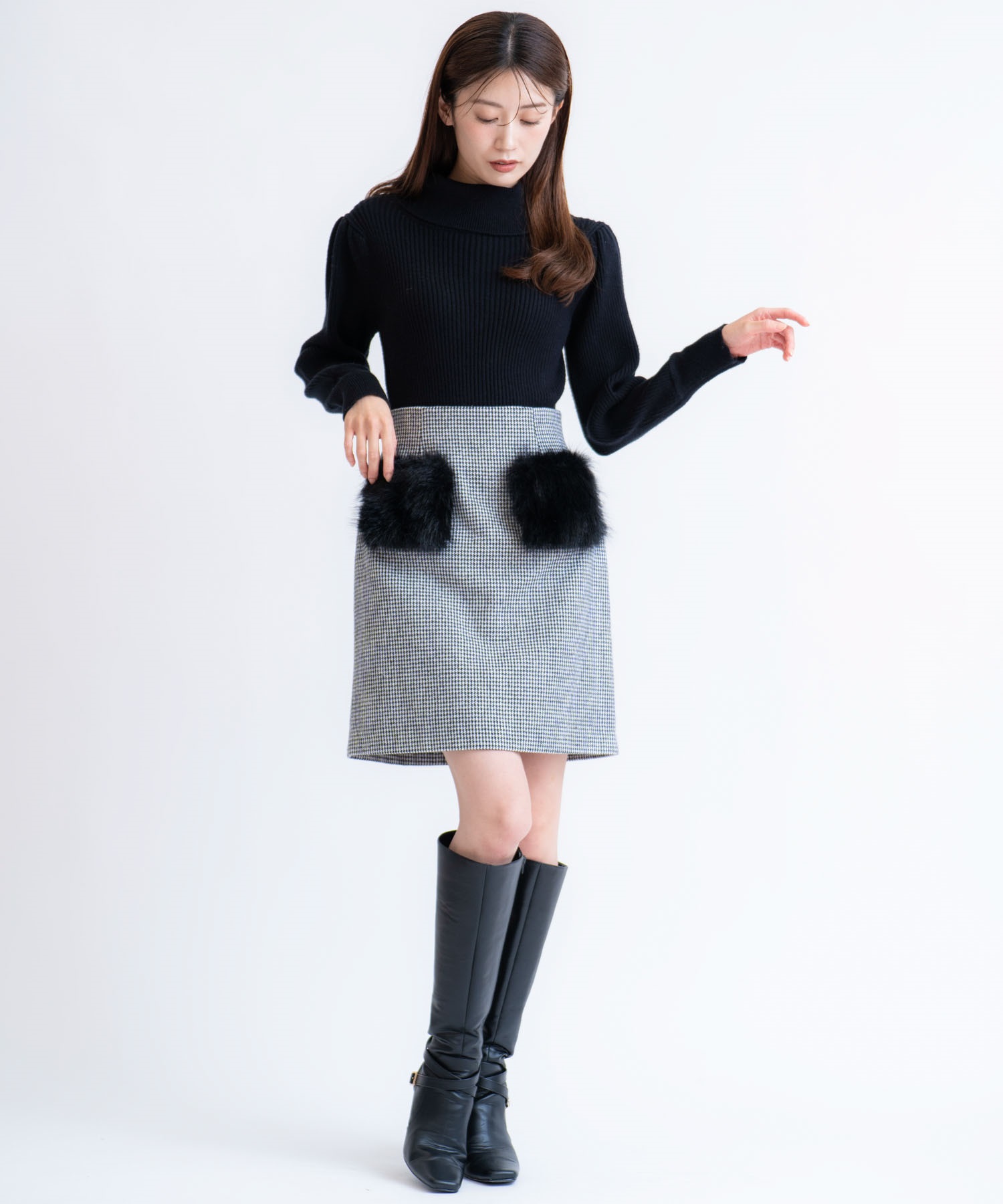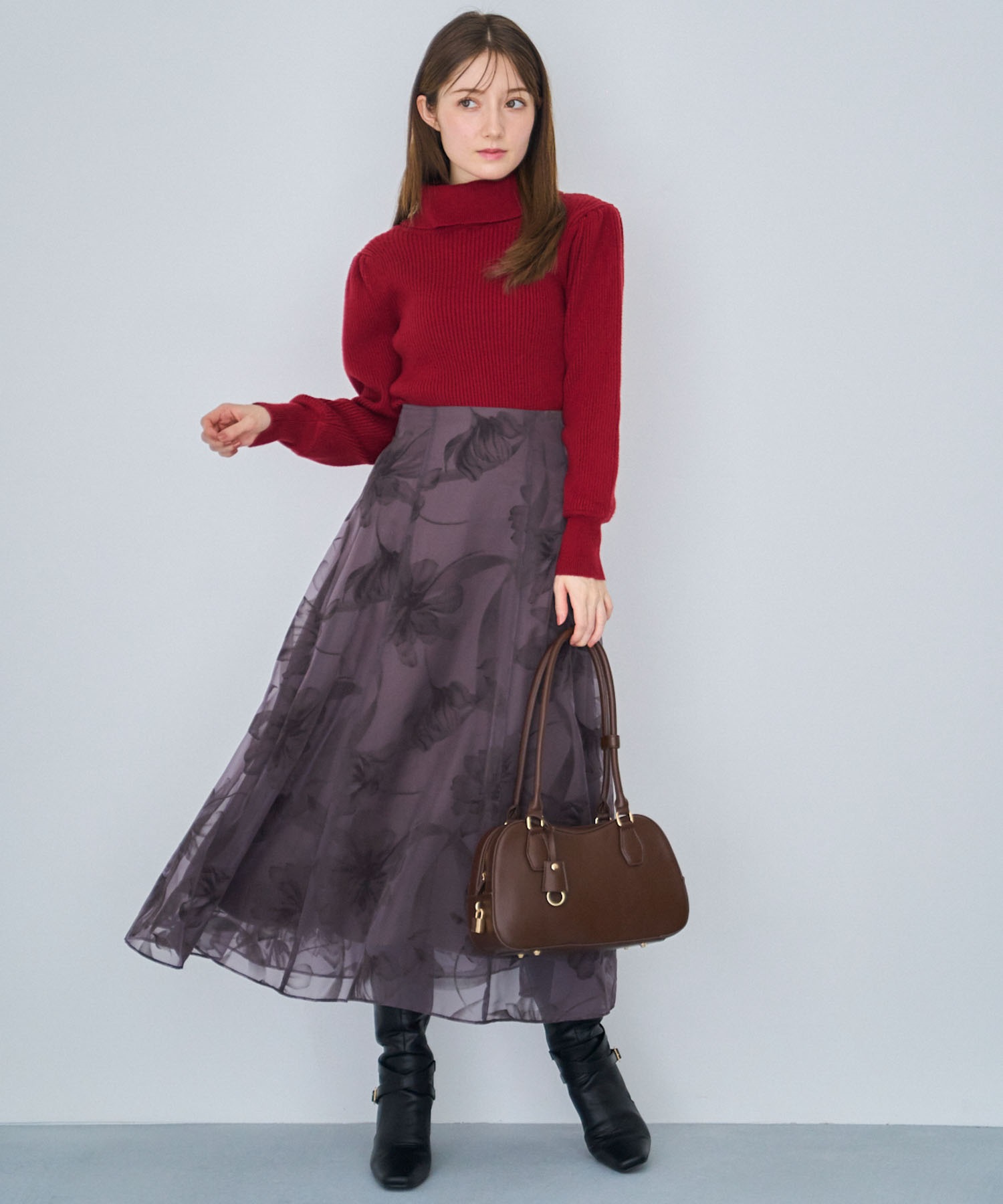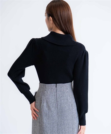 柄物やツイードなどのアイテムとも合わせやすく、着回し力抜群の万能ニットです。