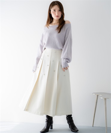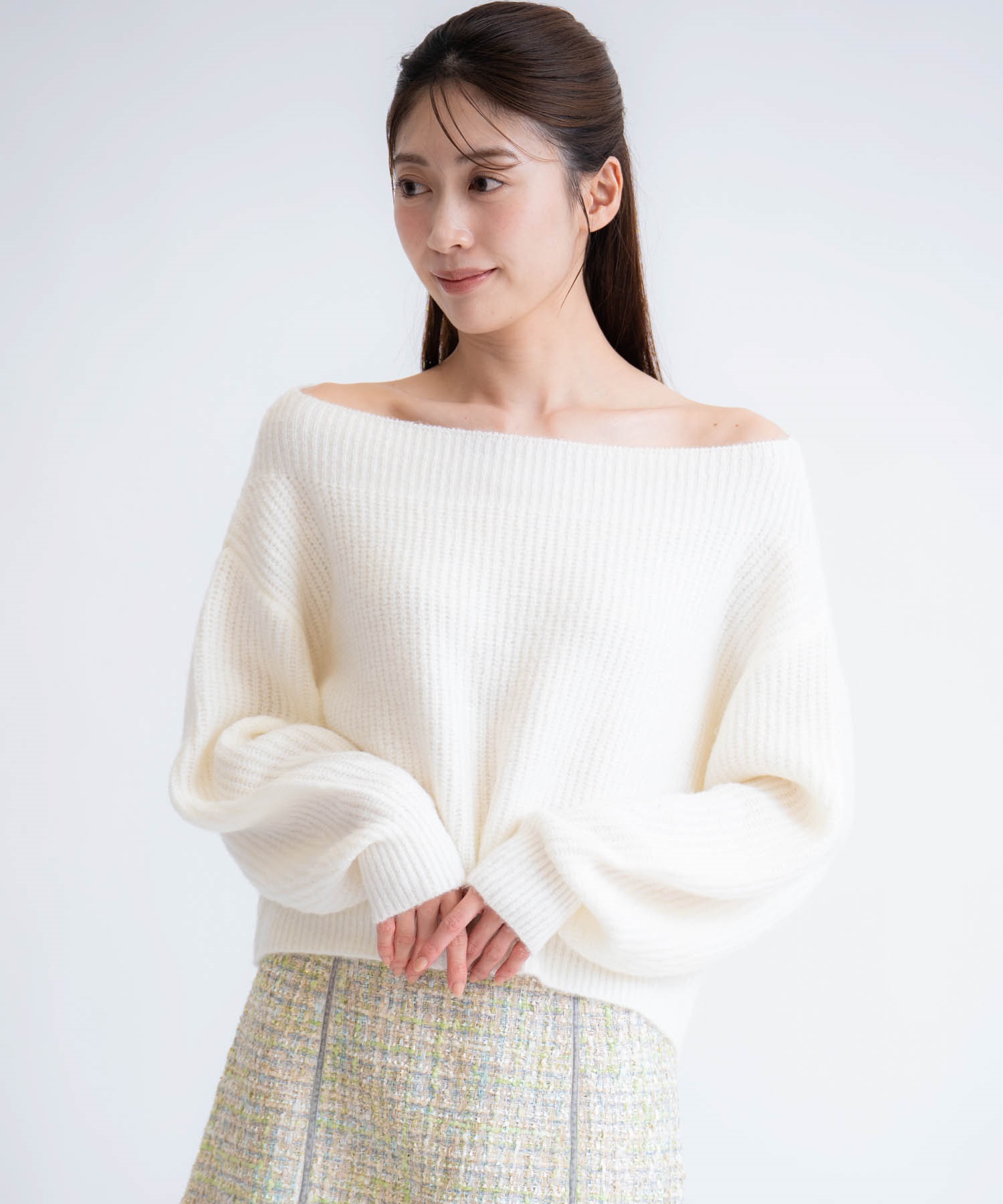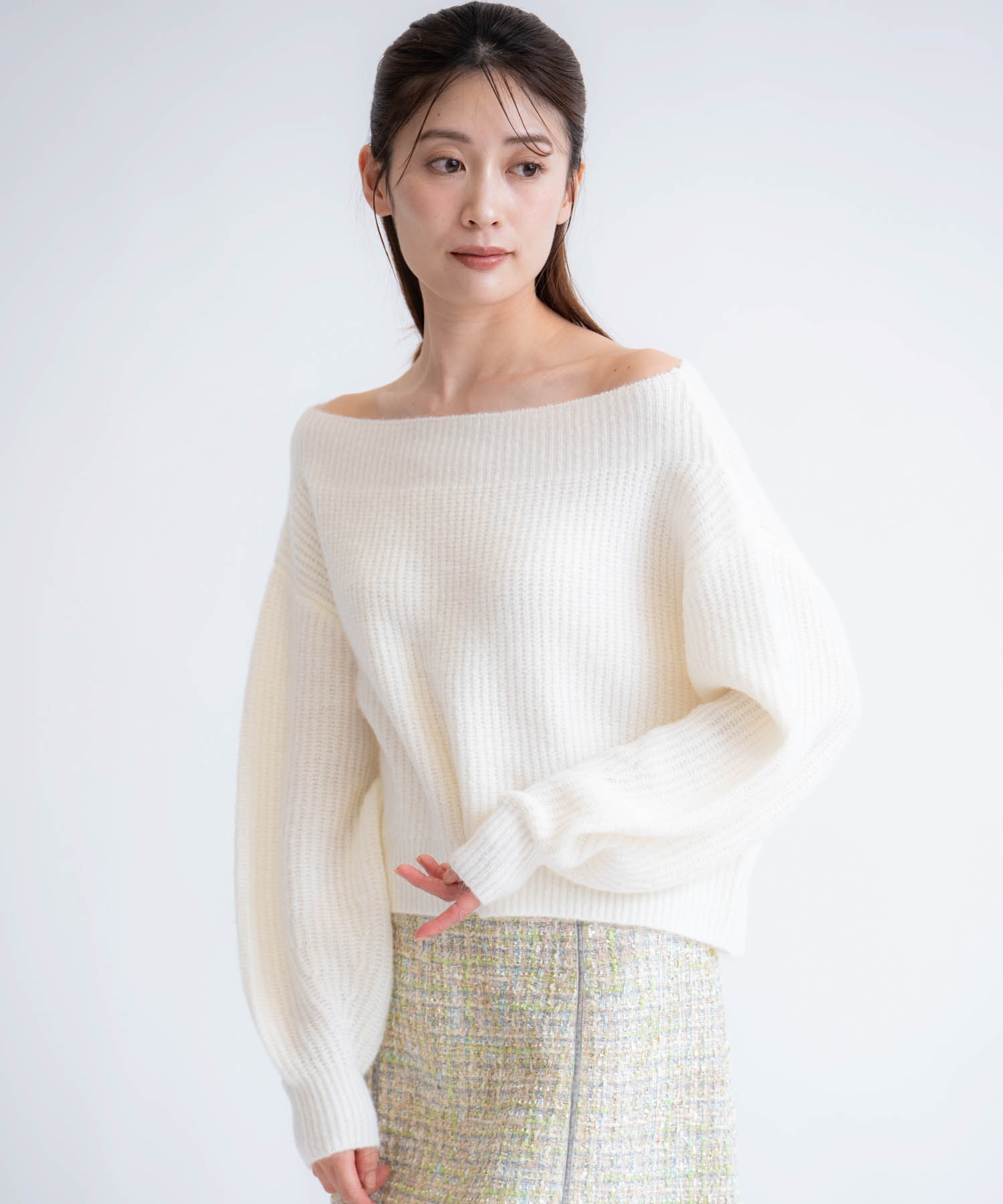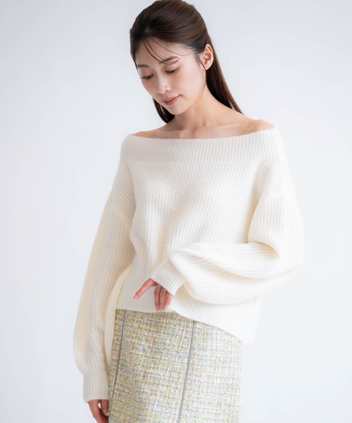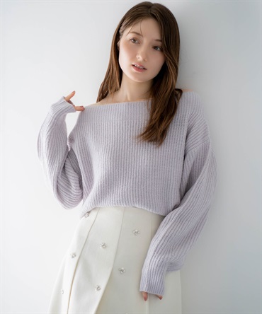 肩に乗せてもオフショルにしても着られる2WAYニット。