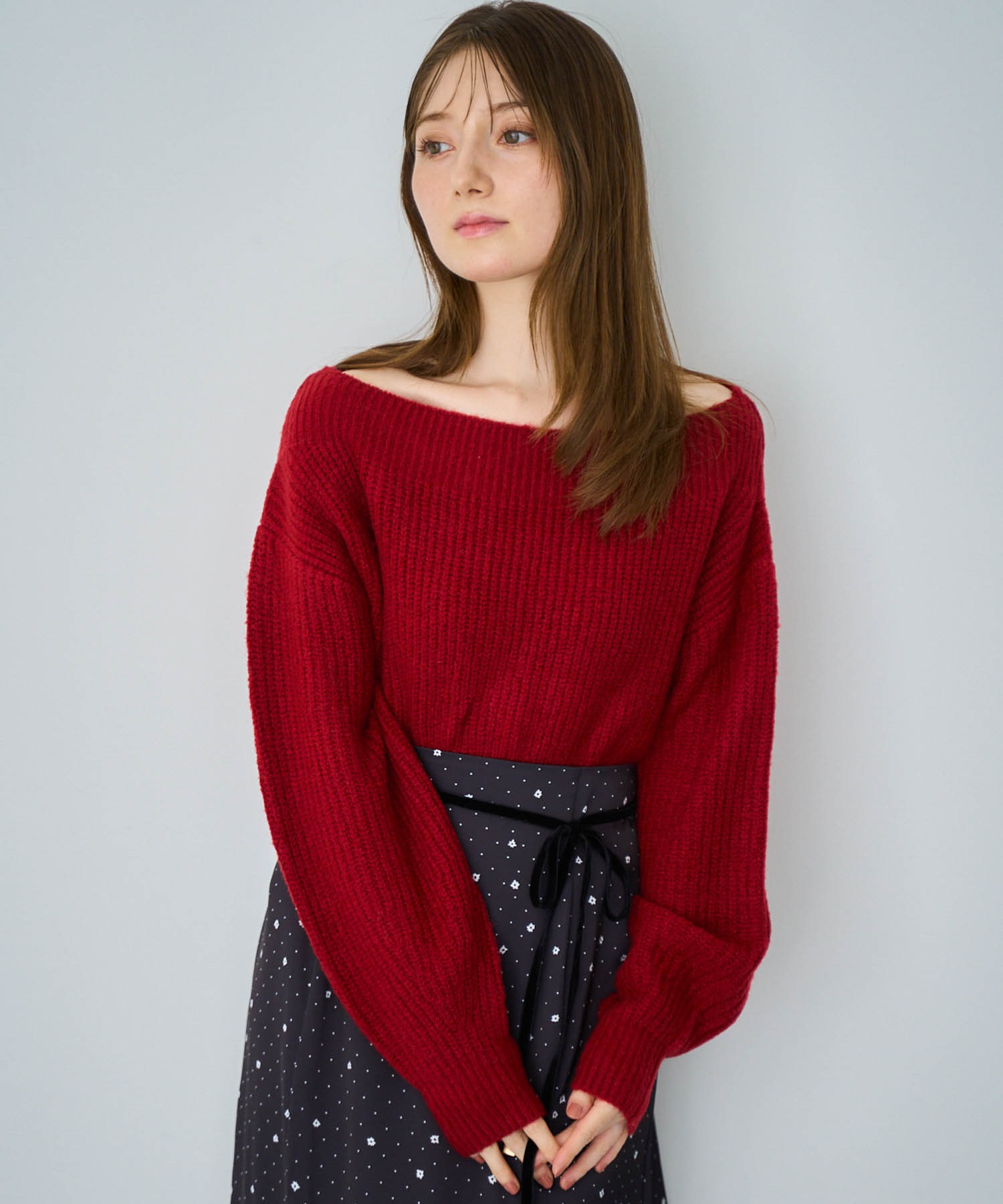 • 【予約】2WAYオフショルニット(30レッド-フリー-11月下旬ごろのお届け)