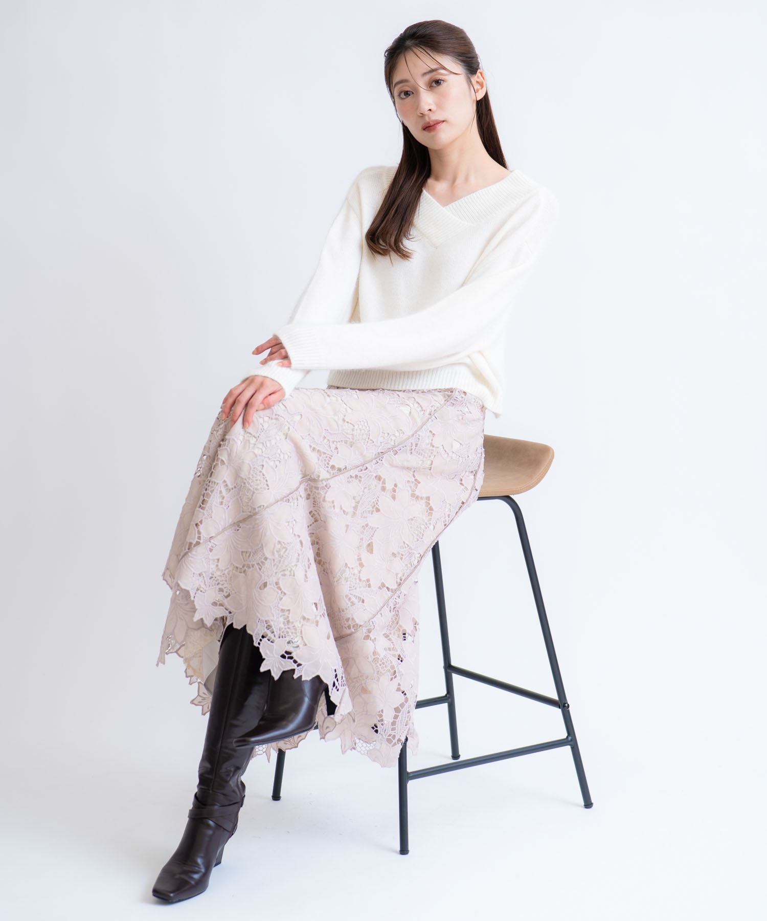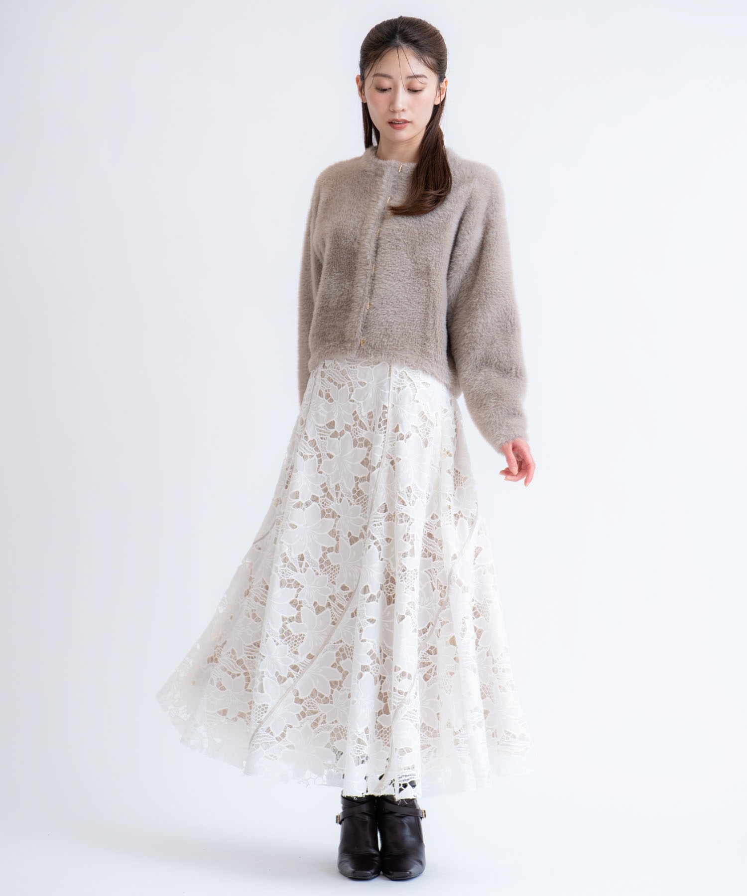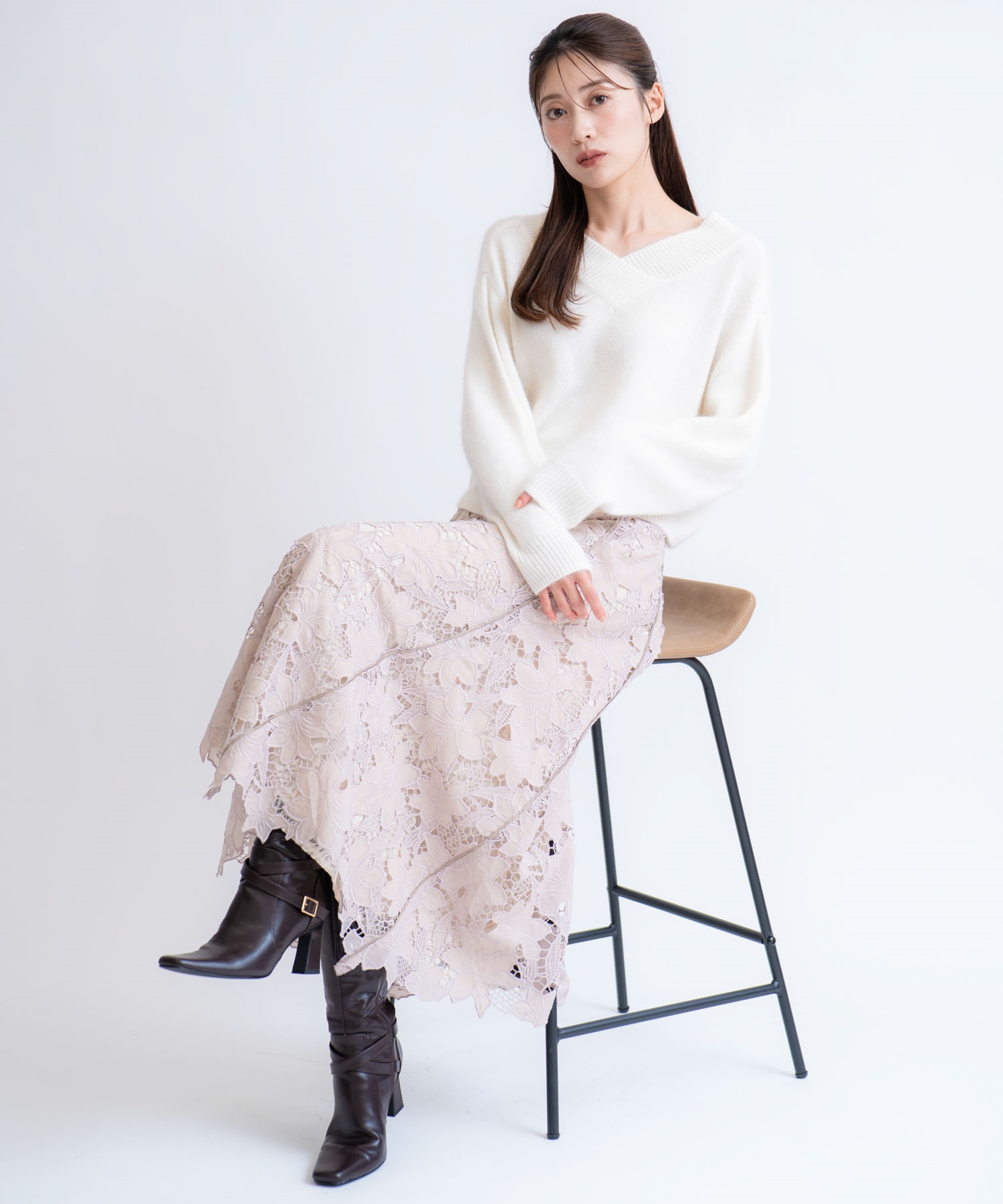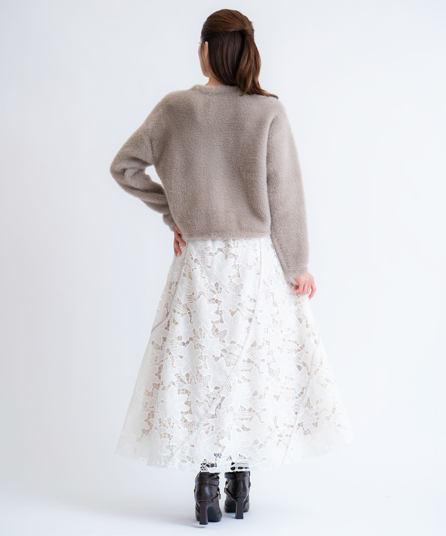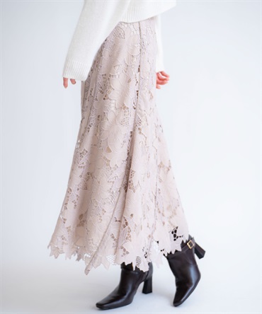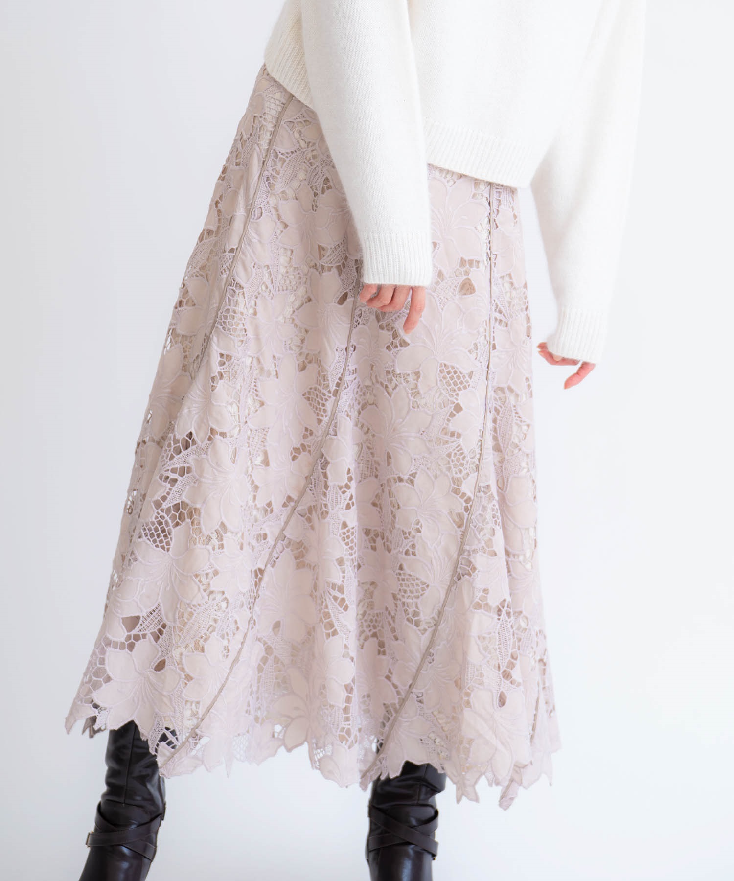 繊細なレースを贅沢に重ねた、トルネードシルエットの主役級スカート。