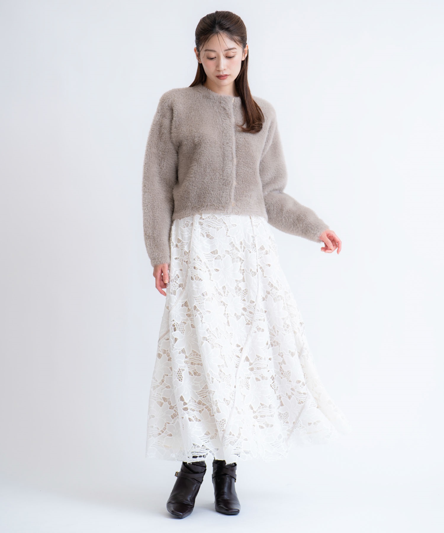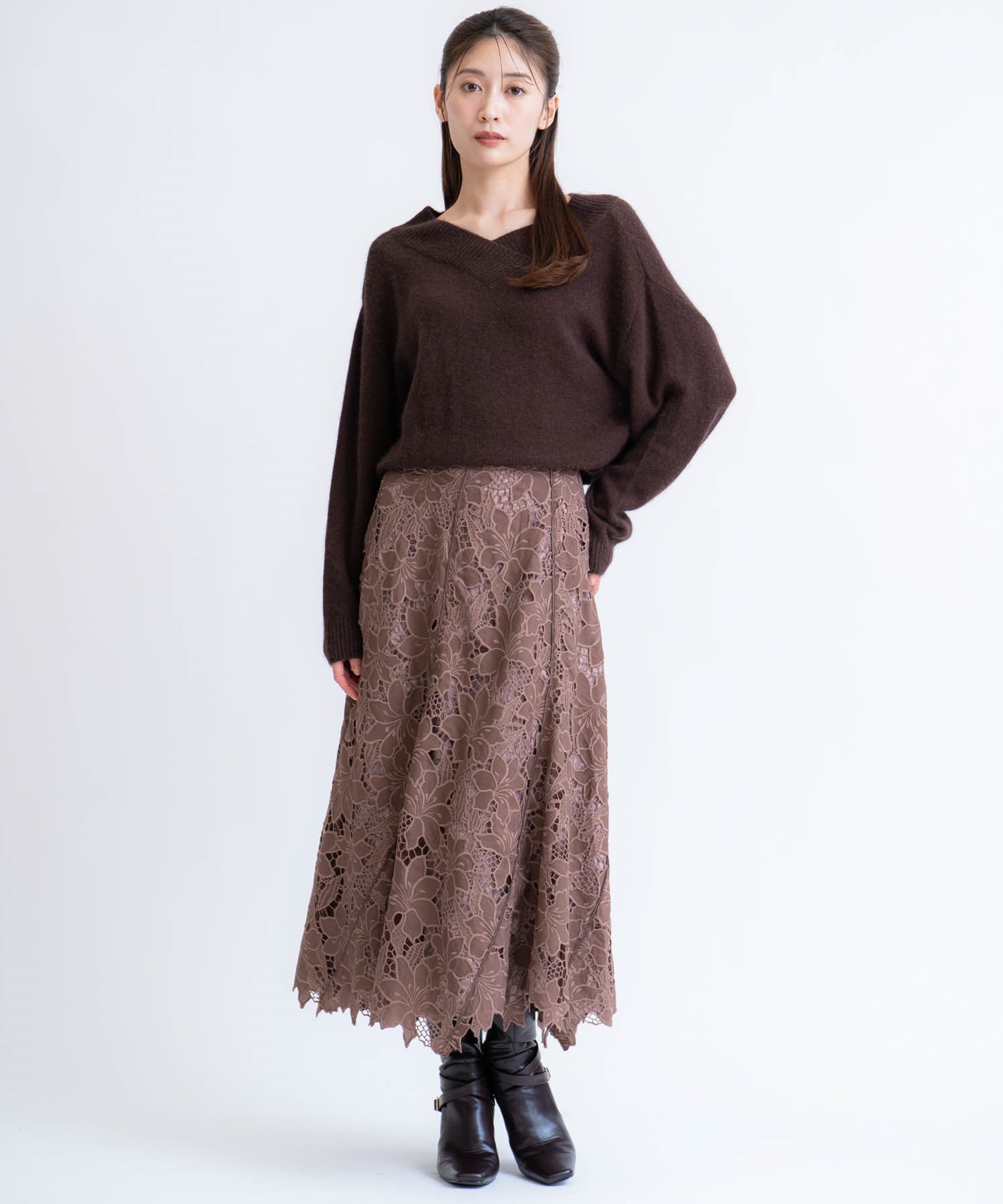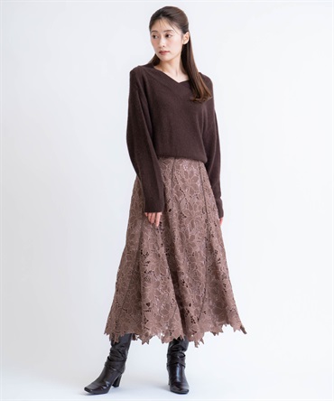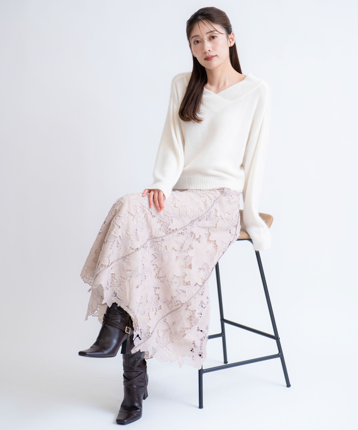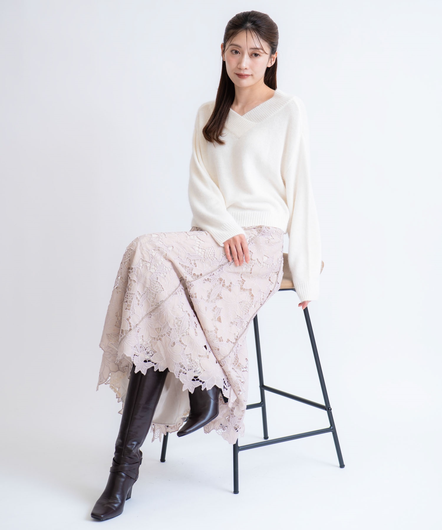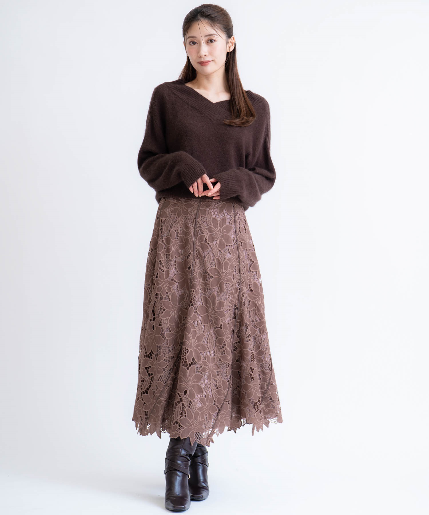 繊細なレースを贅沢に重ねた、トルネードシルエットの主役級スカート。