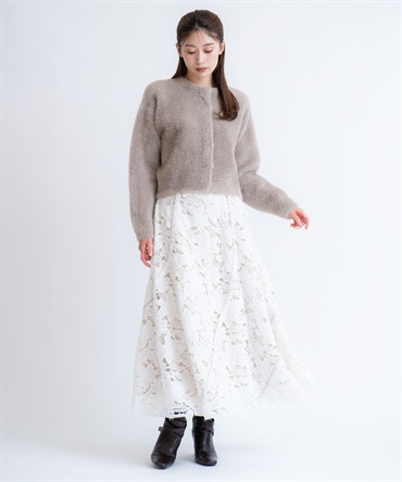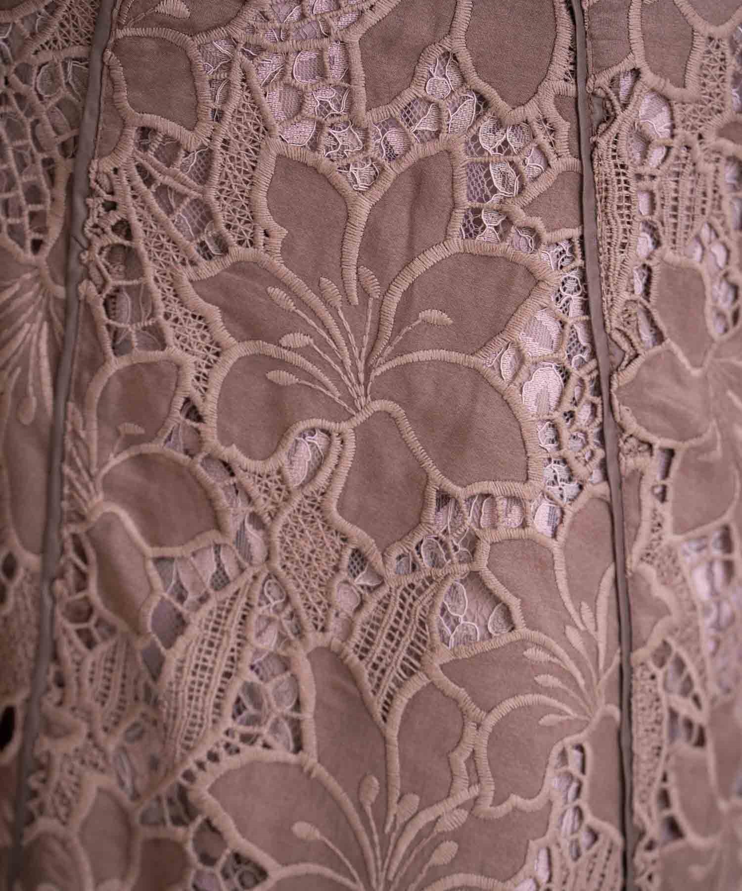 動きのあるラインと立体感のあるフラワーレースが、装いに華やぎをプラス。