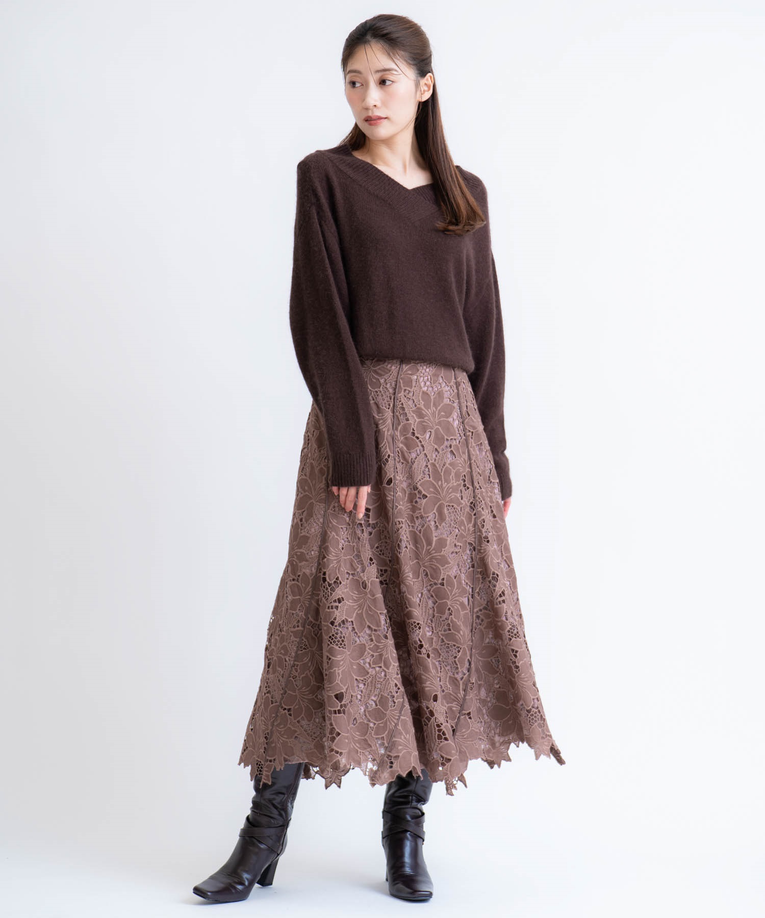 ニットやブラウスと合わせて、女性らしさが引き立つスタイリングに。